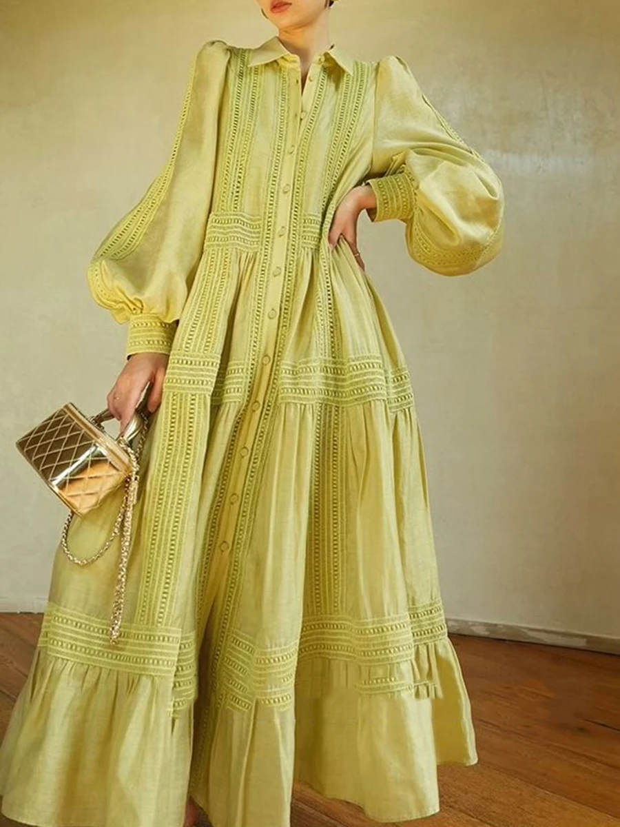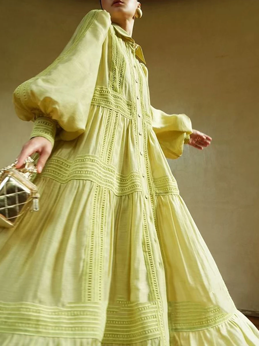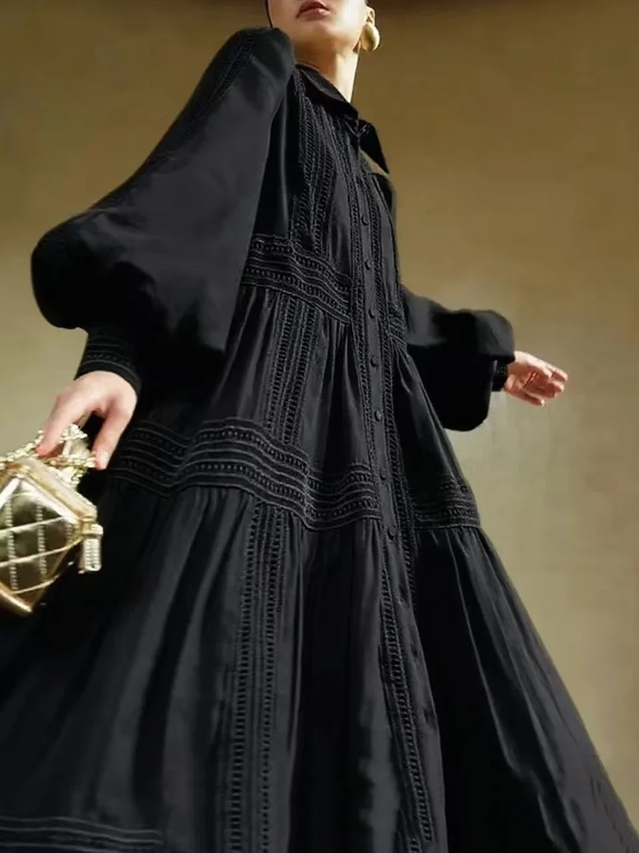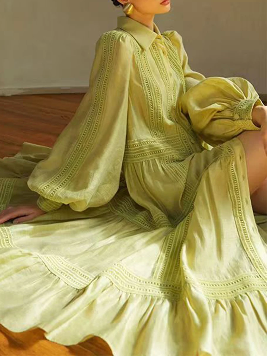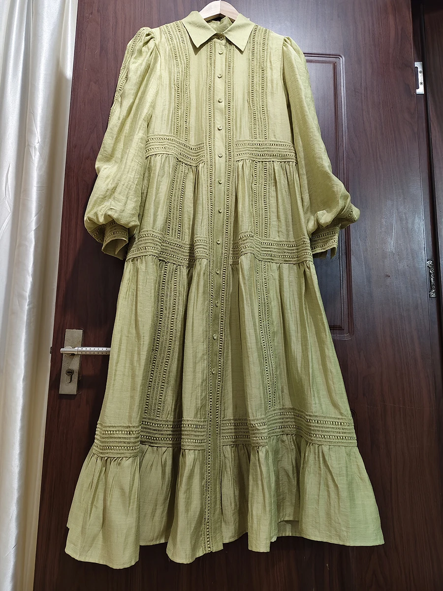 TWOTWINSTYLE Solid Loose Spliced Single Breasted Casual Dresses for Women Lapel Long Sleeves Patchwork Striped Dress Female New