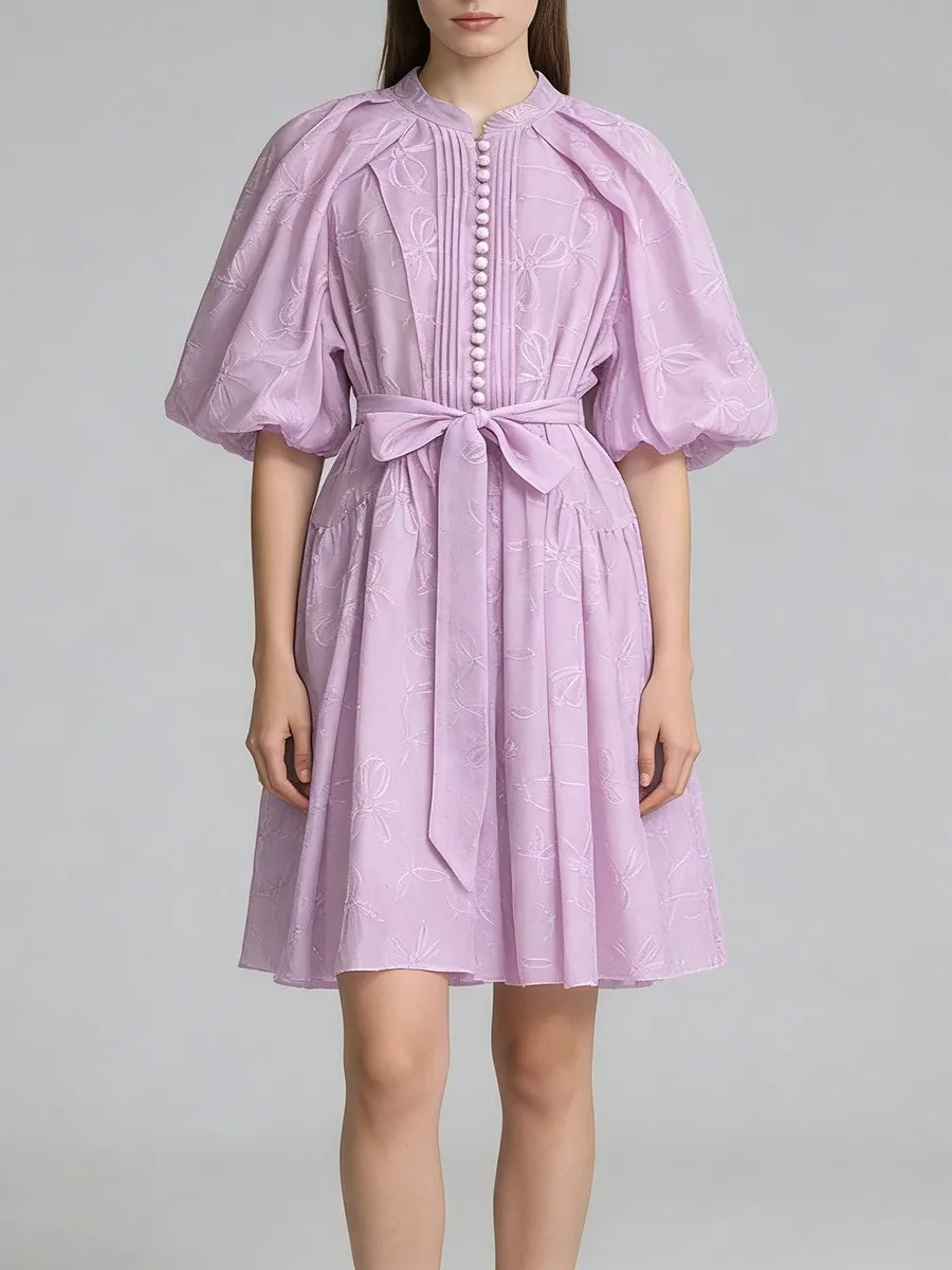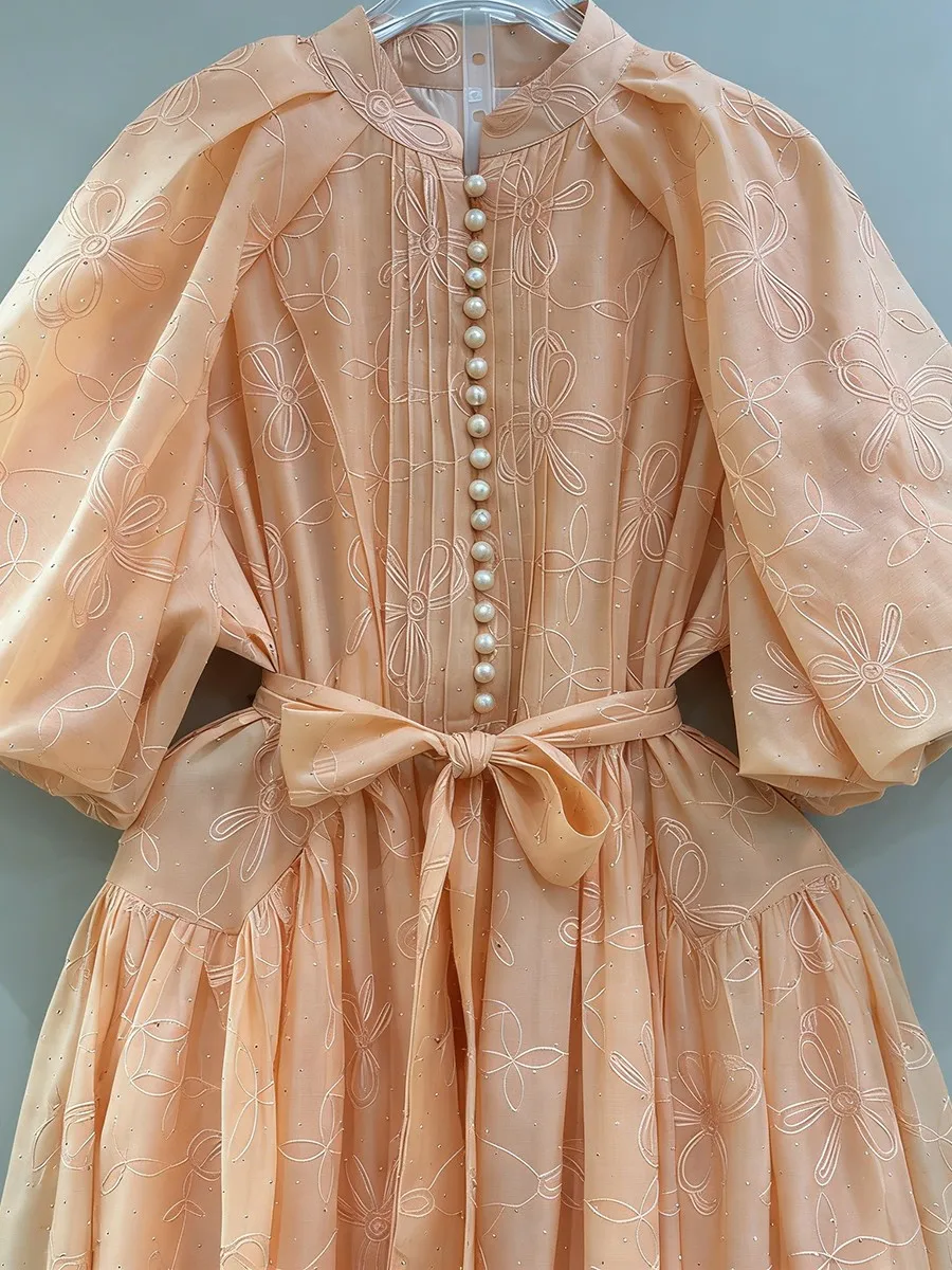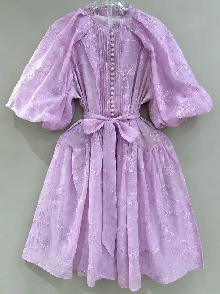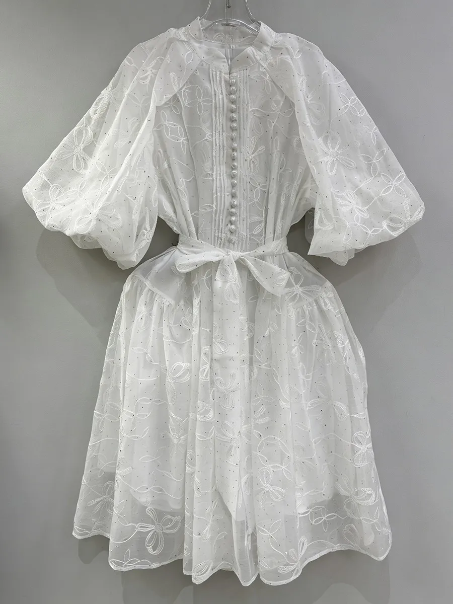 TWOTWINSTYLE Solid Printing Spliced Fols Elegant Dress for Women Round Neck Half Sleeves Patchwork Bead Casual Dresses Female