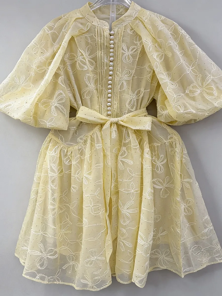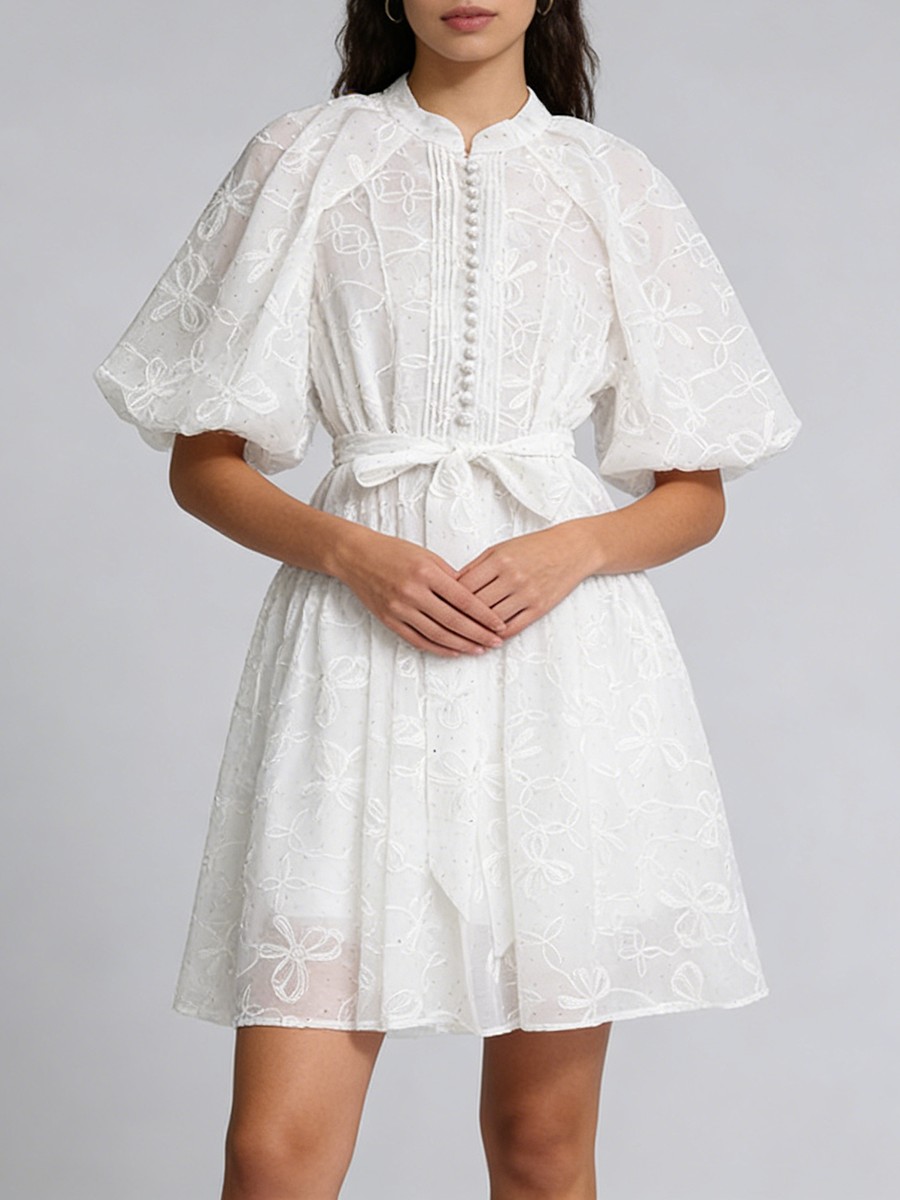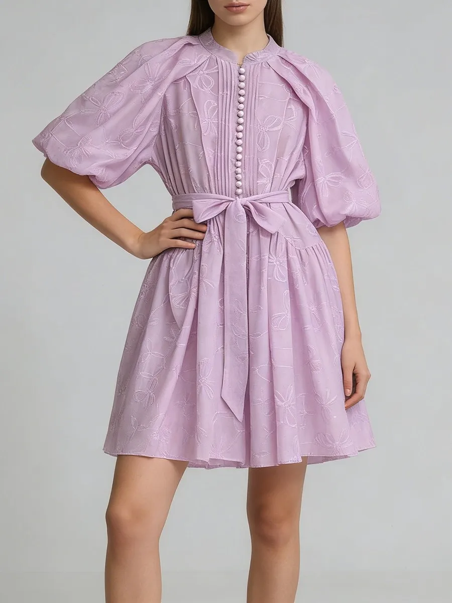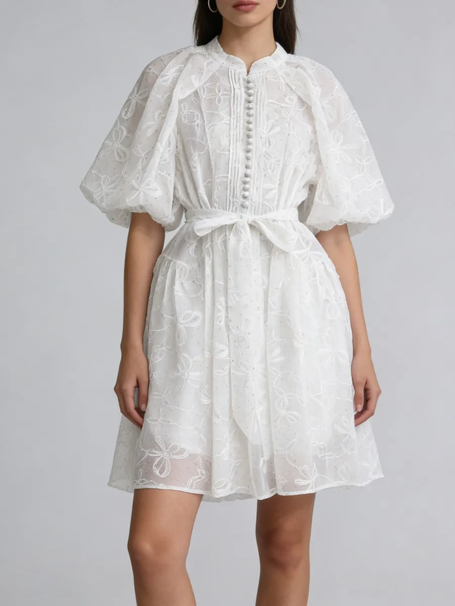 TWOTWINSTYLE Solid Printing Spliced Fols Elegant Dress for Women Round Neck Half Sleeves Patchwork Bead Casual Dresses Female