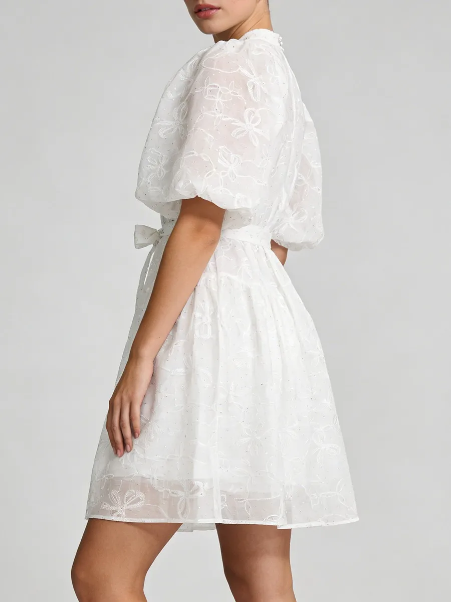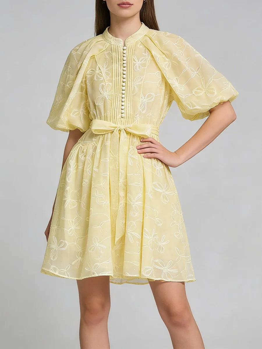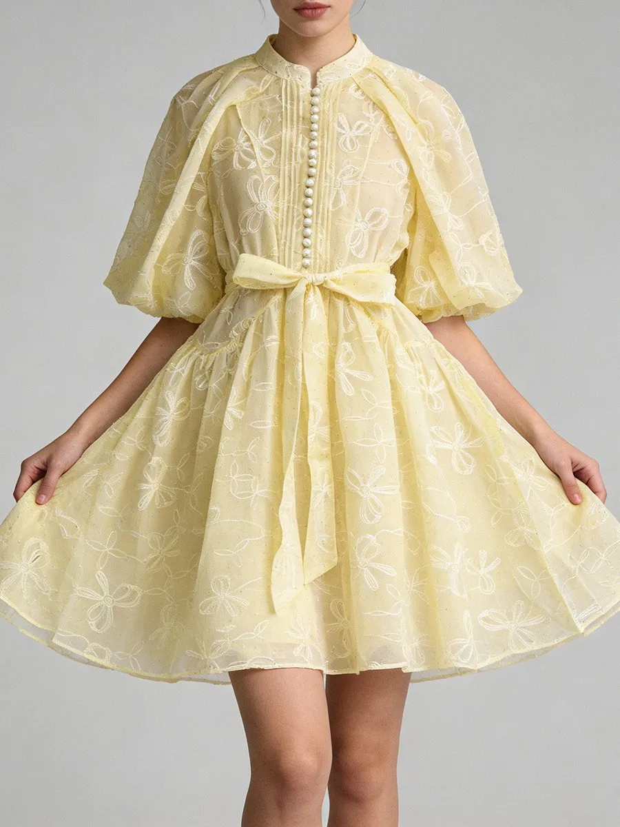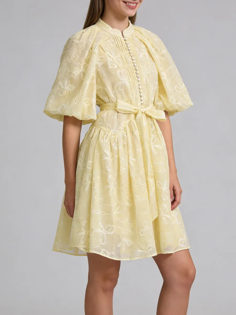TWOTWINSTYLE Solid Printing Spliced Fols Elegant Dress for Women Round Neck Half Sleeves Patchwork Bead Casual Dresses Female
