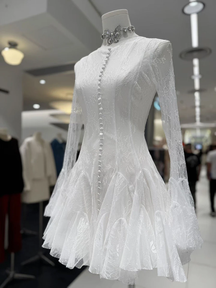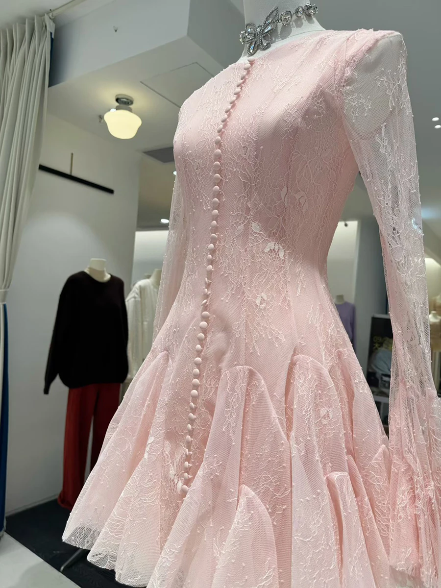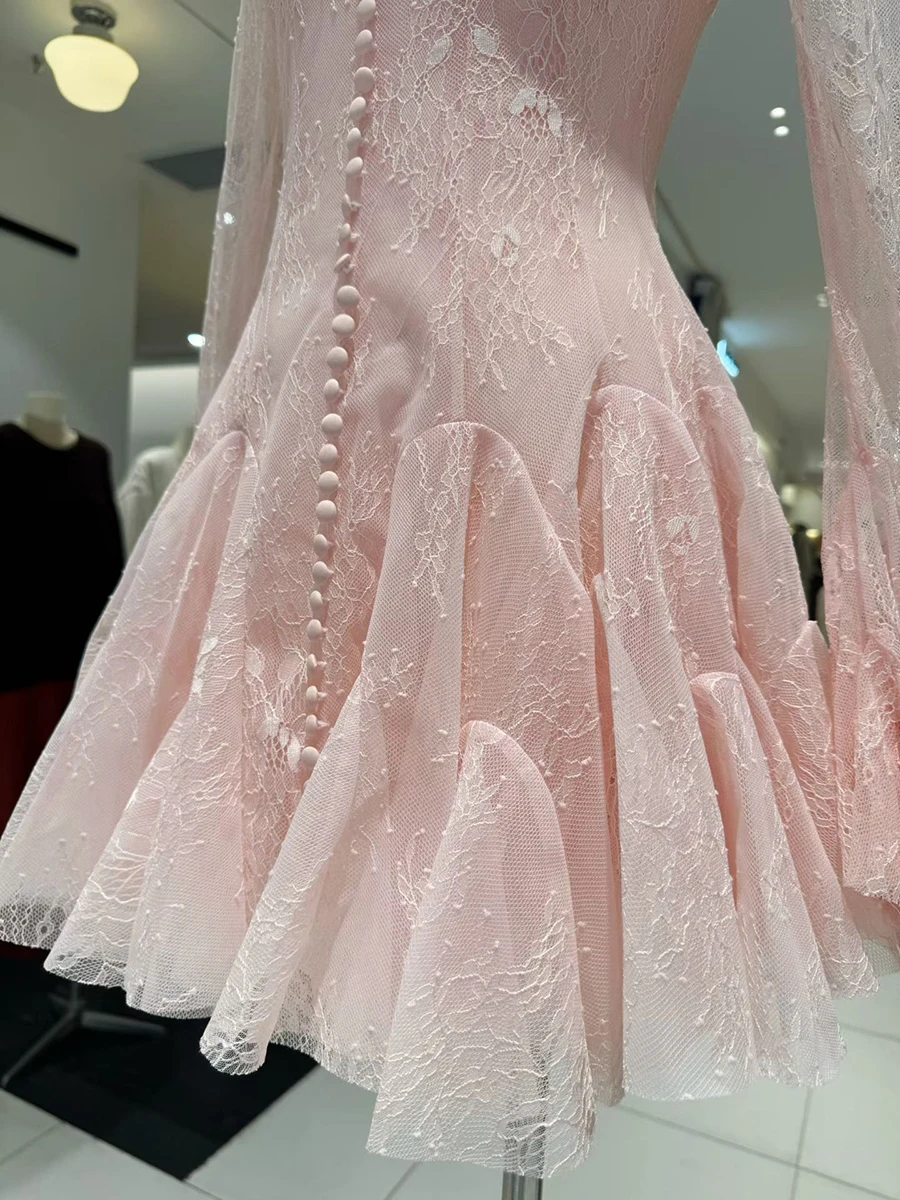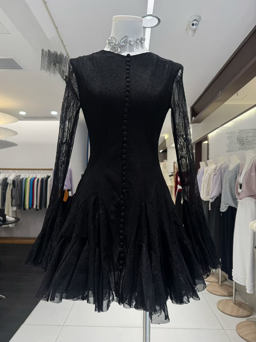 TWOTWINSTYLE Solid Sheer Spliced Lace Sweet Dresses for Women Round Neck Long Sleeves Patchwork Ruffles Elegant Dress Female New