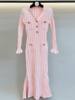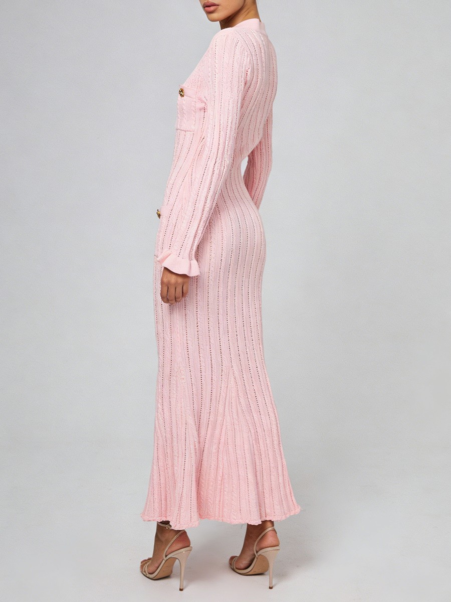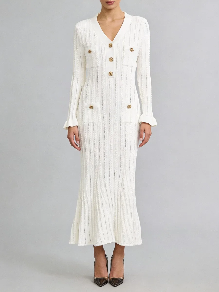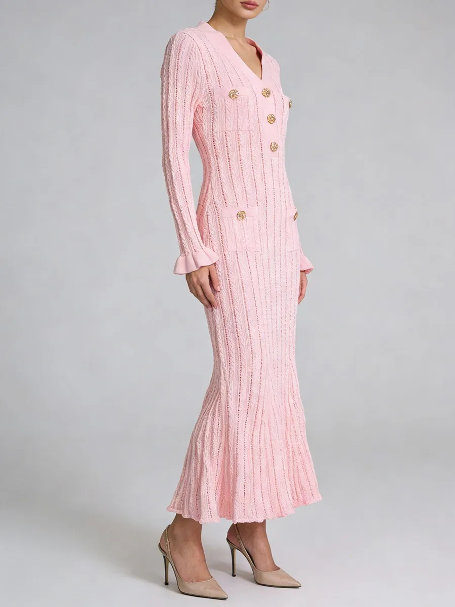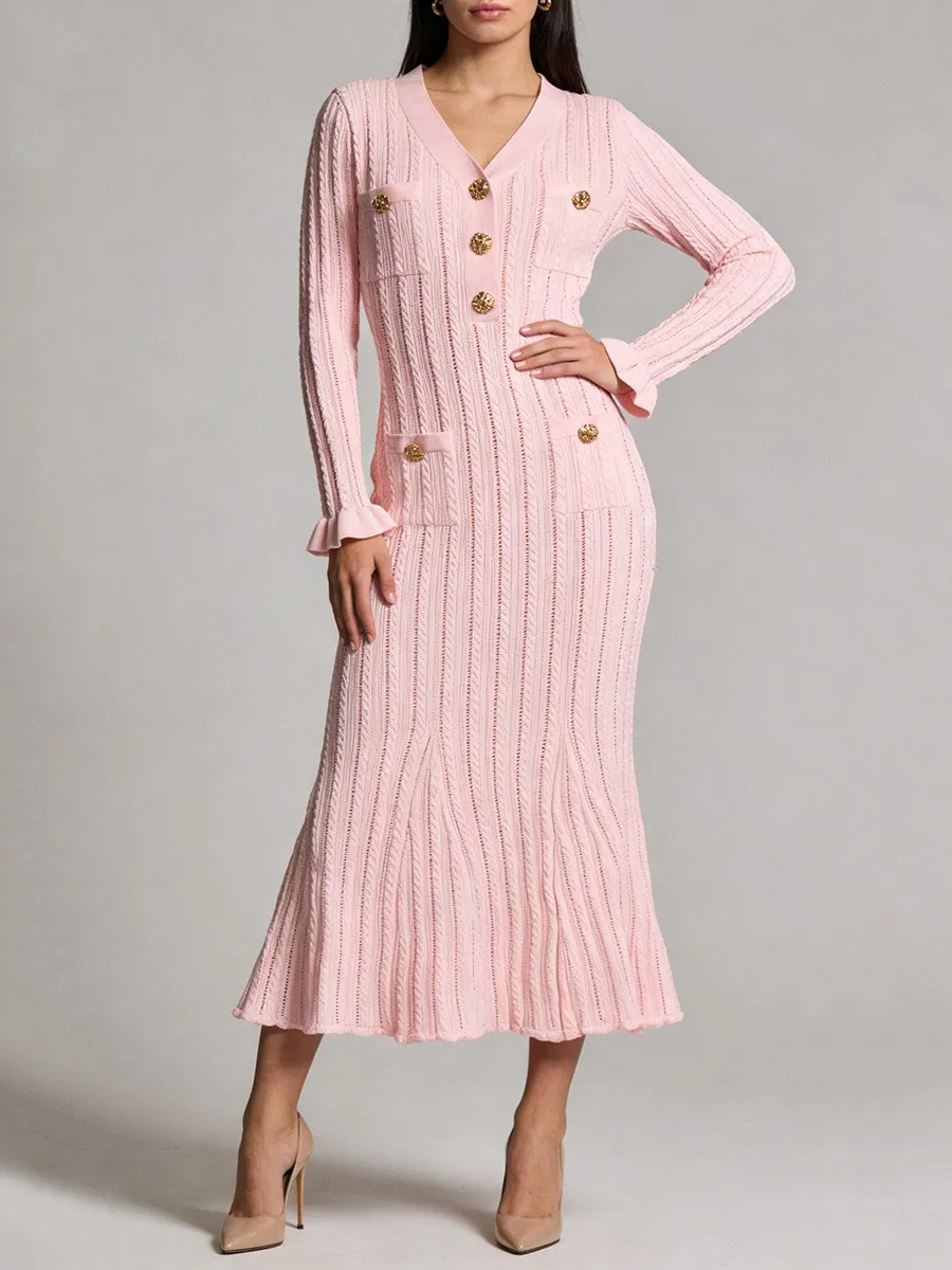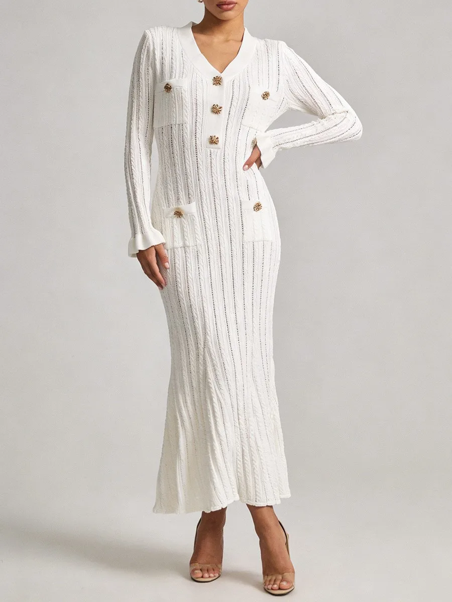 TWOTWINSTYLE Solid Sheer Spliced Striped Elegant Dresses for Women V Neck Long Sleeves Patchwork Pockets Basics Dress Female New