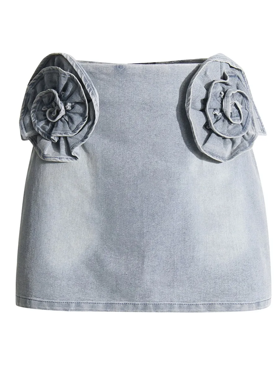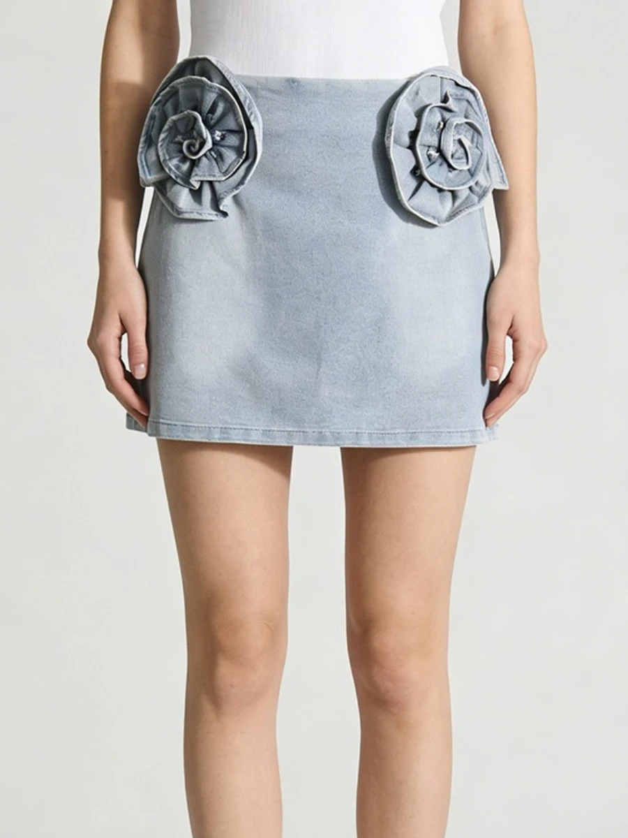 TWOTWINSTYLE Solid Slimming Spliced 3D Flower Fashion Cowboy Skirt for Women High Waist Minimalist Mini Skirts Female 2026 New