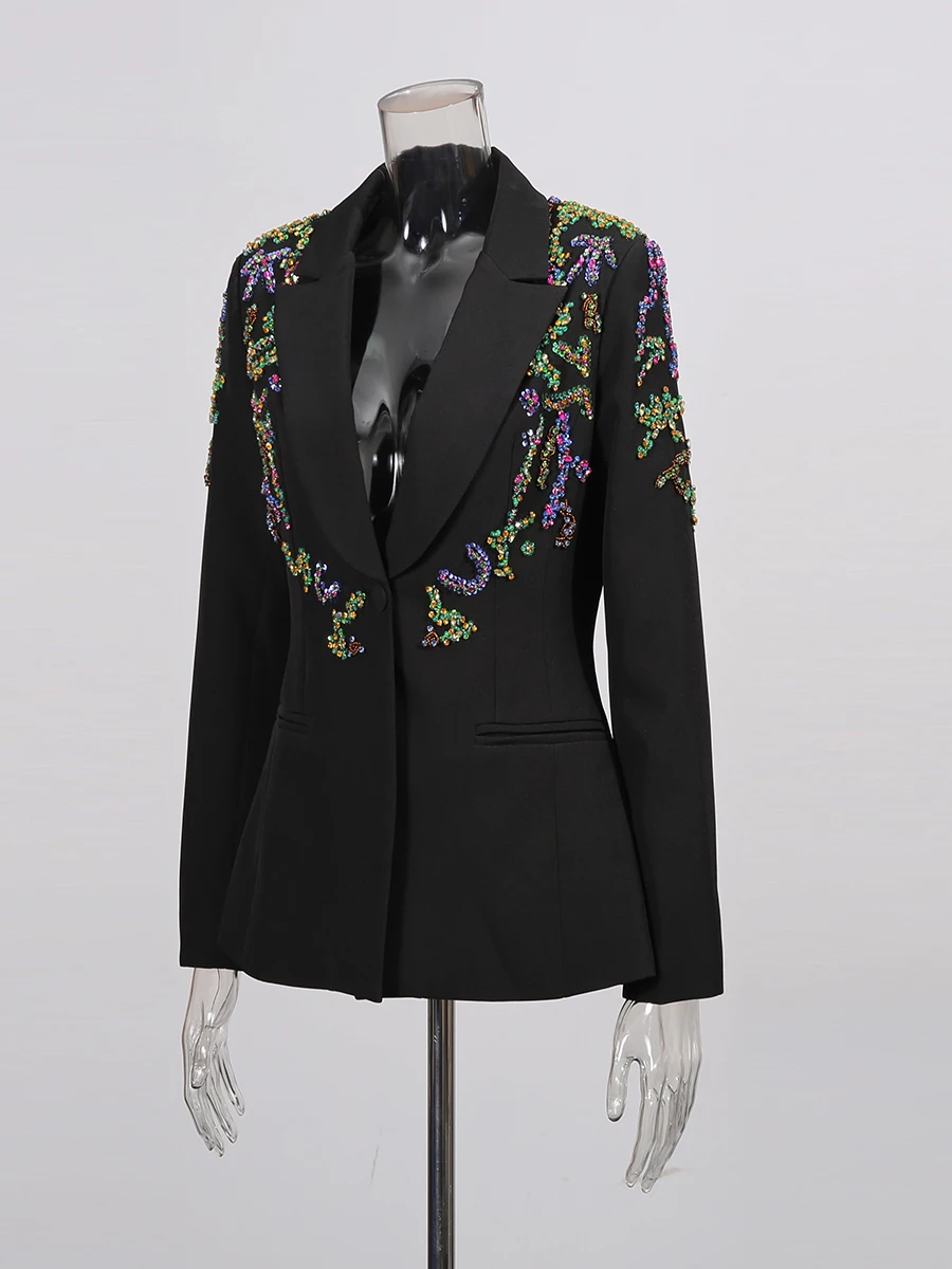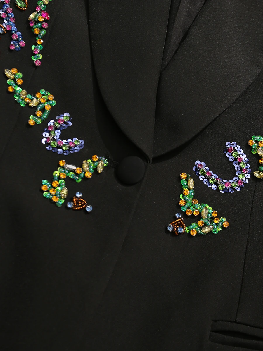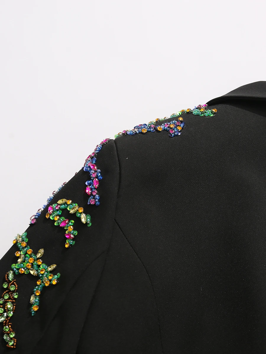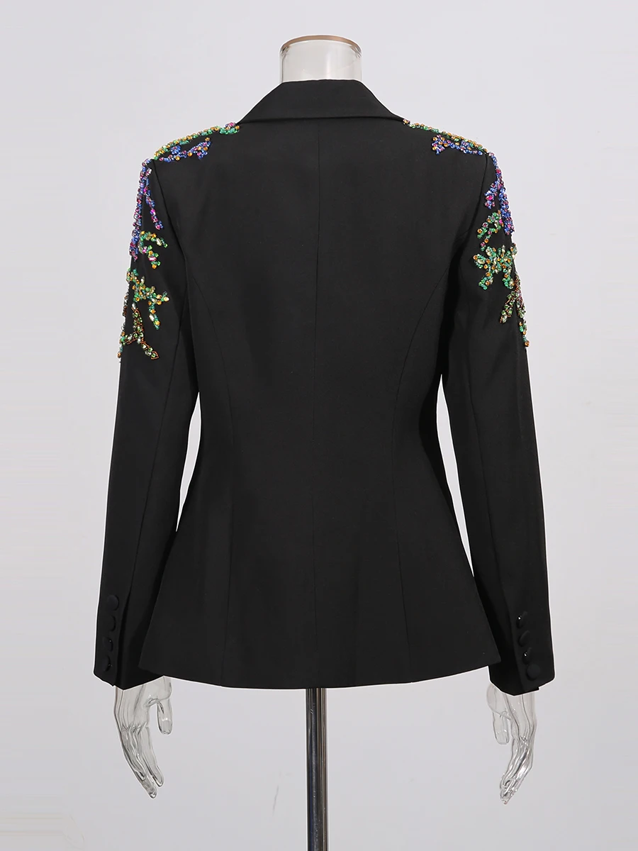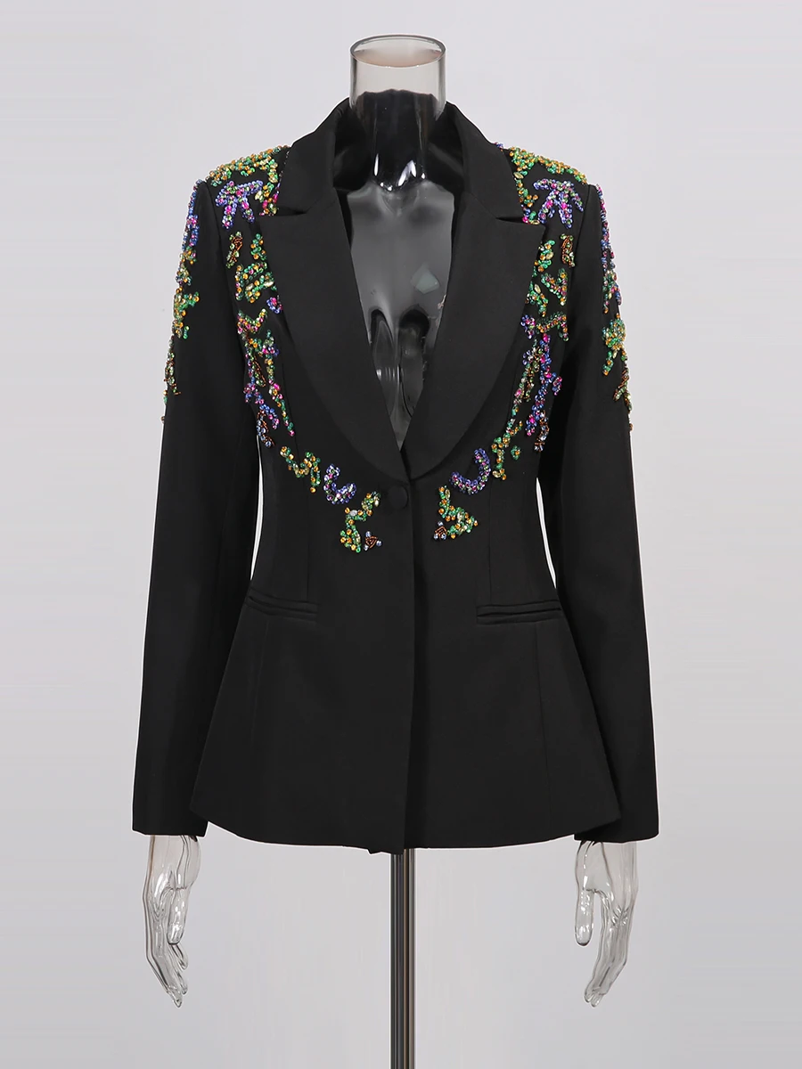 TWOTWINSTYLE Solid Slimming Spliced Beading Luxurious Blazers for Women Lapel Long Sleeves Tunic Elegant Blazer Female Clothing
