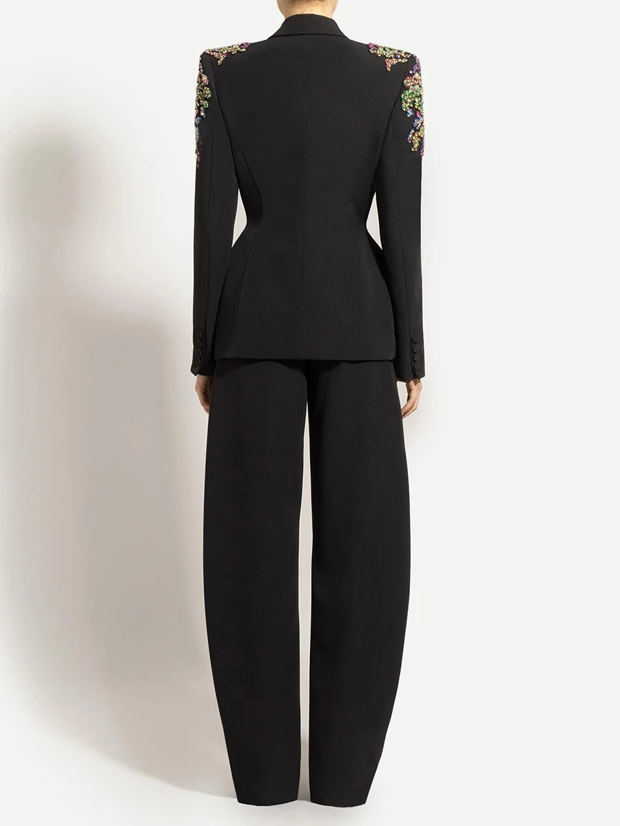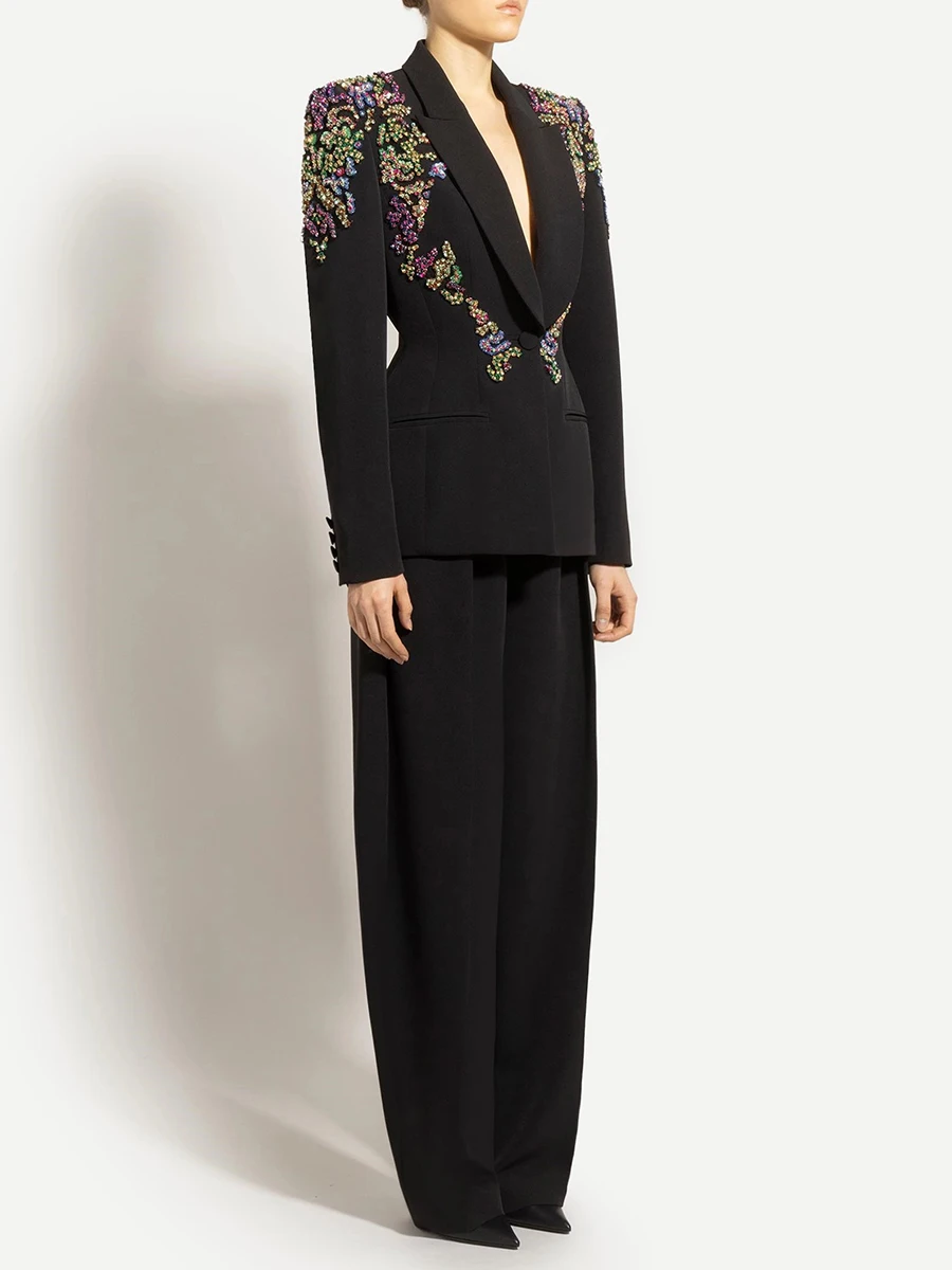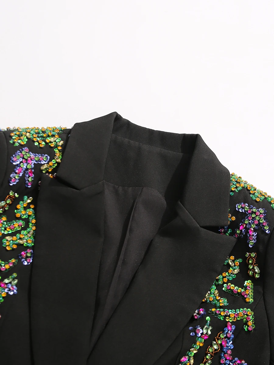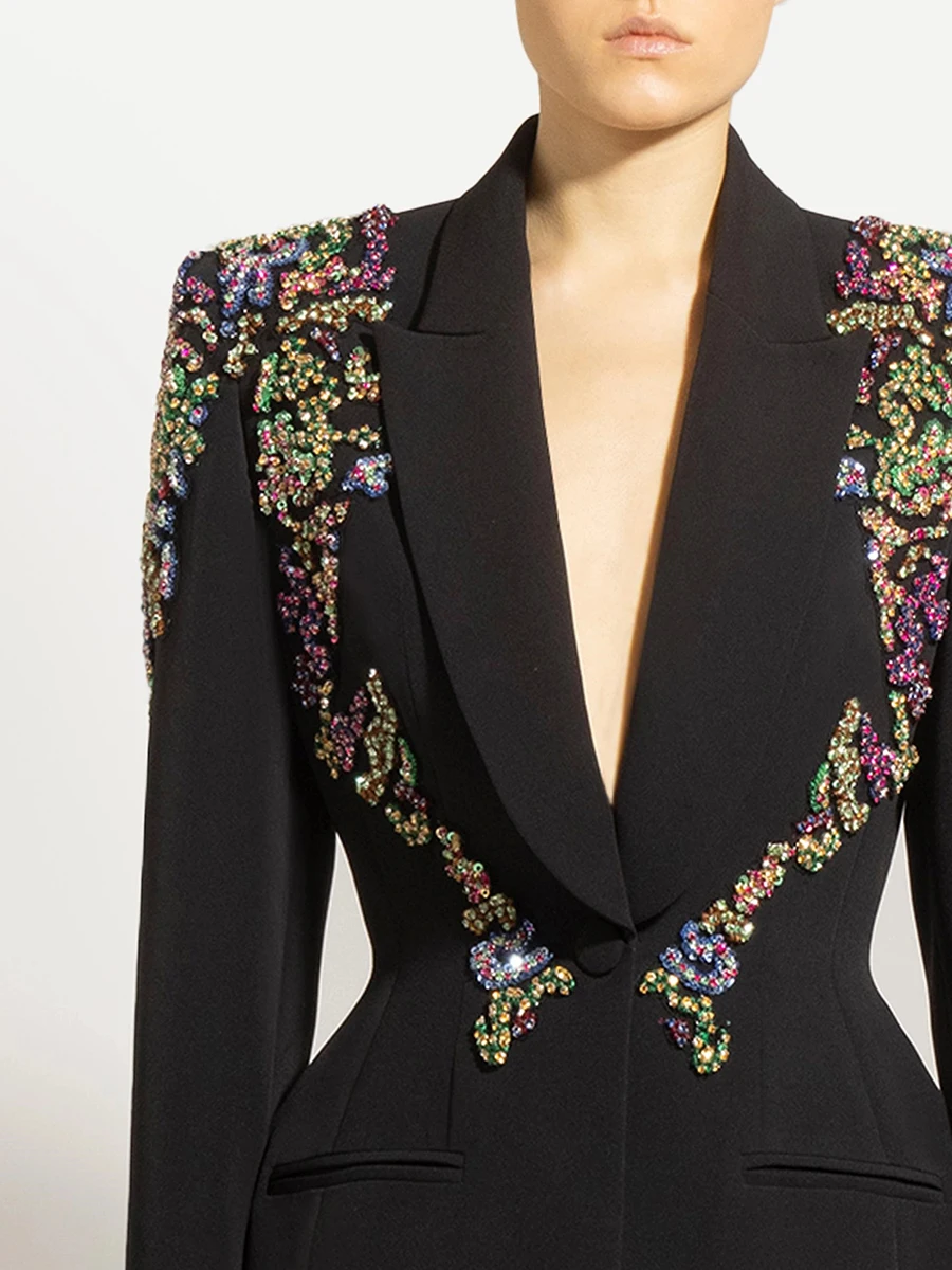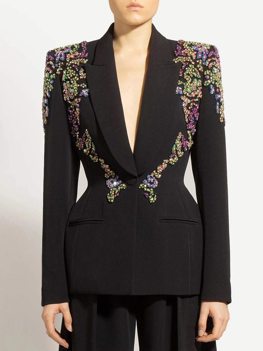 TWOTWINSTYLE Solid Slimming Spliced Beading Luxurious Blazers for Women Lapel Long Sleeves Tunic Elegant Blazer Female Clothing