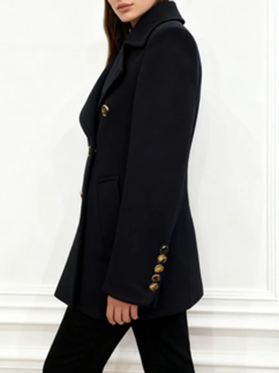 TWOTWINSTYLE Solid Slimming Spliced Double Breasted Jackets for Women Lapel Long Sleeves Minimalist Jacket Female Fashion New