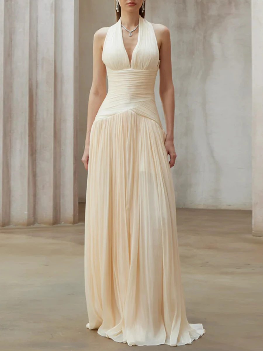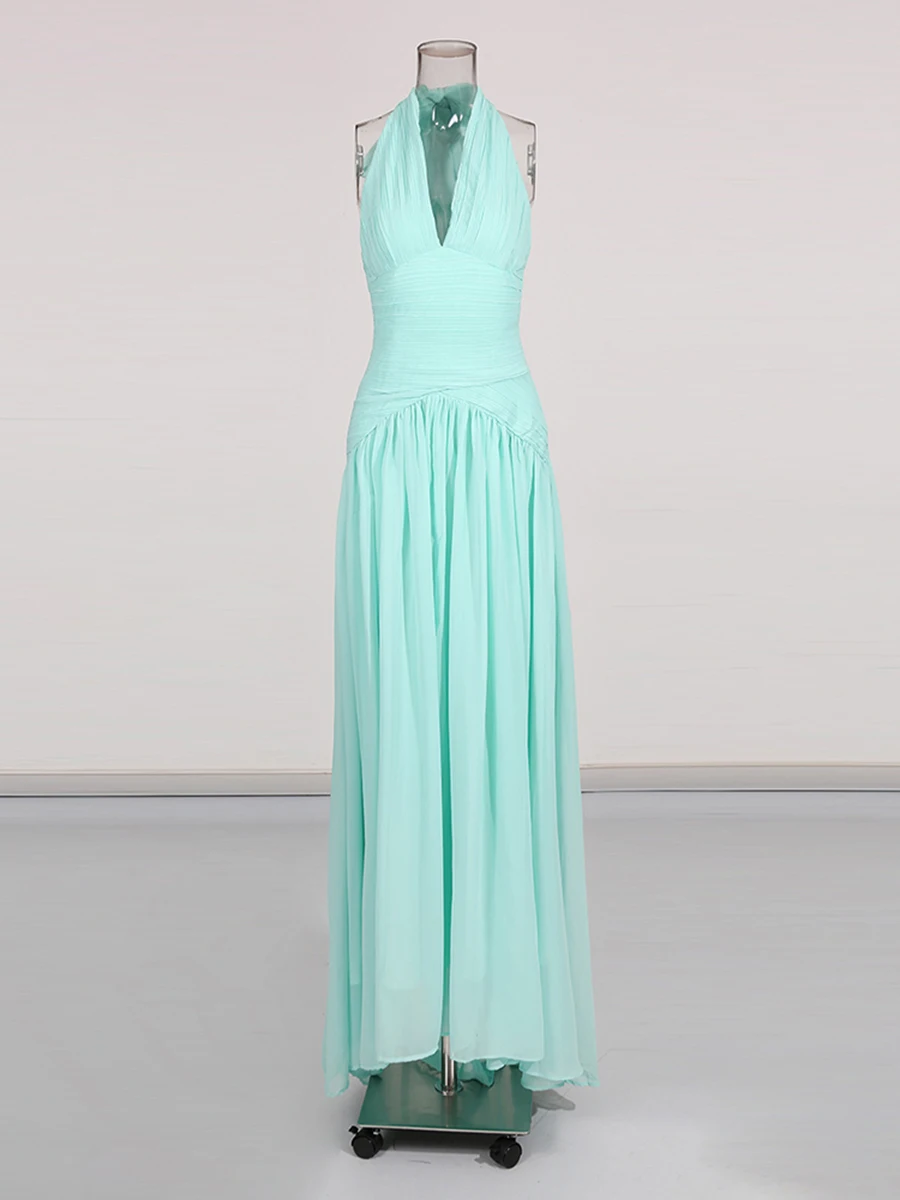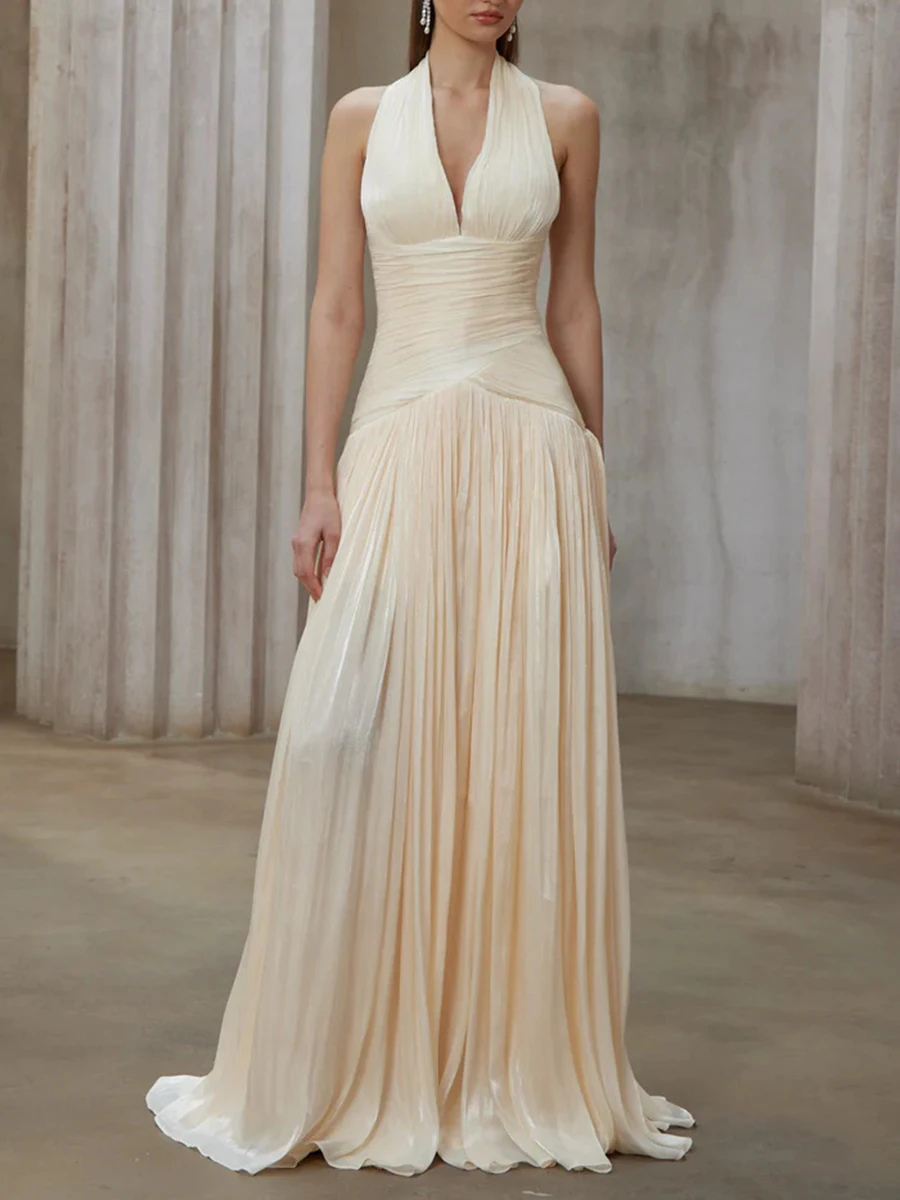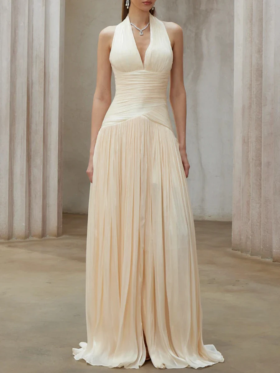 TWOTWINSTYLE Solid Slimming Spliced Folds Elegant Dresses for Women Halter Sleeveless High Waist Long Dress Female Clothing New