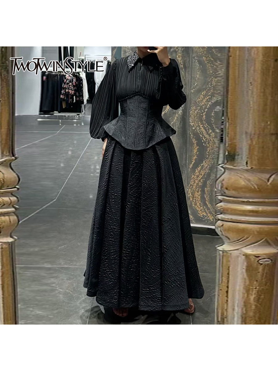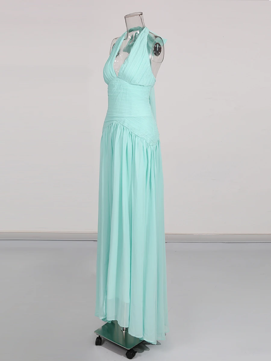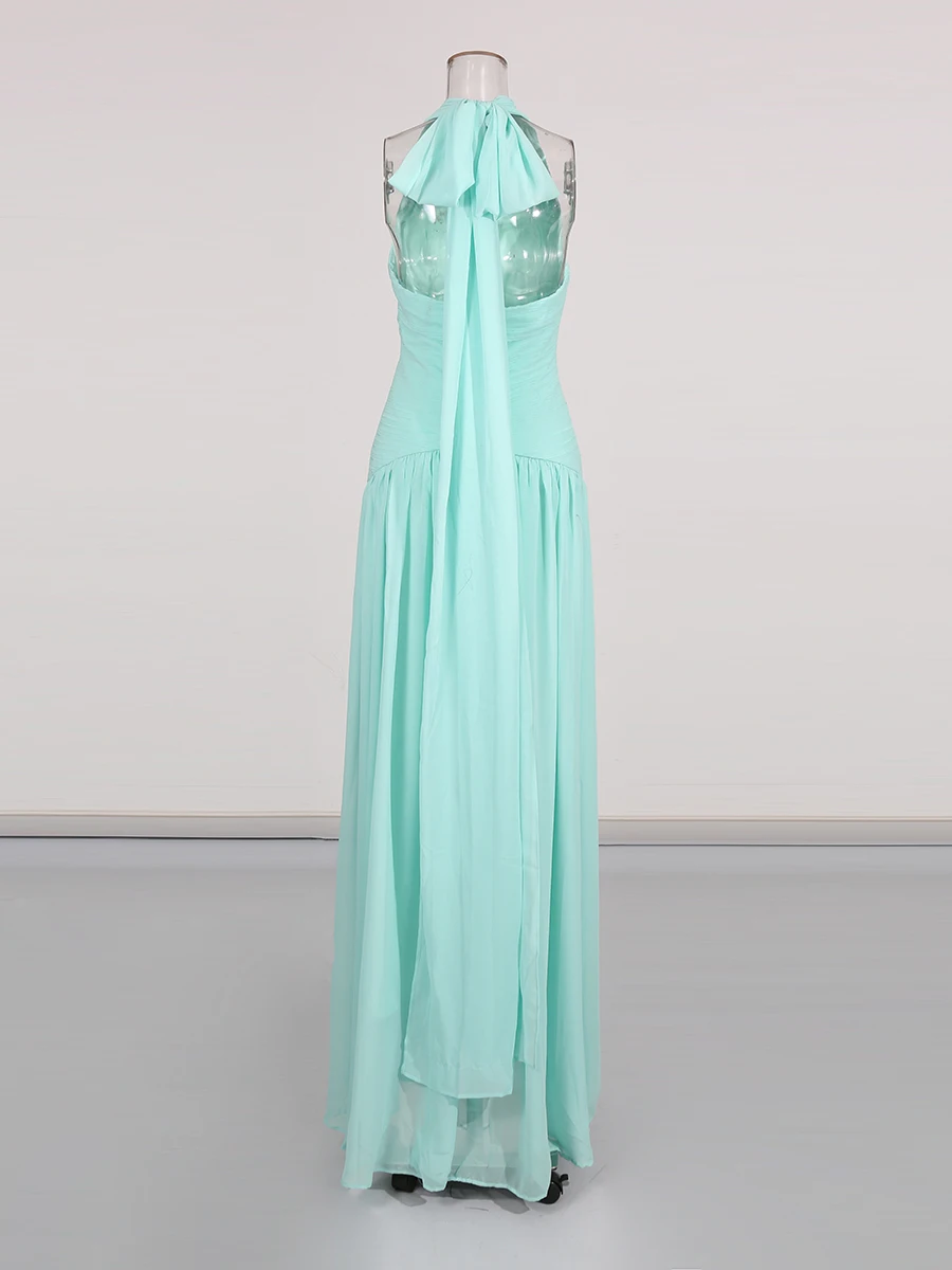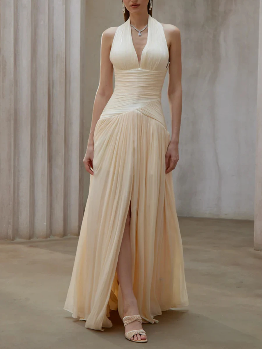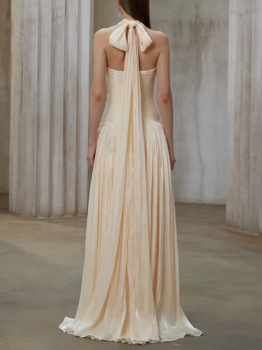 TWOTWINSTYLE Solid Slimming Spliced Folds Elegant Dresses for Women Halter Sleeveless High Waist Long Dress Female Clothing New