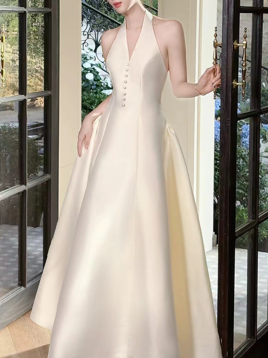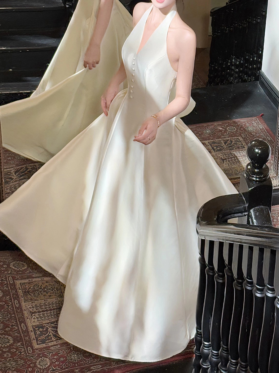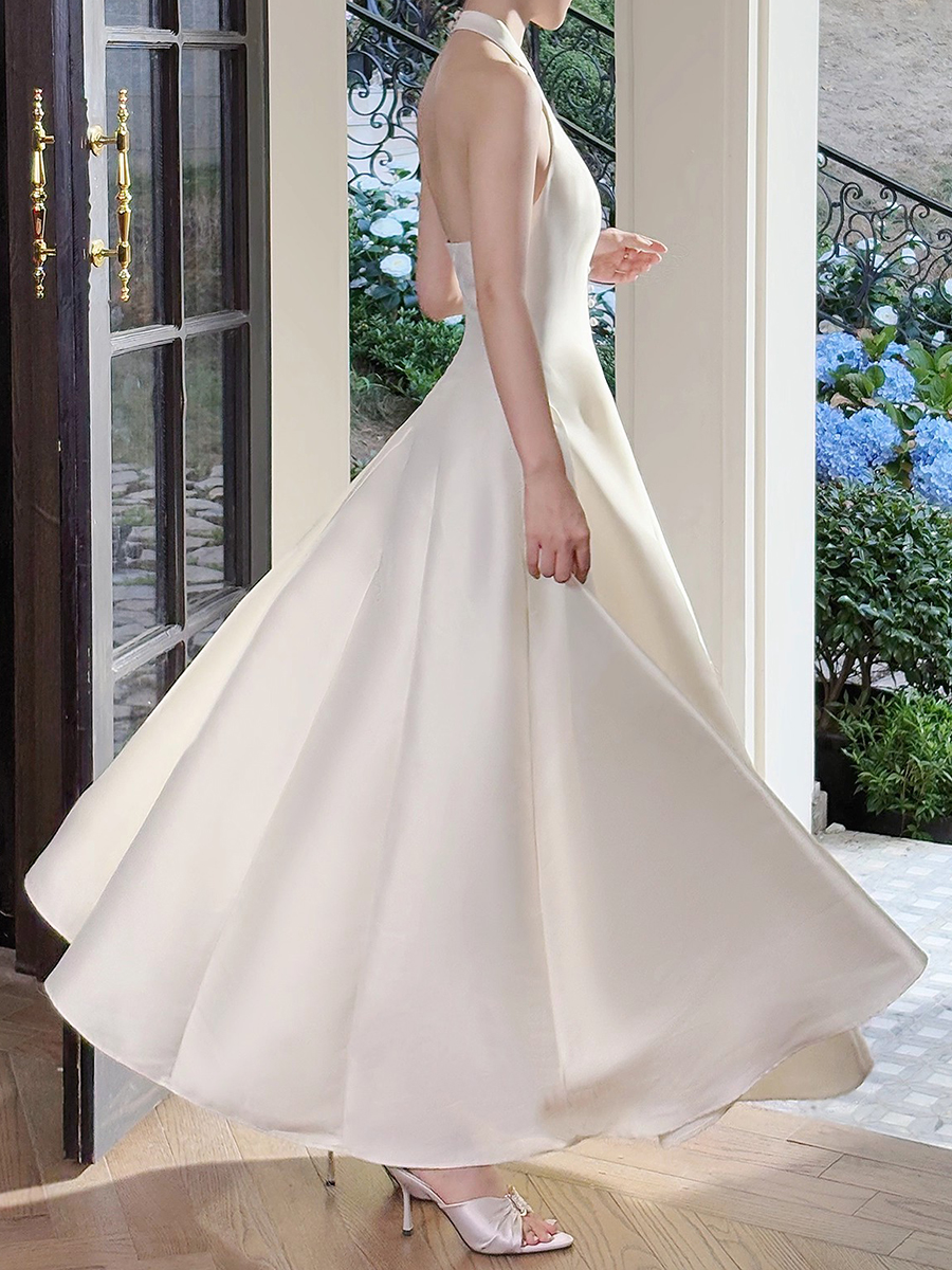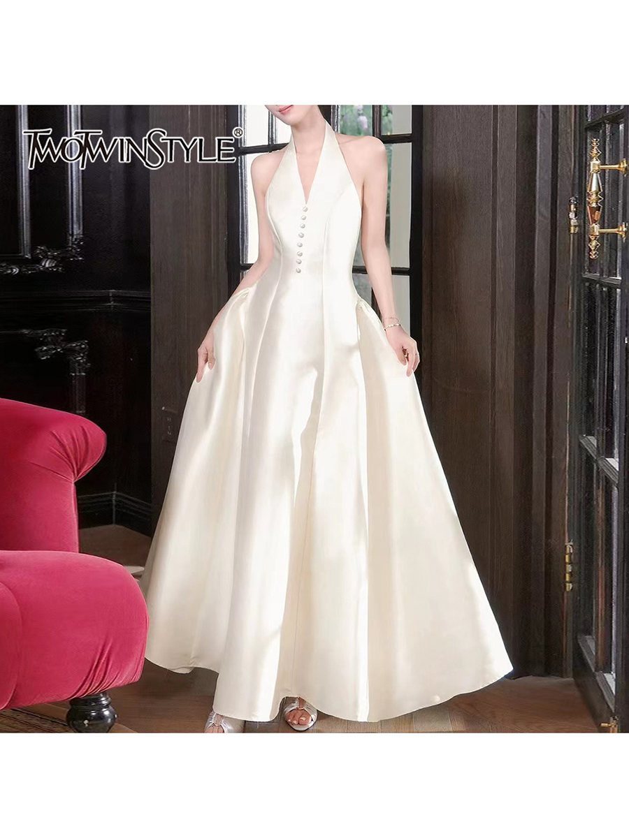 TWOTWINSTYLE Solid Slimming Spliced Single Breasted Elegant Dresses for Women Halter Sleeveless Backless Tunic Long Dress Female