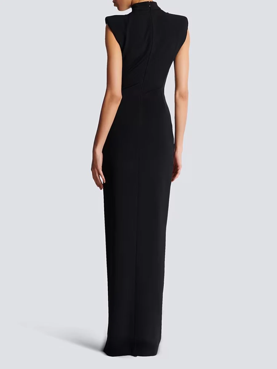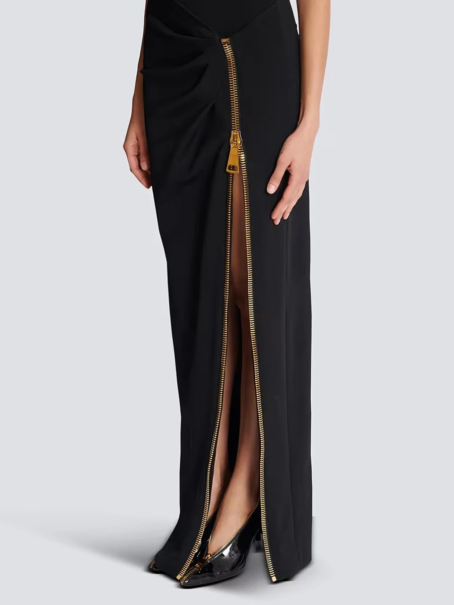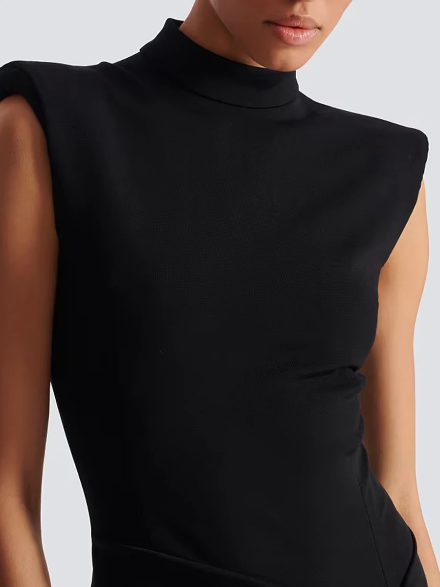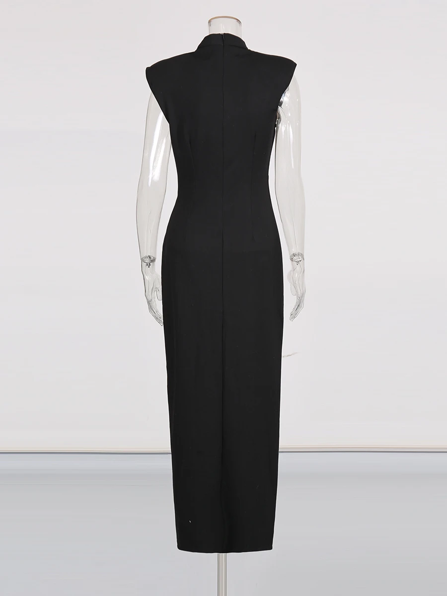 TWOTWINSTYLE Solid Slimming Spliced Zipper Temperament Dresses for Women Stand Neck Sleeveless Patchwork Folds Dress Female New