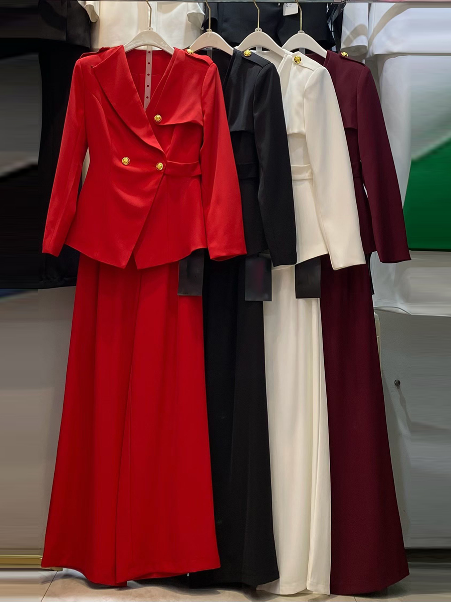 TWOTWINSTYLE Solid Slimming Two Piece Sets for Women V Neck Long Sleeves Spliced Buttons Top High Waist Pant Elegant Set Female
