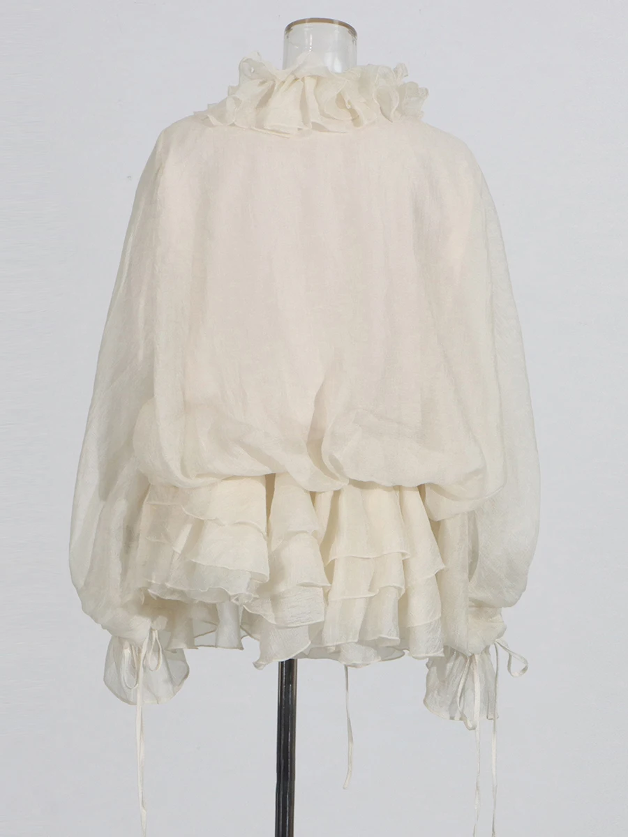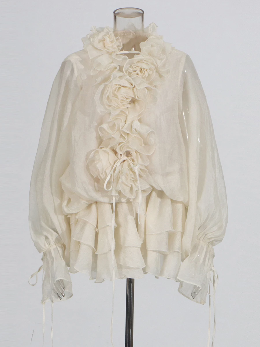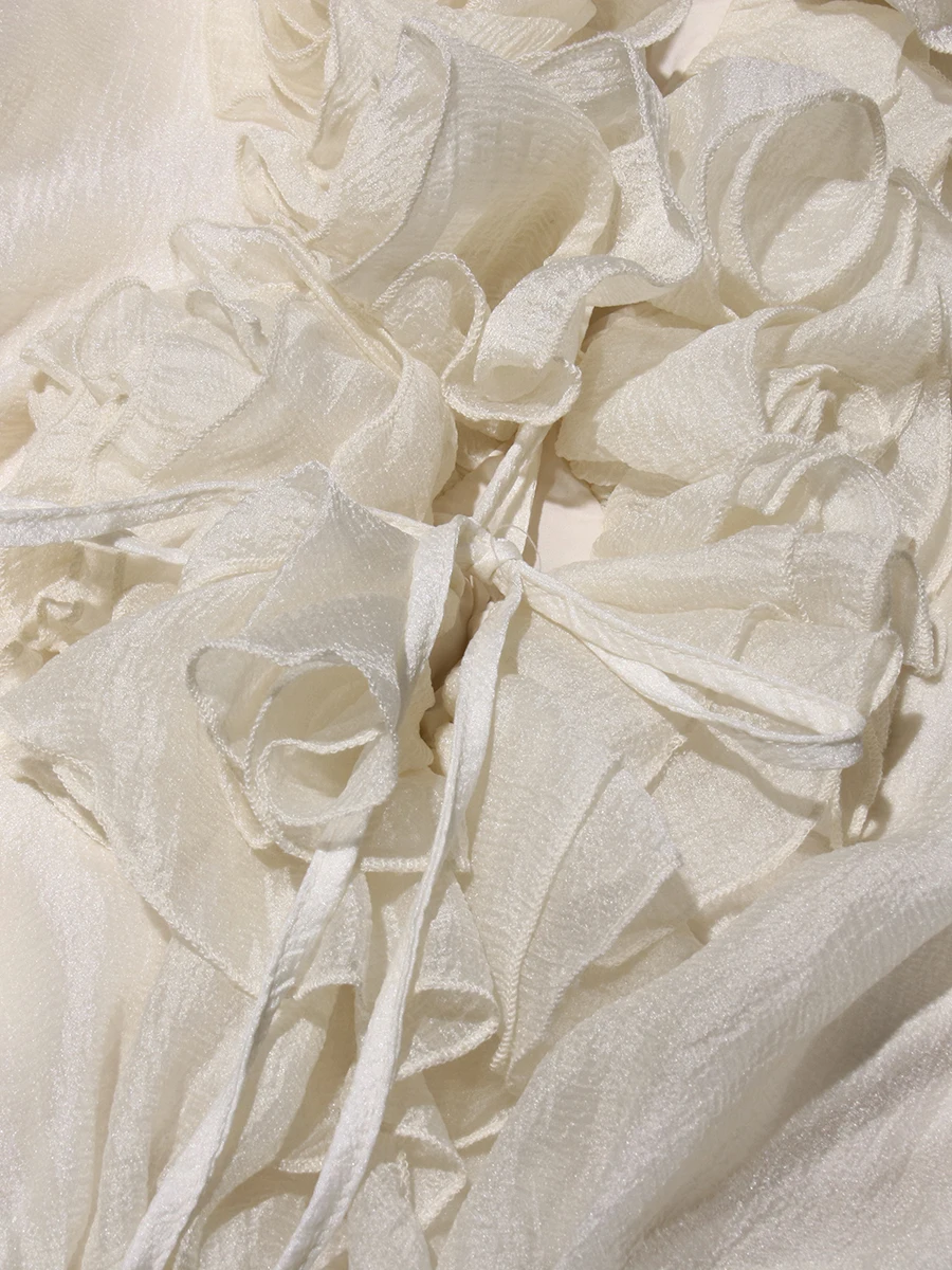 TWOTWINSTYLE Solid Spliced 3D Flower Elegant Dresses for Women V Neck Long Sleeves Patchwork Ruffles Folds Mini Dress Female New