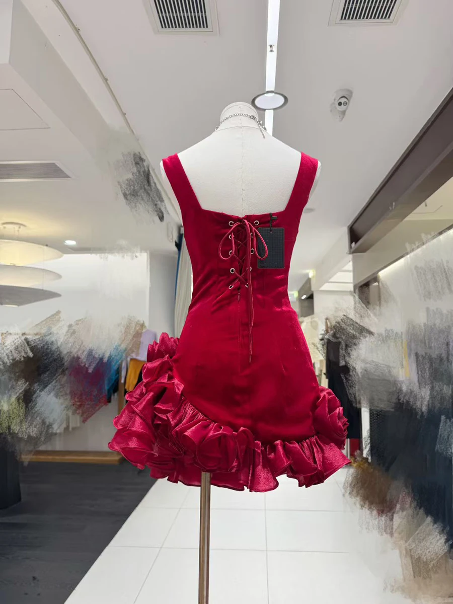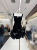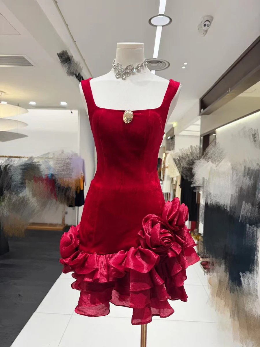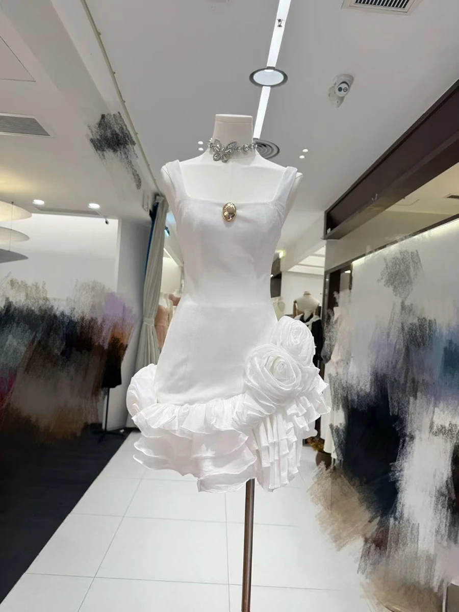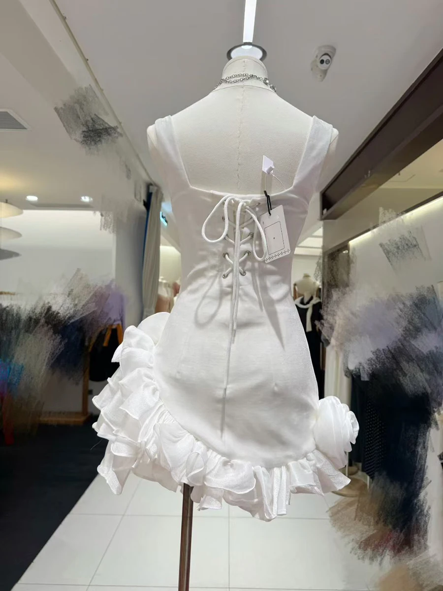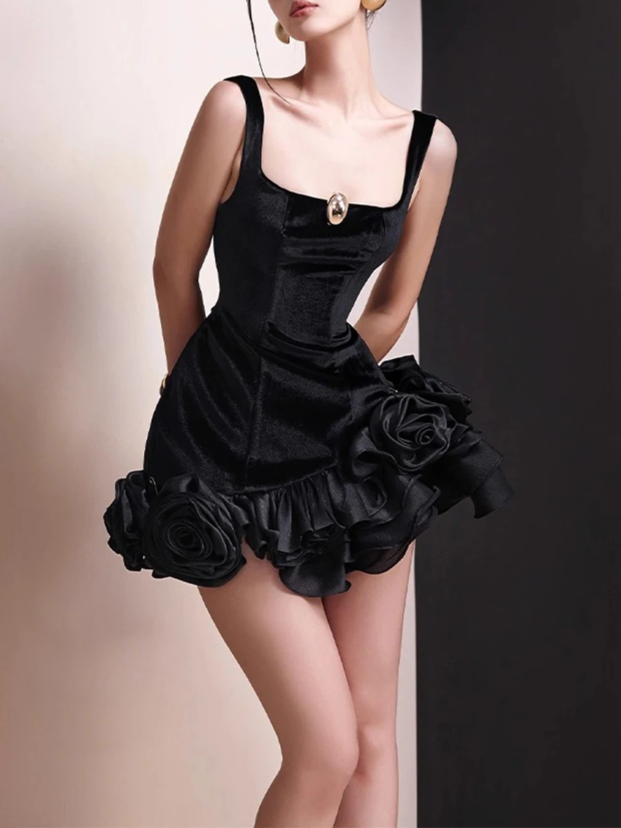TWOTWINSTYLE Solid Spliced 3D Flower Temperament Dresses for Women Square Neck Sleeveless Patchwork Ruffles Folds Dress Female