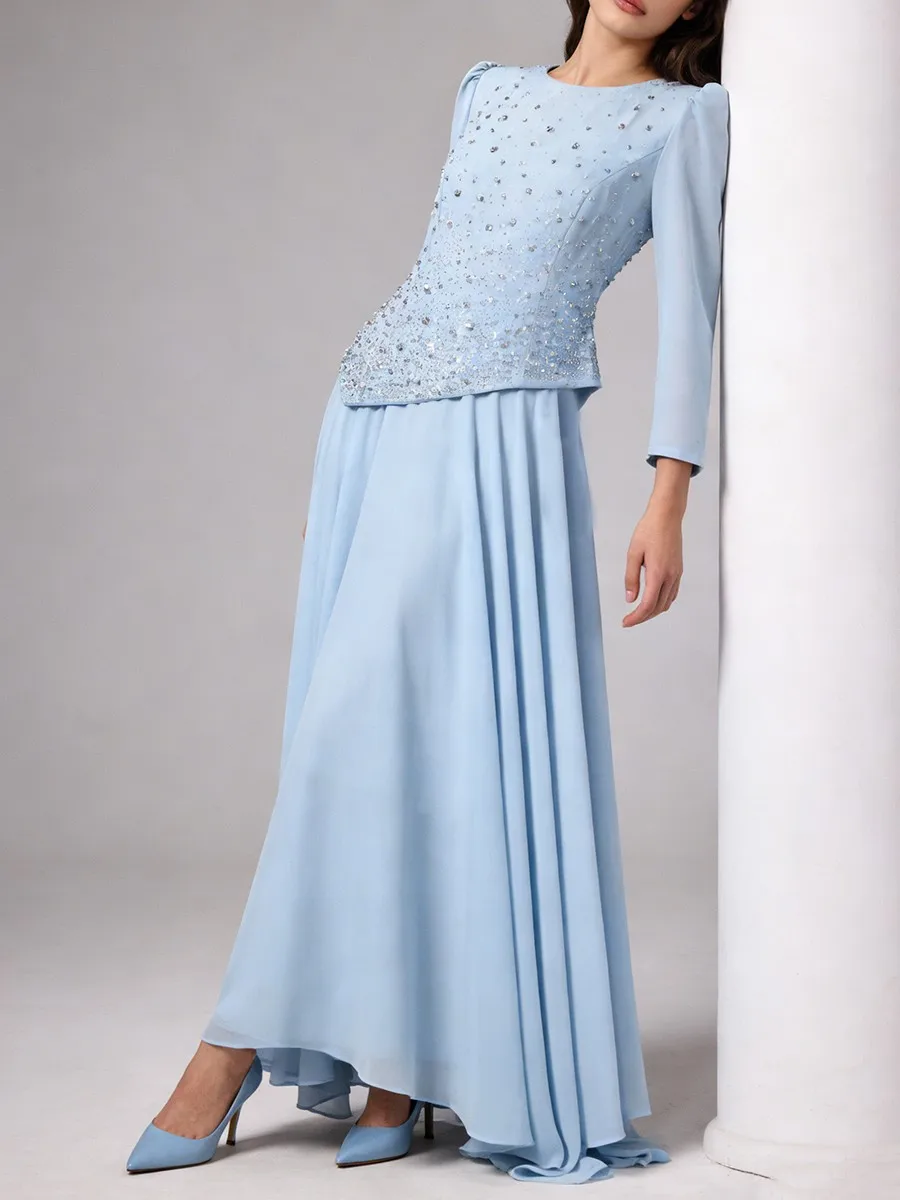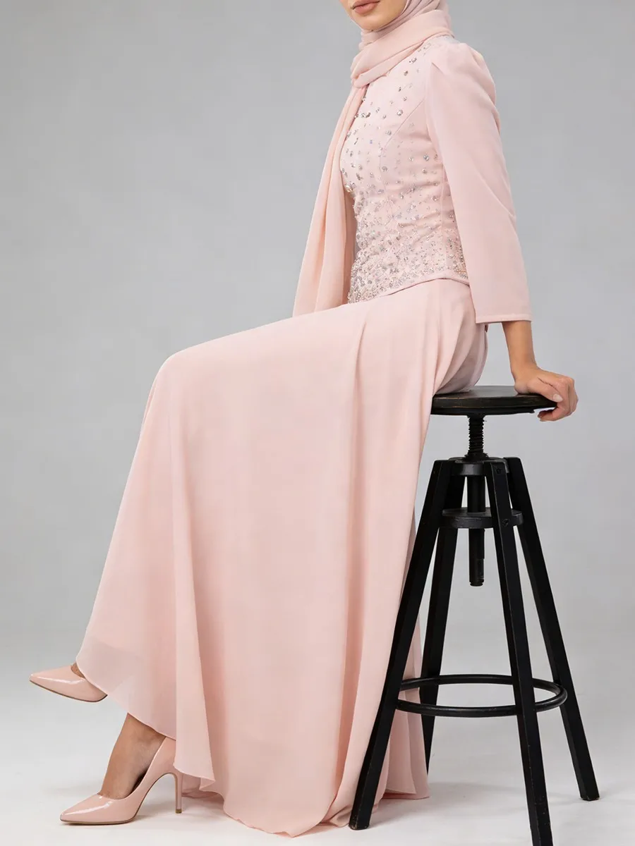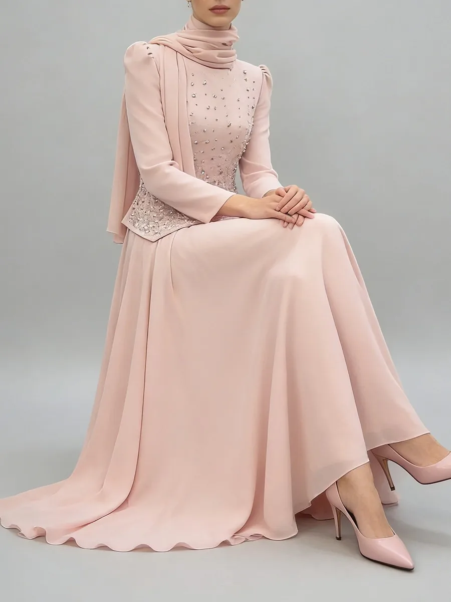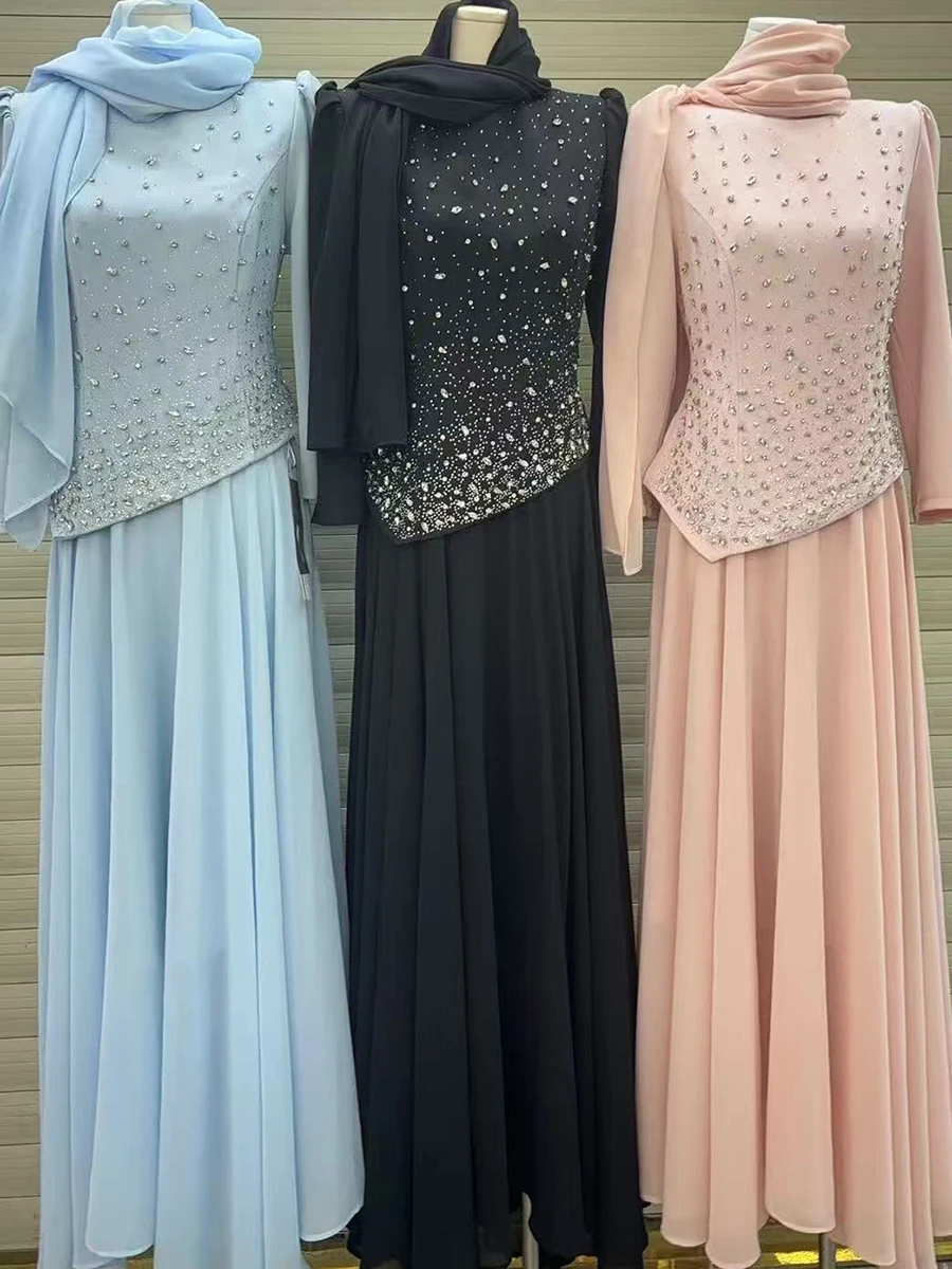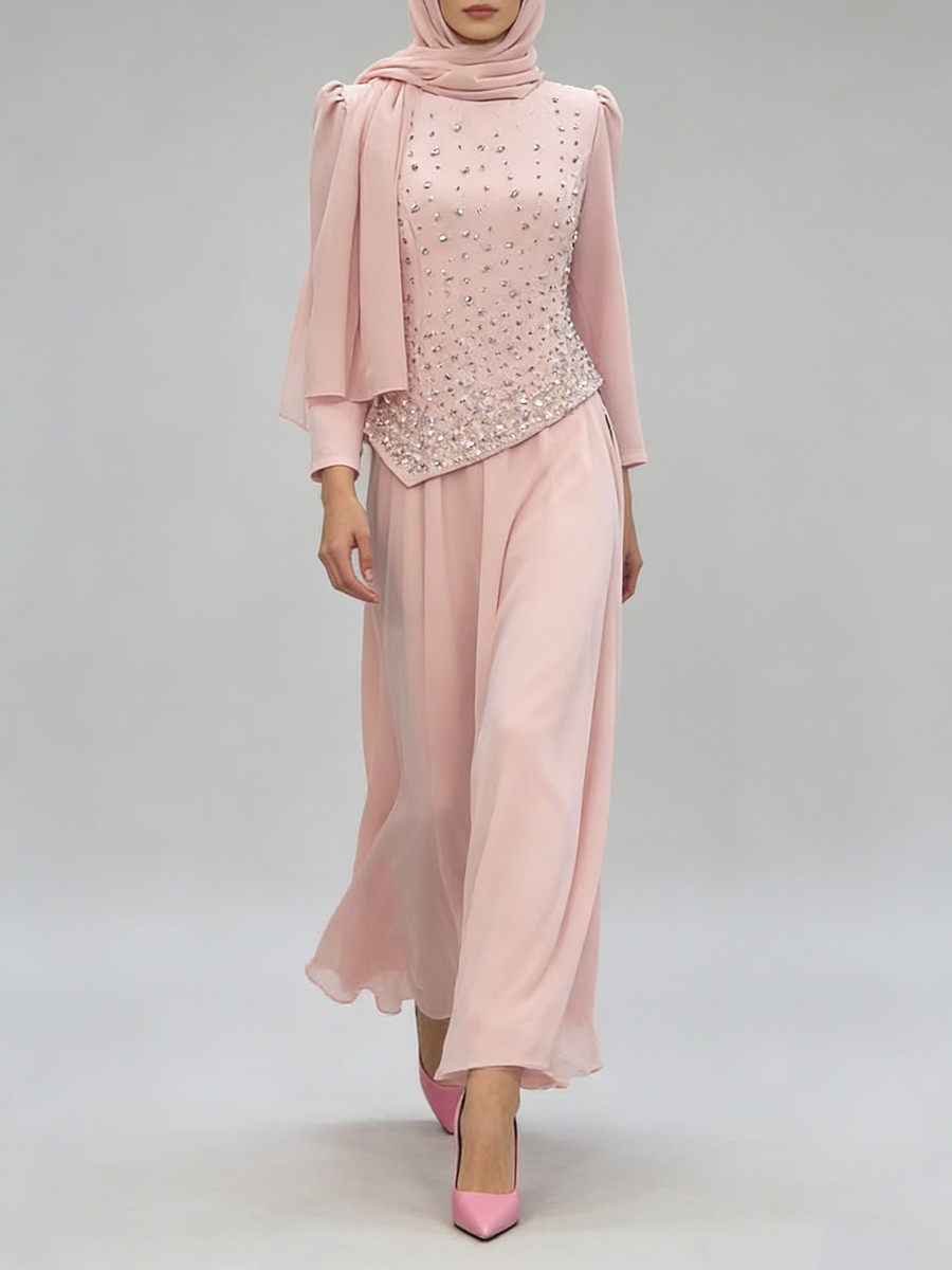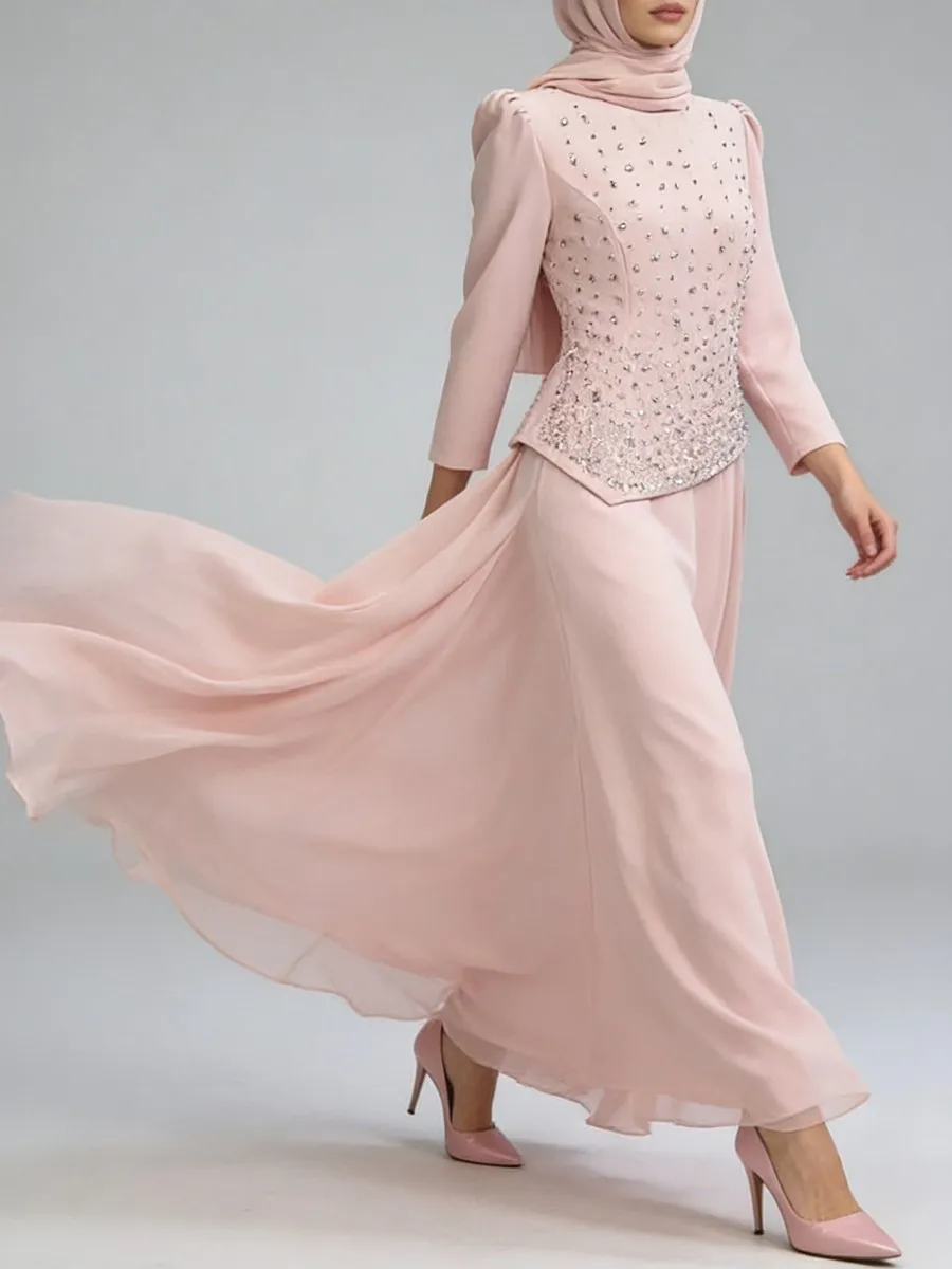 TWOTWINSTYLE Solid Spliced Diamonds Temperament Dress for Women Round Neck Long Sleeves Tunic Patchwork Folds Dresses Female New