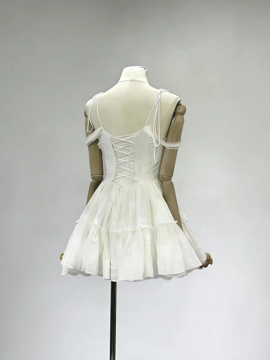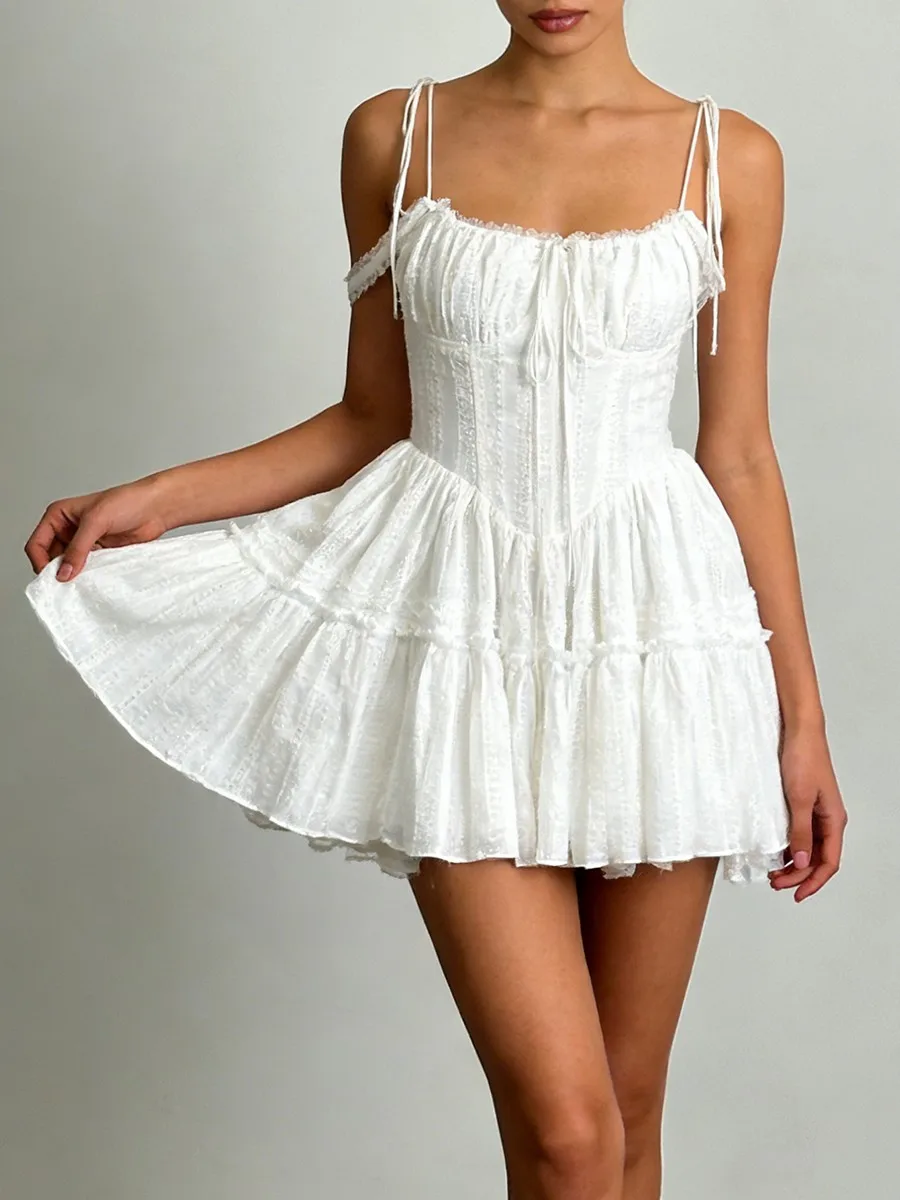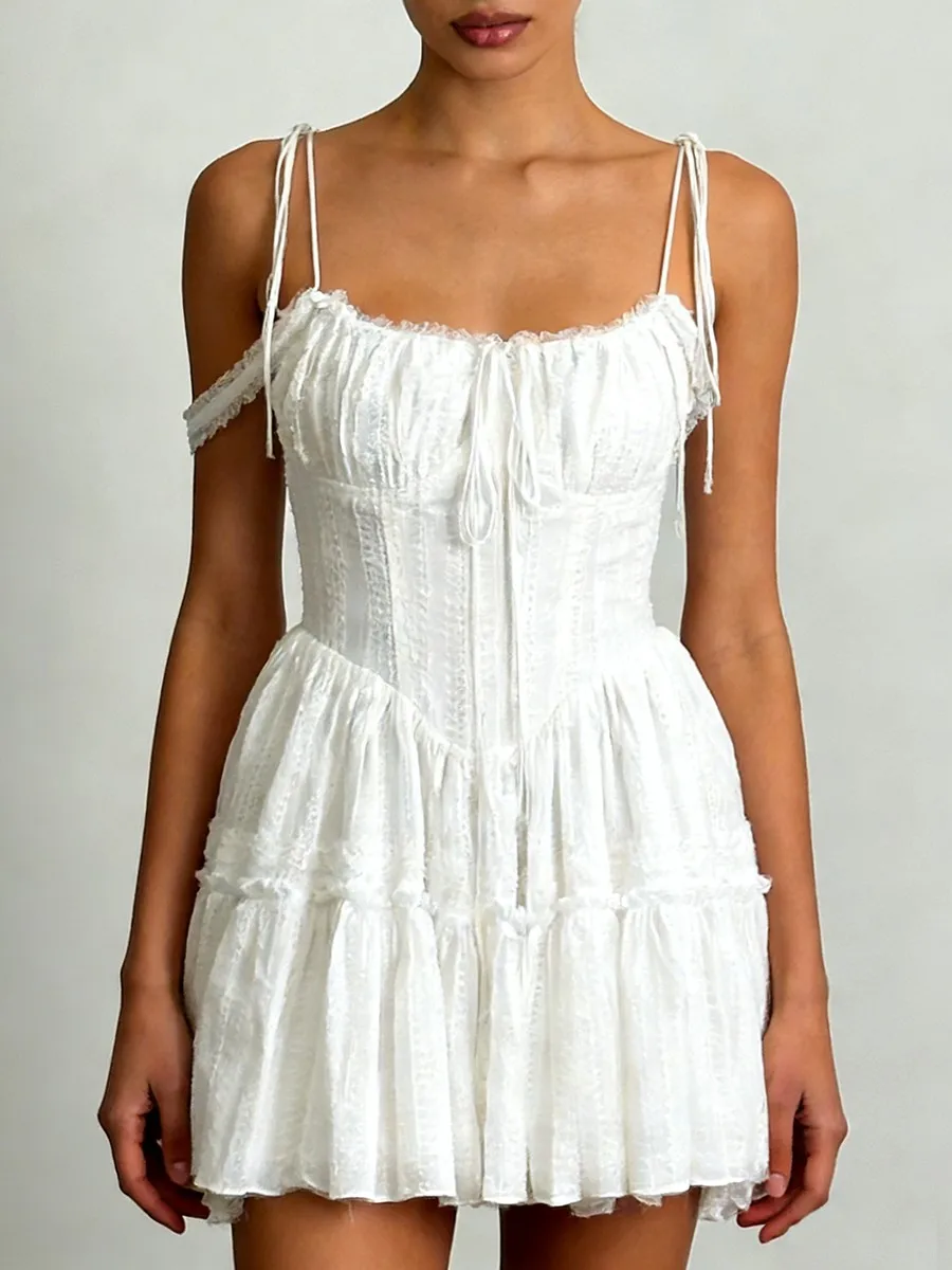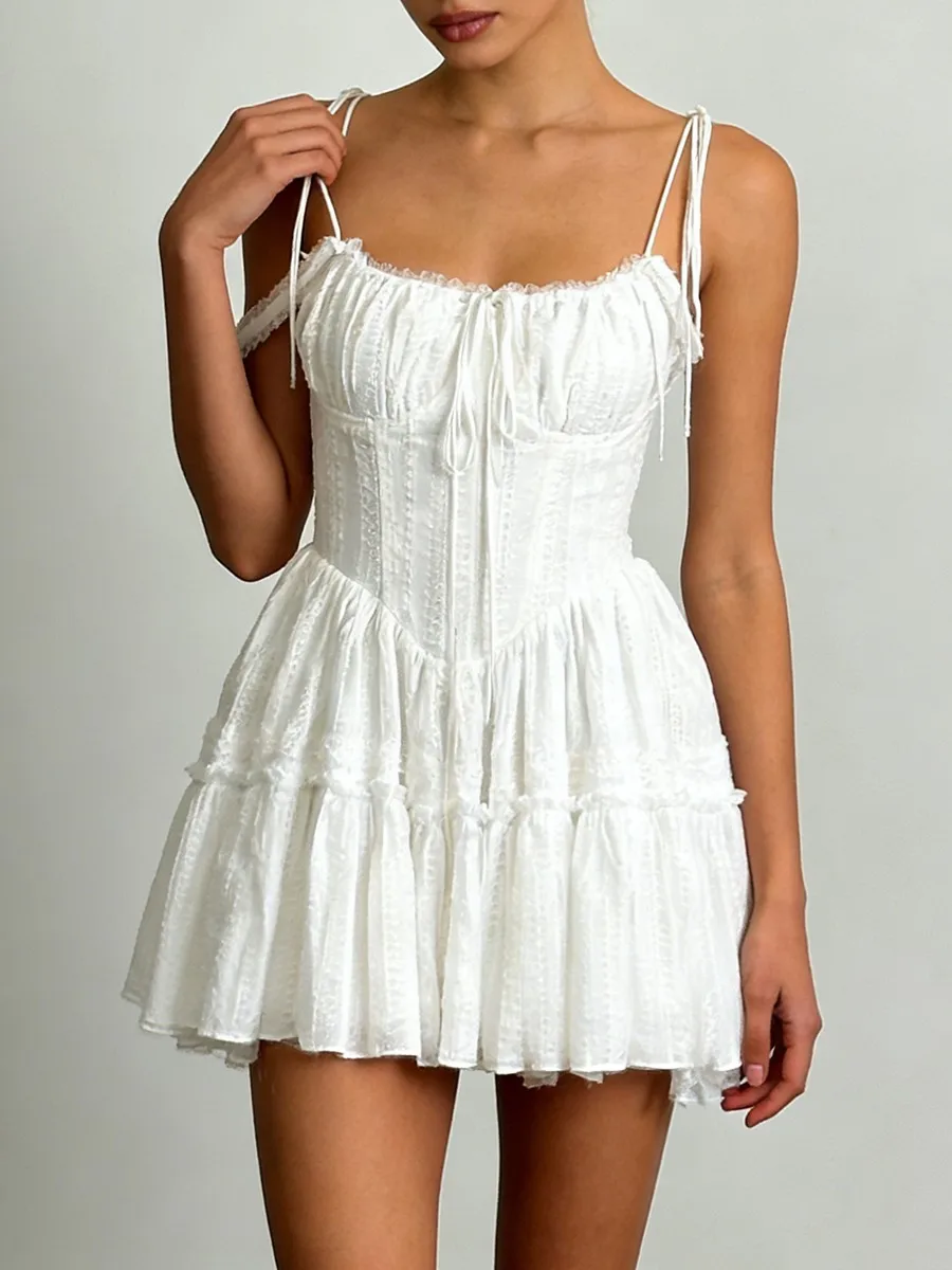 TWOTWINSTYLE Solid Spliced Embroidery Sweet Dresses for Women Square Neck Sleeveless High Waist Patchwork Strap Dress Female New