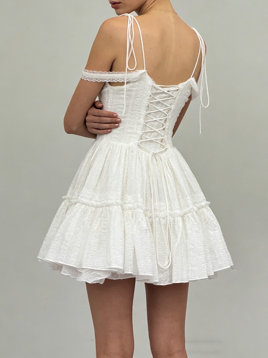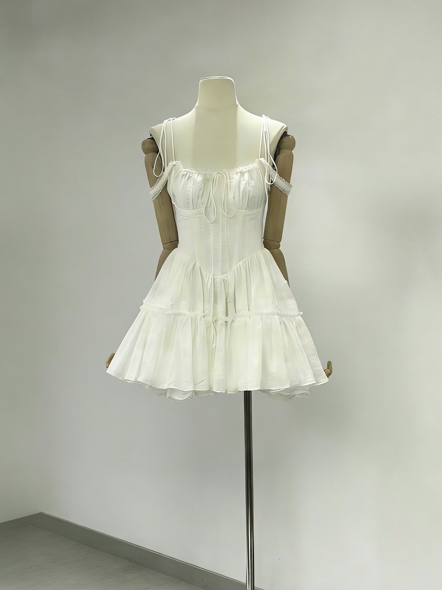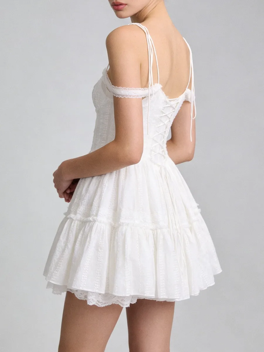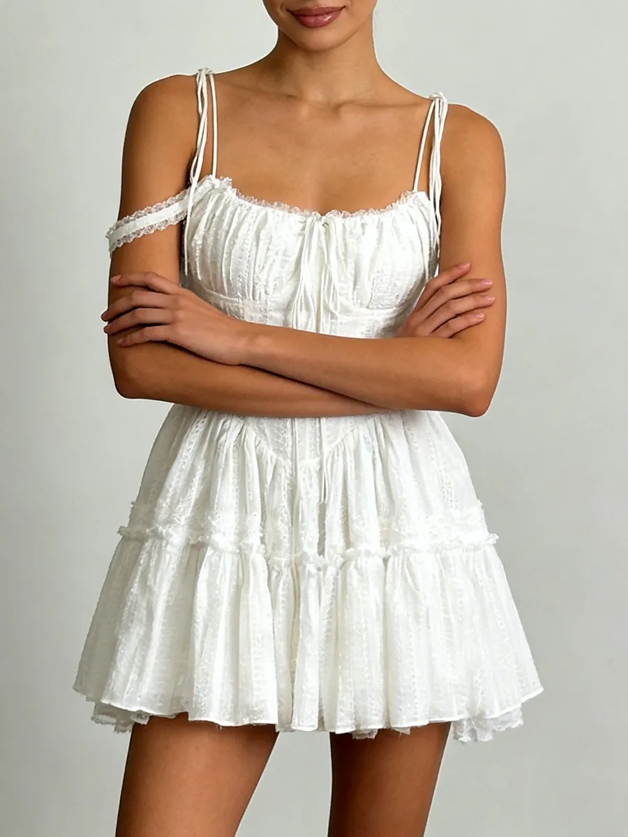 TWOTWINSTYLE Solid Spliced Embroidery Sweet Dresses for Women Square Neck Sleeveless High Waist Patchwork Strap Dress Female New