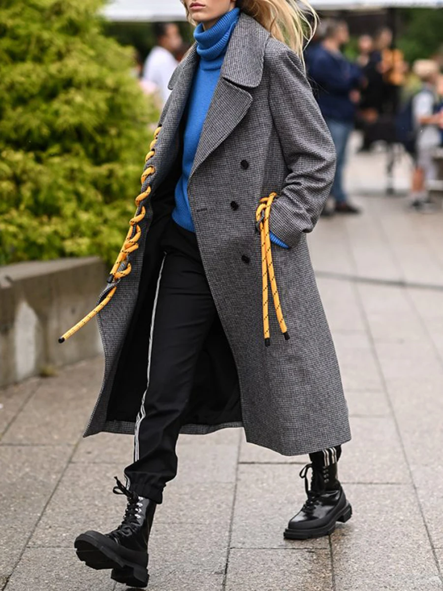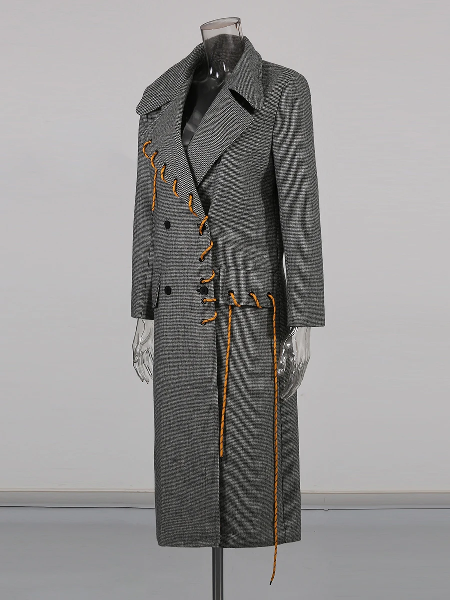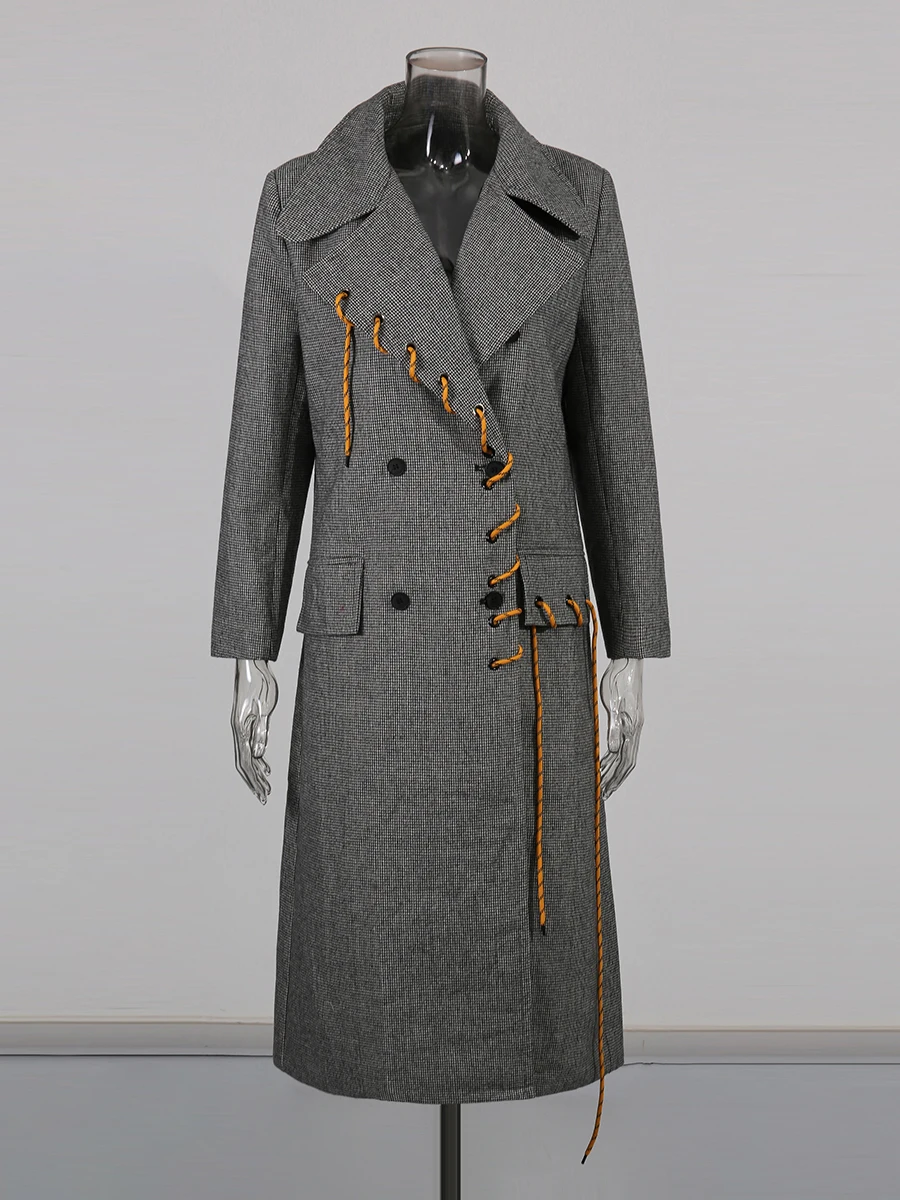 TWOTWINSTYLE Solid Spliced Lace Up Fashion Coats for Women Lapel Long Sleeves Patchwork Double Breasted Casual Coat Female New