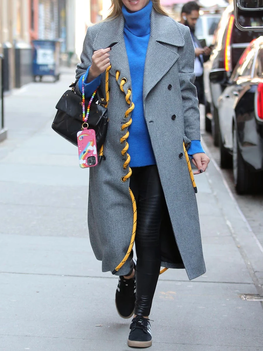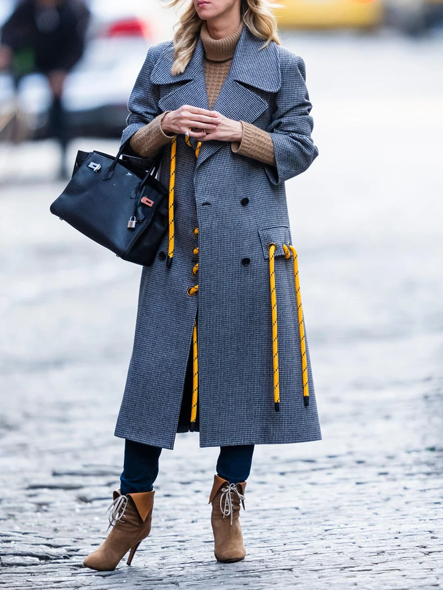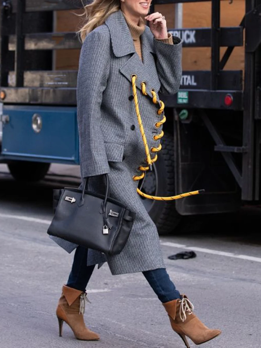 TWOTWINSTYLE Solid Spliced Lace Up Fashion Coats for Women Lapel Long Sleeves Patchwork Double Breasted Casual Coat Female New