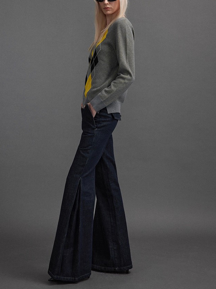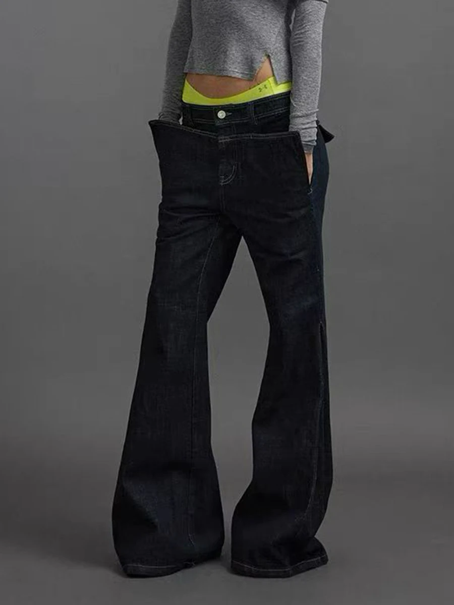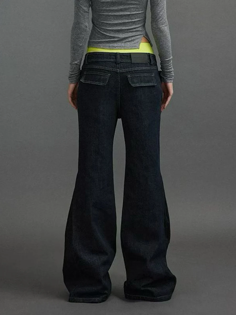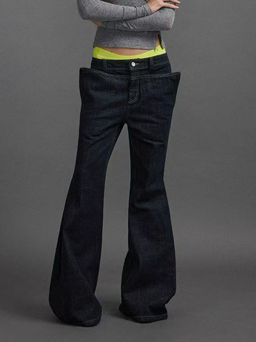 TWOTWINSTYLE Solid Spliced Pockets Fashion Jeans for Women High Waist Patchwork Zipper Basics Full Length Jean Female Clothing