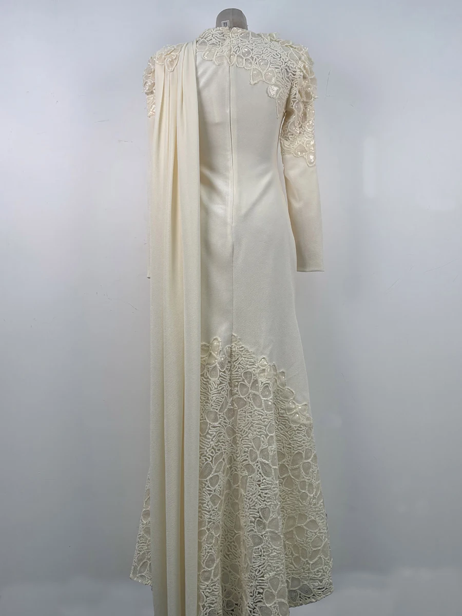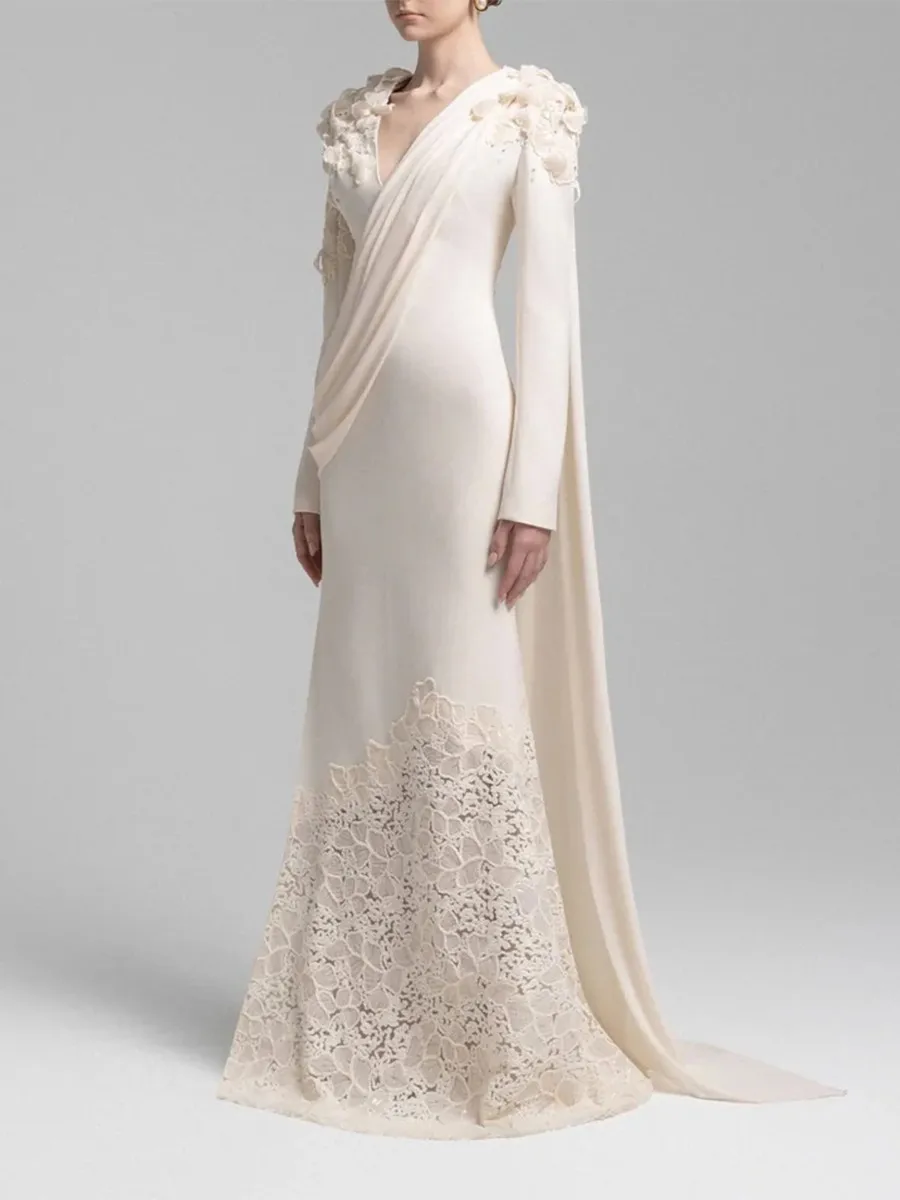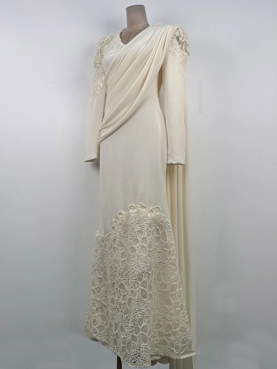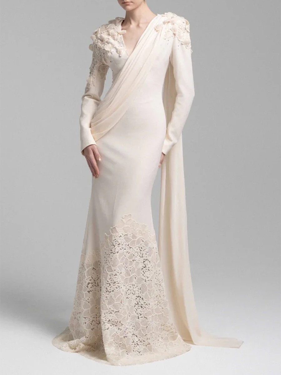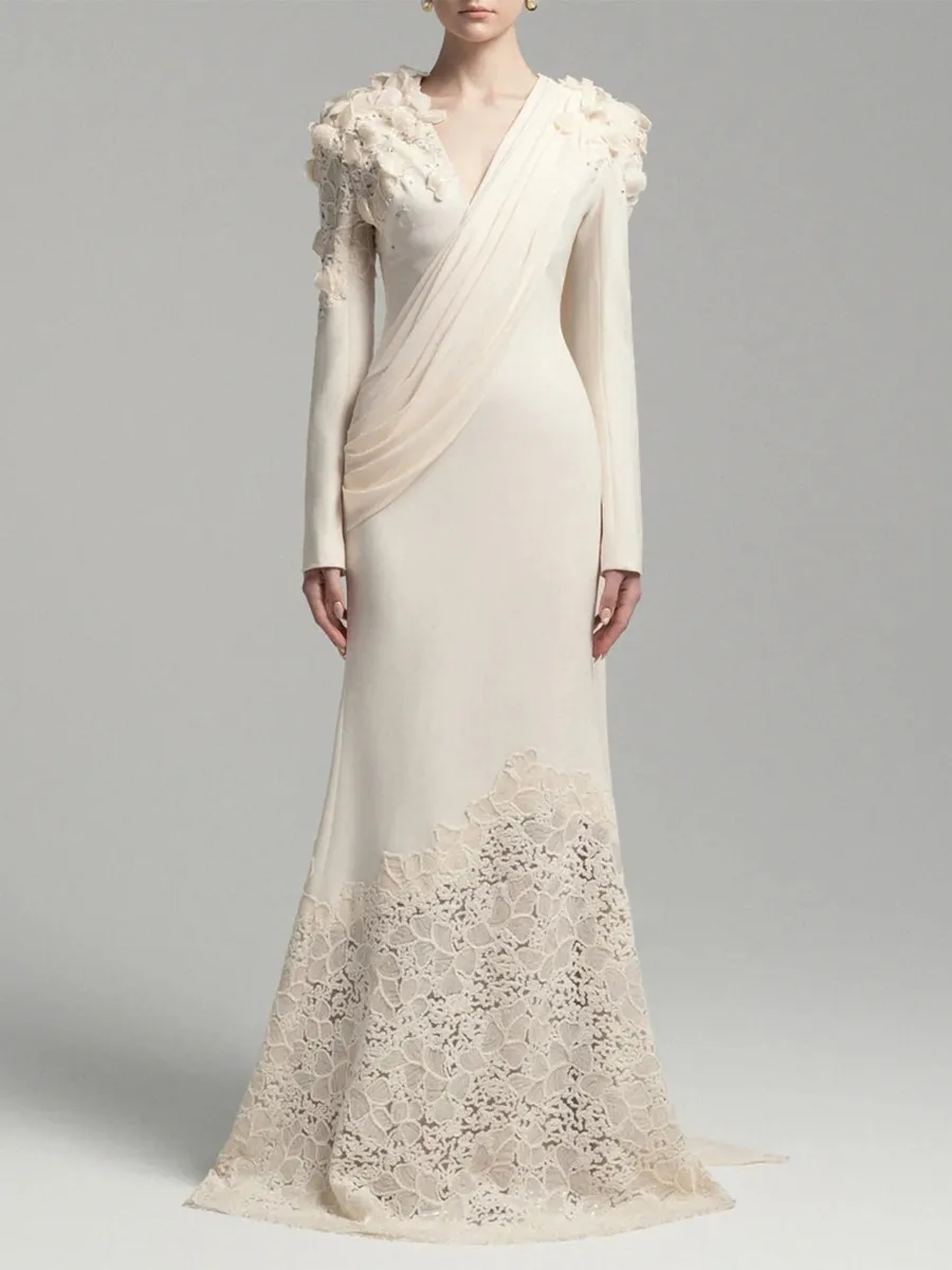 TWOTWINSTYLE Solid Spliced Sequins Temperament Dresses for Women V Neck Long Sleeves Tunic Patchwork Folds Dress Female Clothing