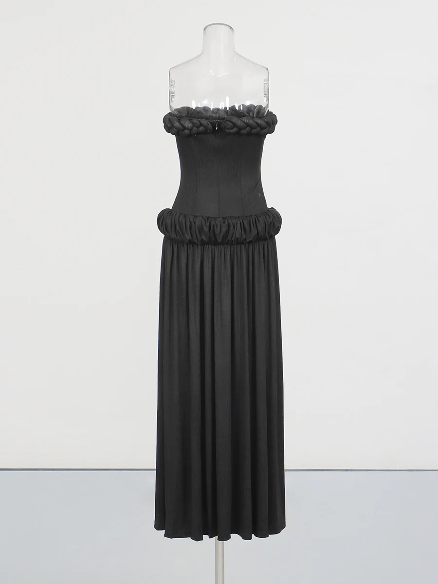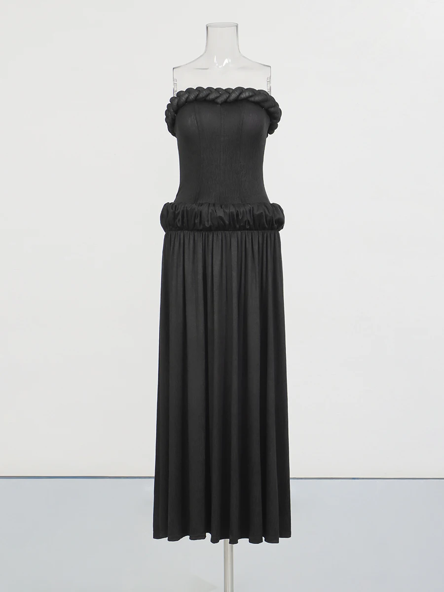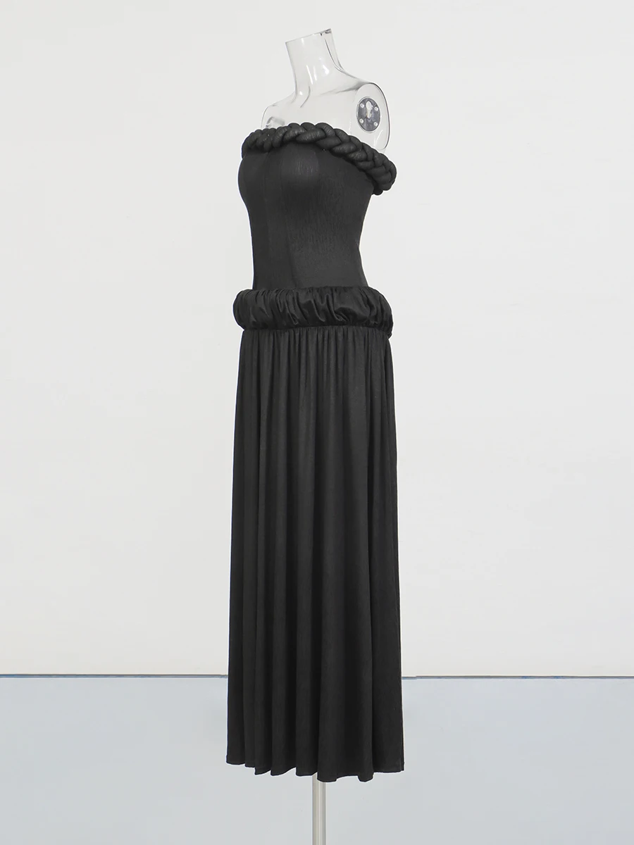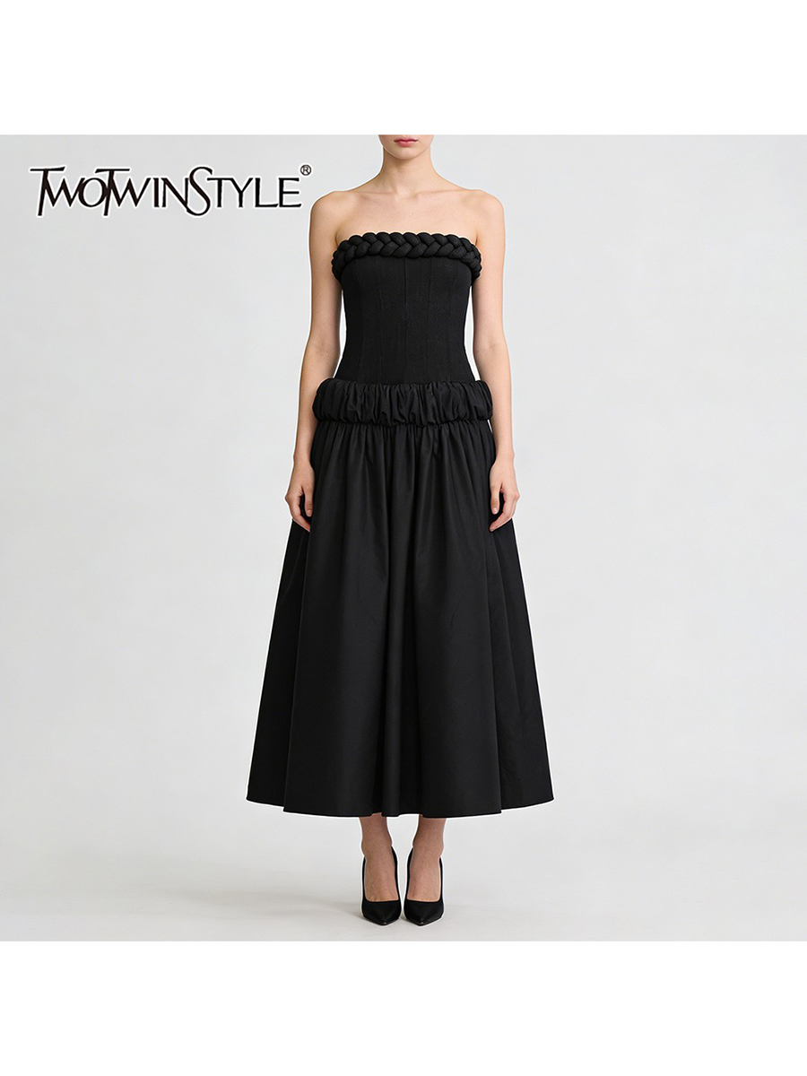 TWOTWINSTYLE Solid Spliced Shirring Minimalist Dresses for Women Slash Neck Sleeveless Patchwork 3D Decoration Dress Female New