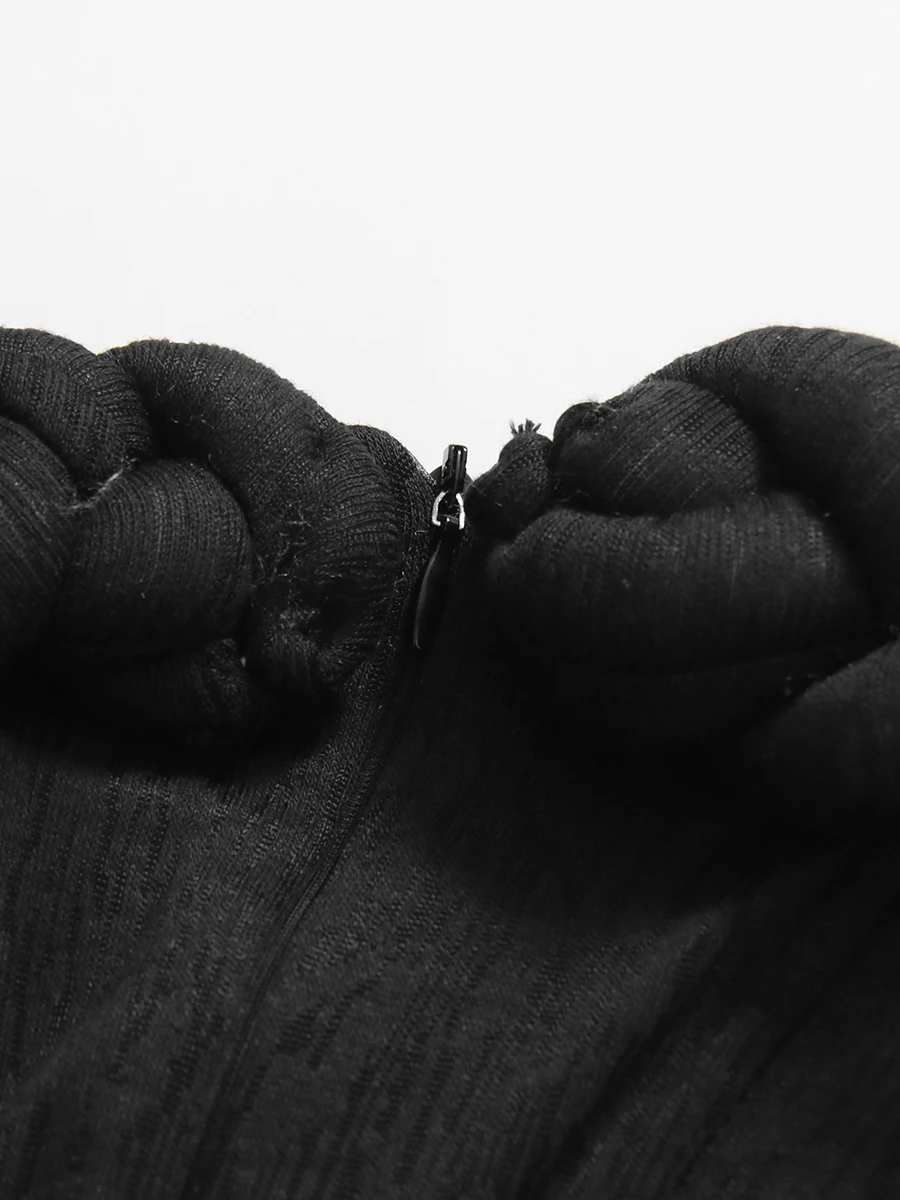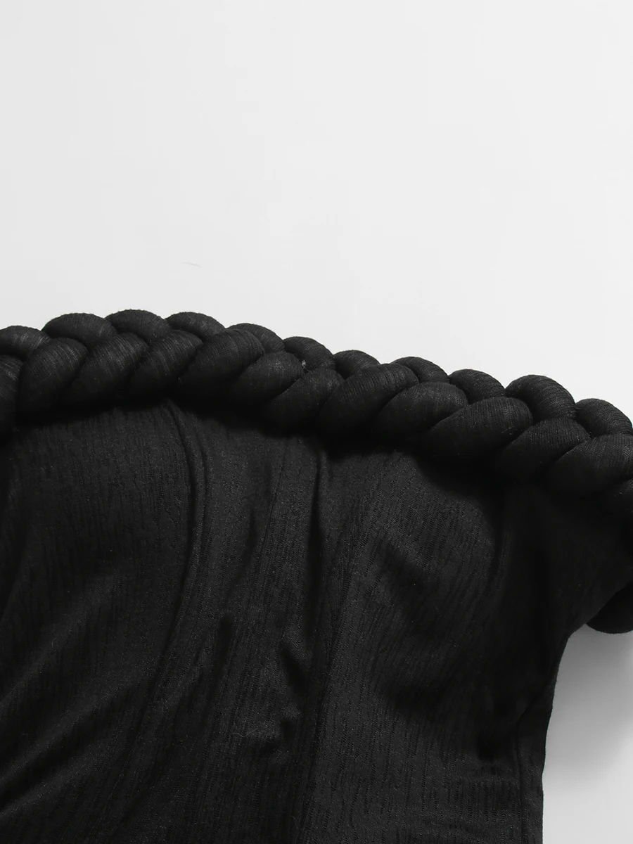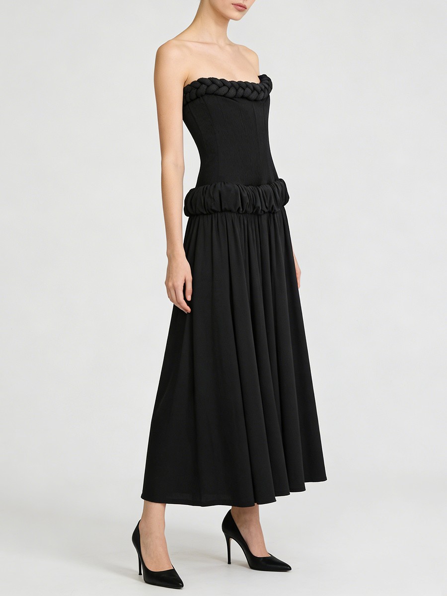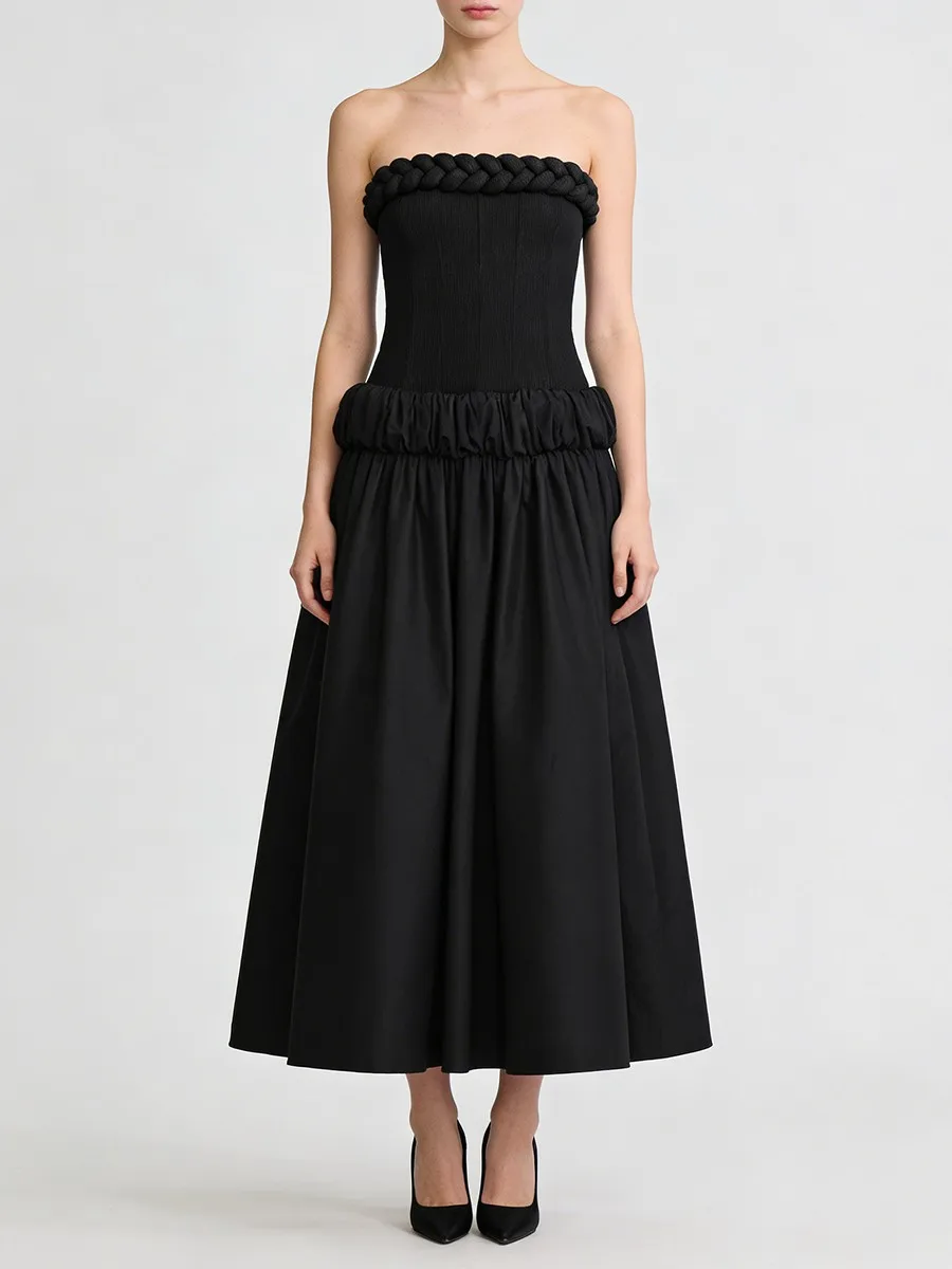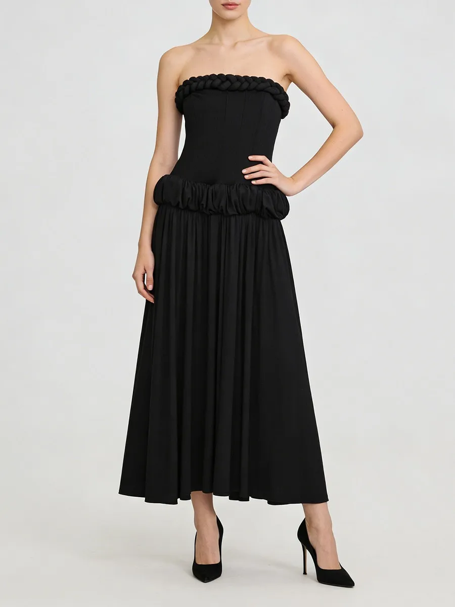 TWOTWINSTYLE Solid Spliced Shirring Minimalist Dresses for Women Slash Neck Sleeveless Patchwork 3D Decoration Dress Female New