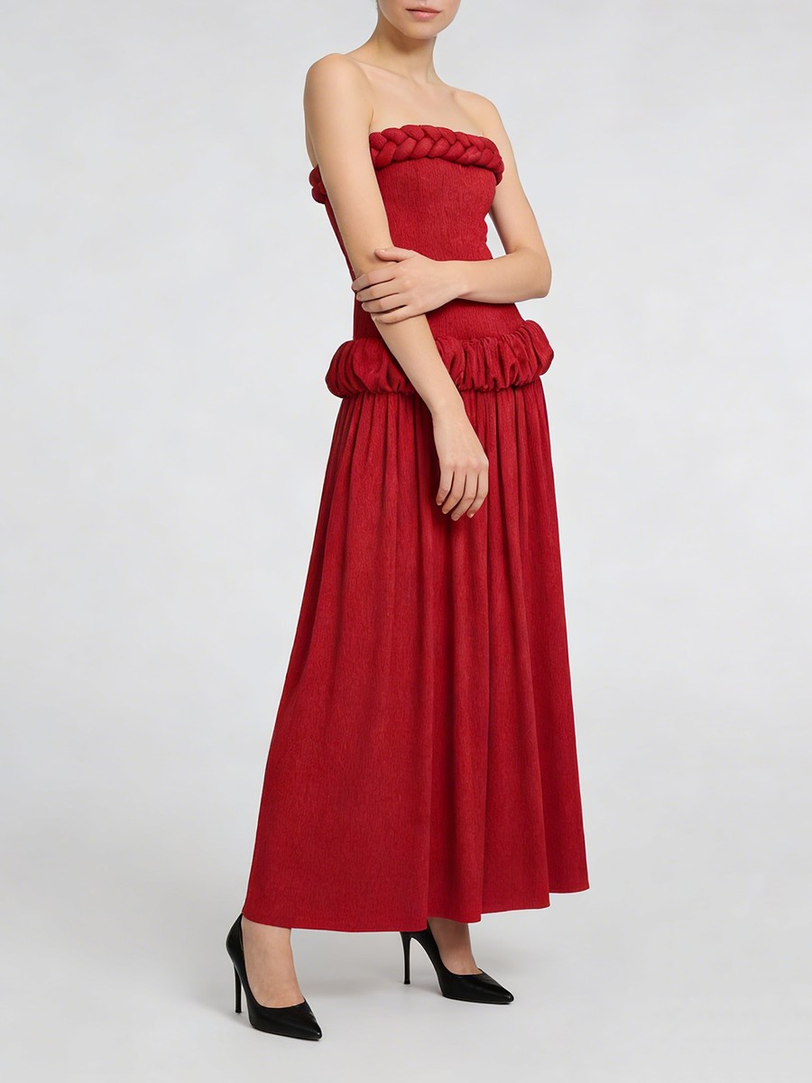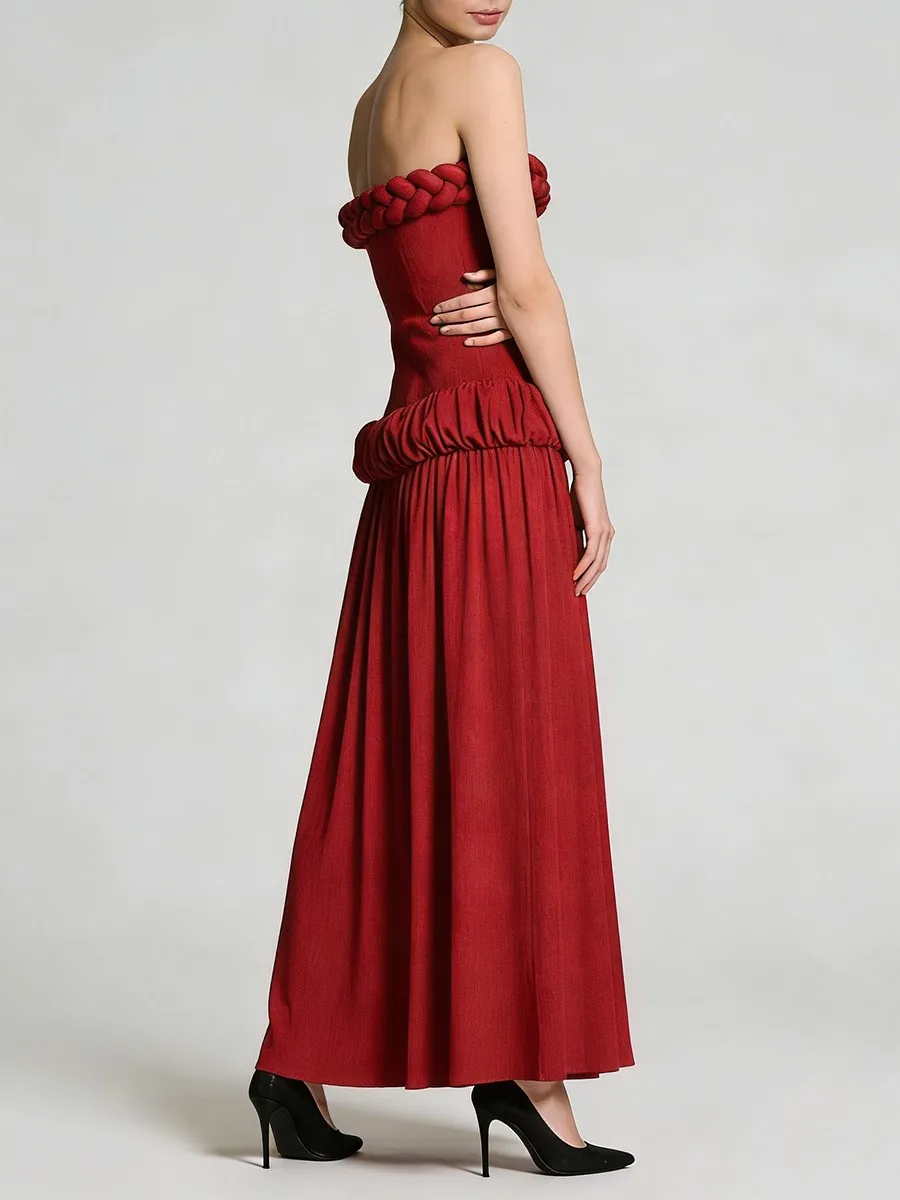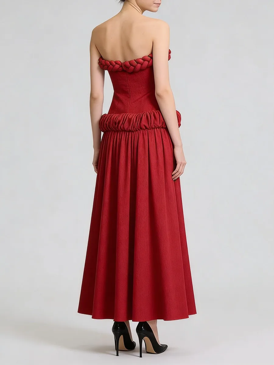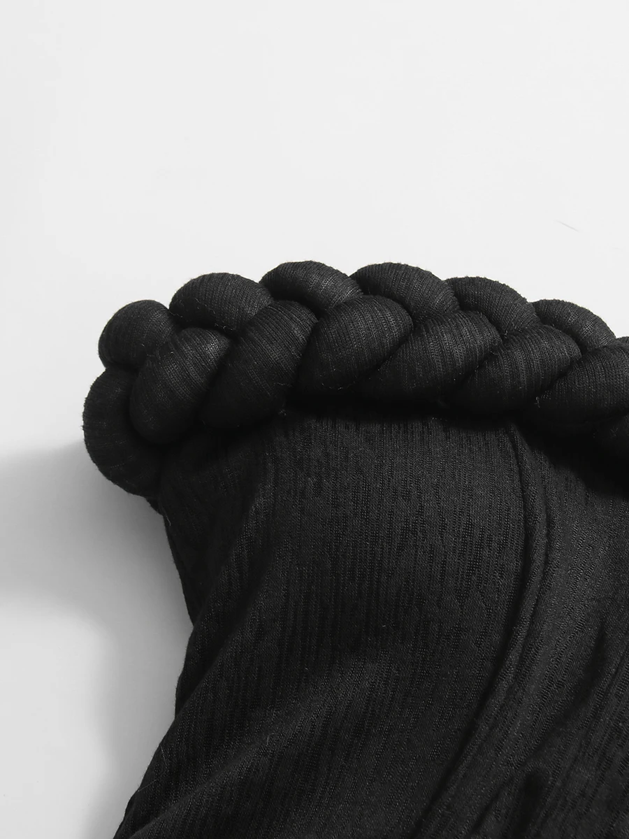 TWOTWINSTYLE Solid Spliced Shirring Minimalist Dresses for Women Slash Neck Sleeveless Patchwork 3D Decoration Dress Female New