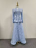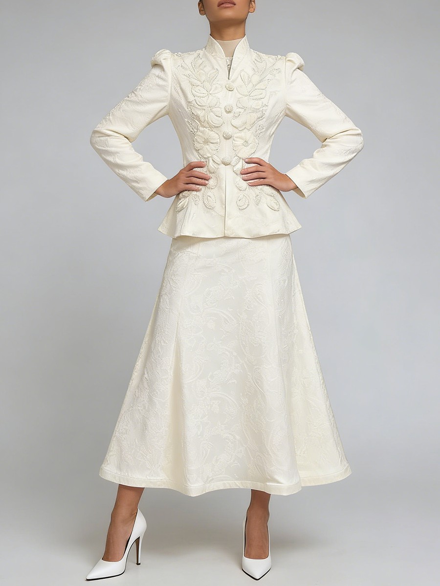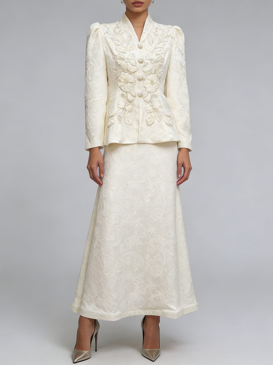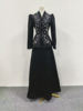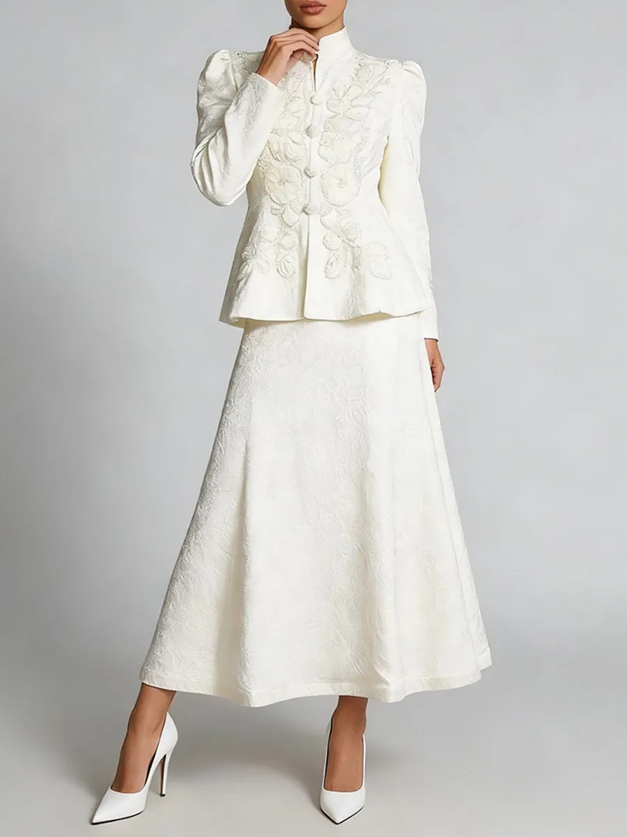 TWOTWINSTYLE Solid Temperament Two Piece Sets for Women V Neck Long Sleeves Spliced Appliques Top High Waist Skirt Set Female