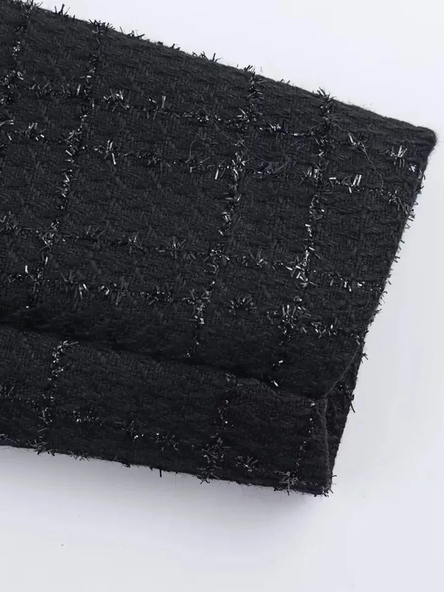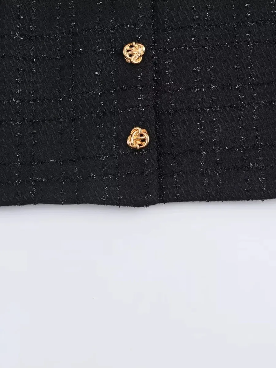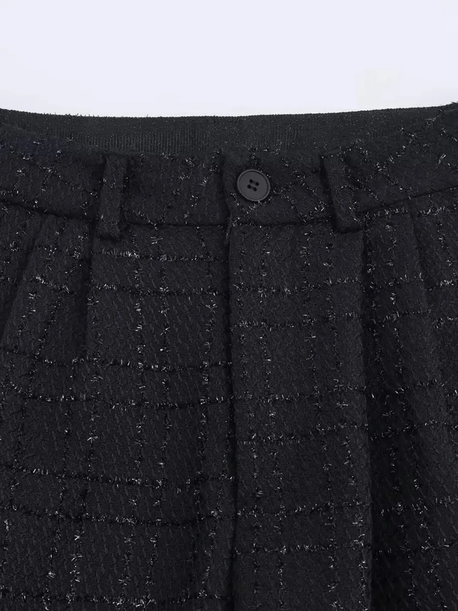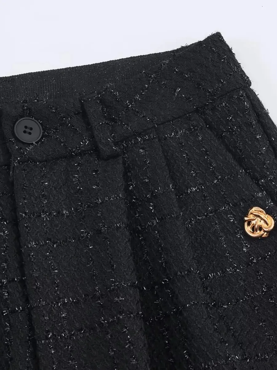 TWOTWINSTYLE Spliced Bright Silk Two Piece Set for Women O Neck Long Sleeves Patchwork Buttons Top High Waist Pant Sets Female