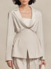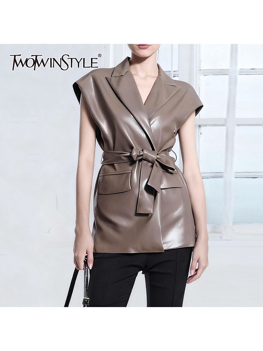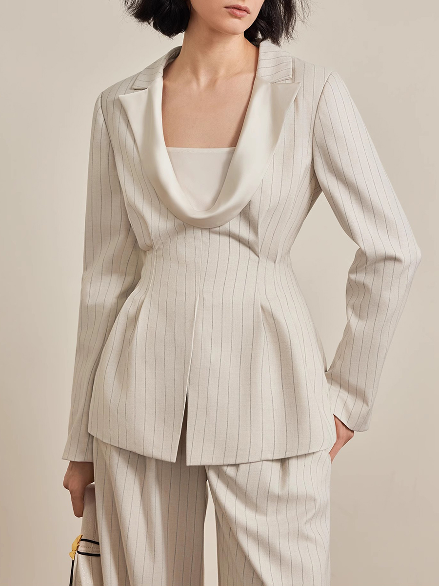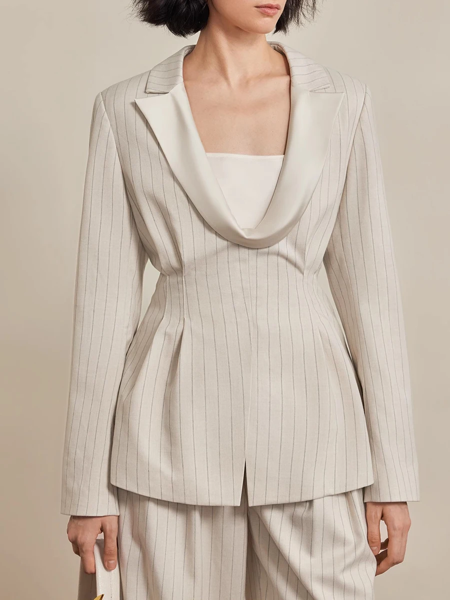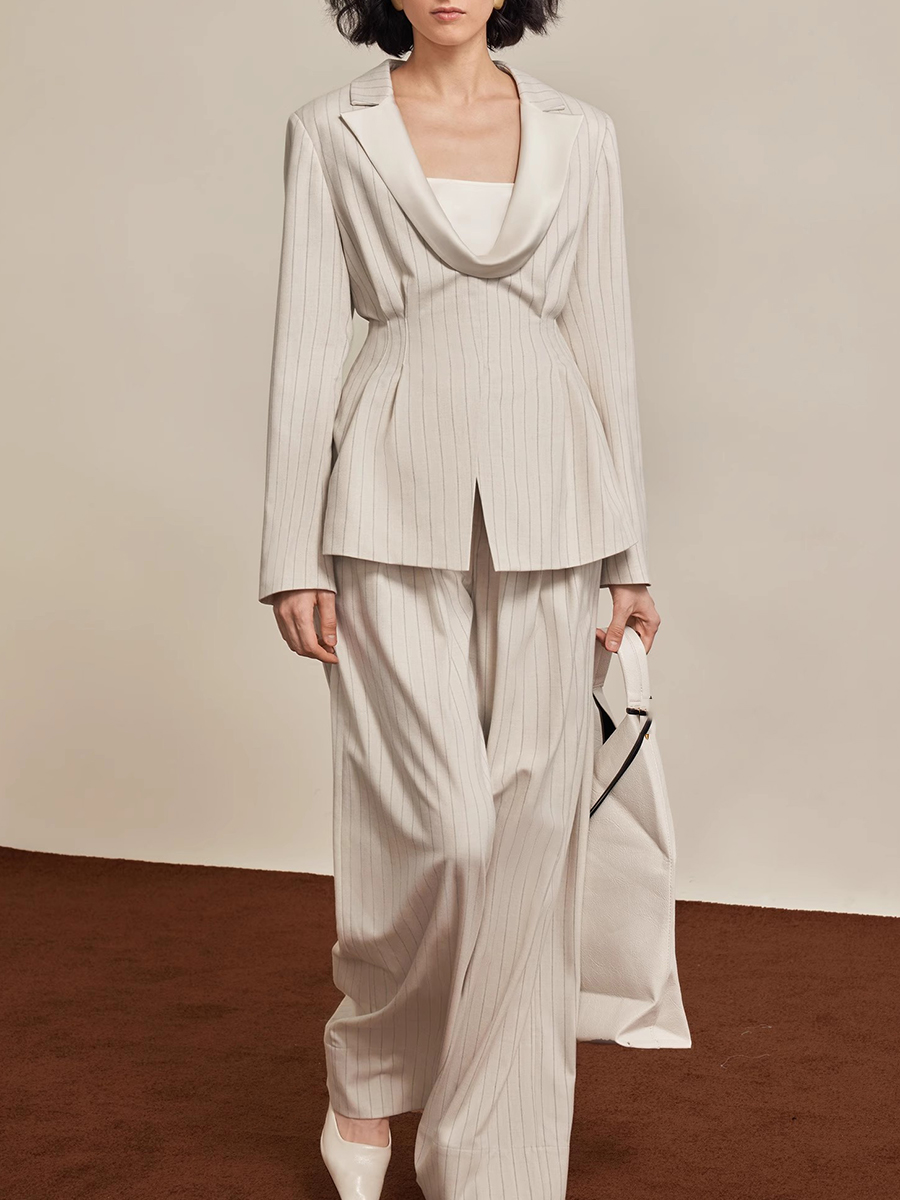 TWOTWINSTYLE Striped Two Piece Sets for Women Lapel Long Sleeves Tunic Patchwork Zipper Top High Waist Wide Leg Pant Set Female