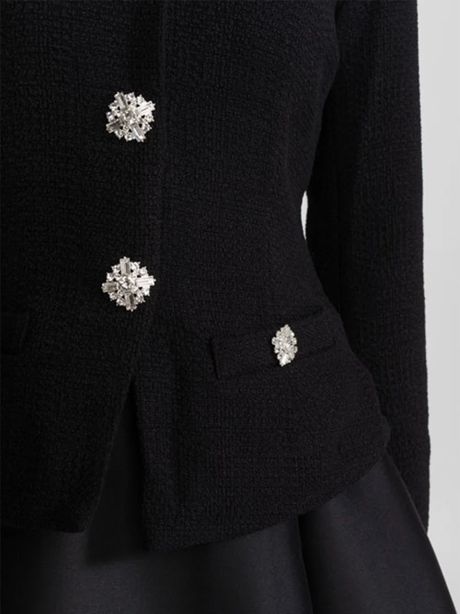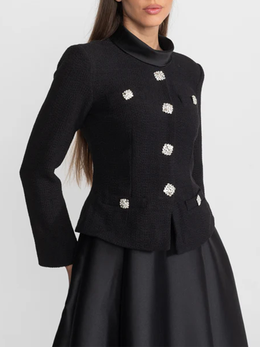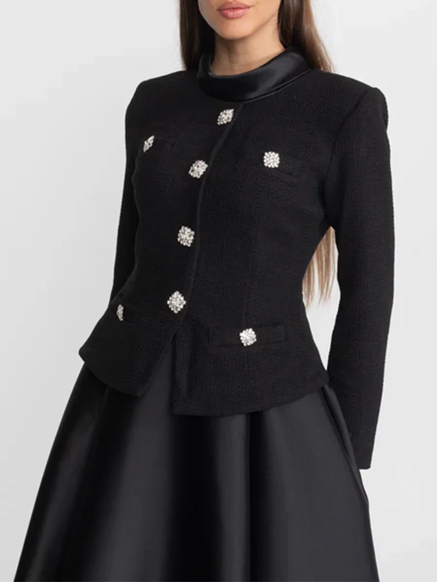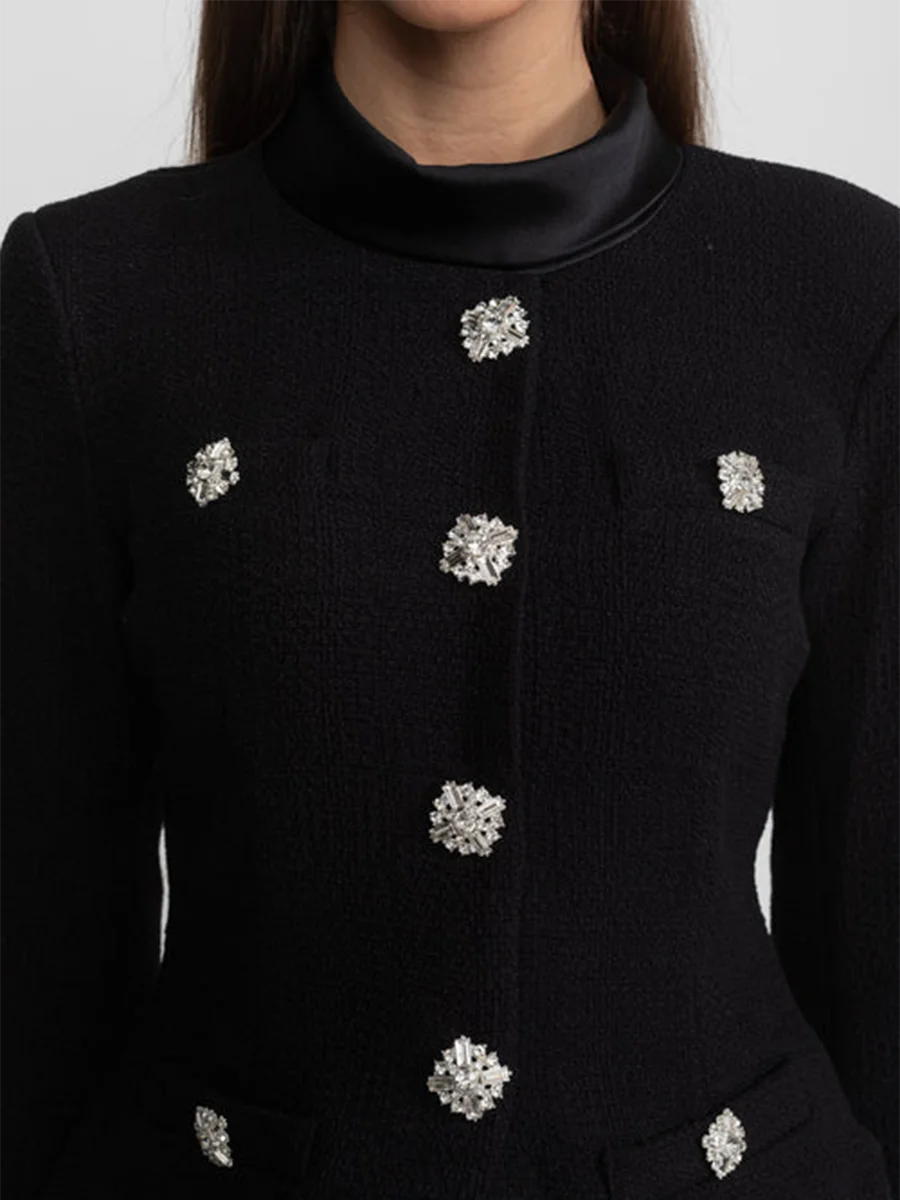 TWOTWINSTYLE Temperament Patchwork Diamond Button Dress for Women Stand Collar Long Sleeve Elegant Black Dress Female Fashion