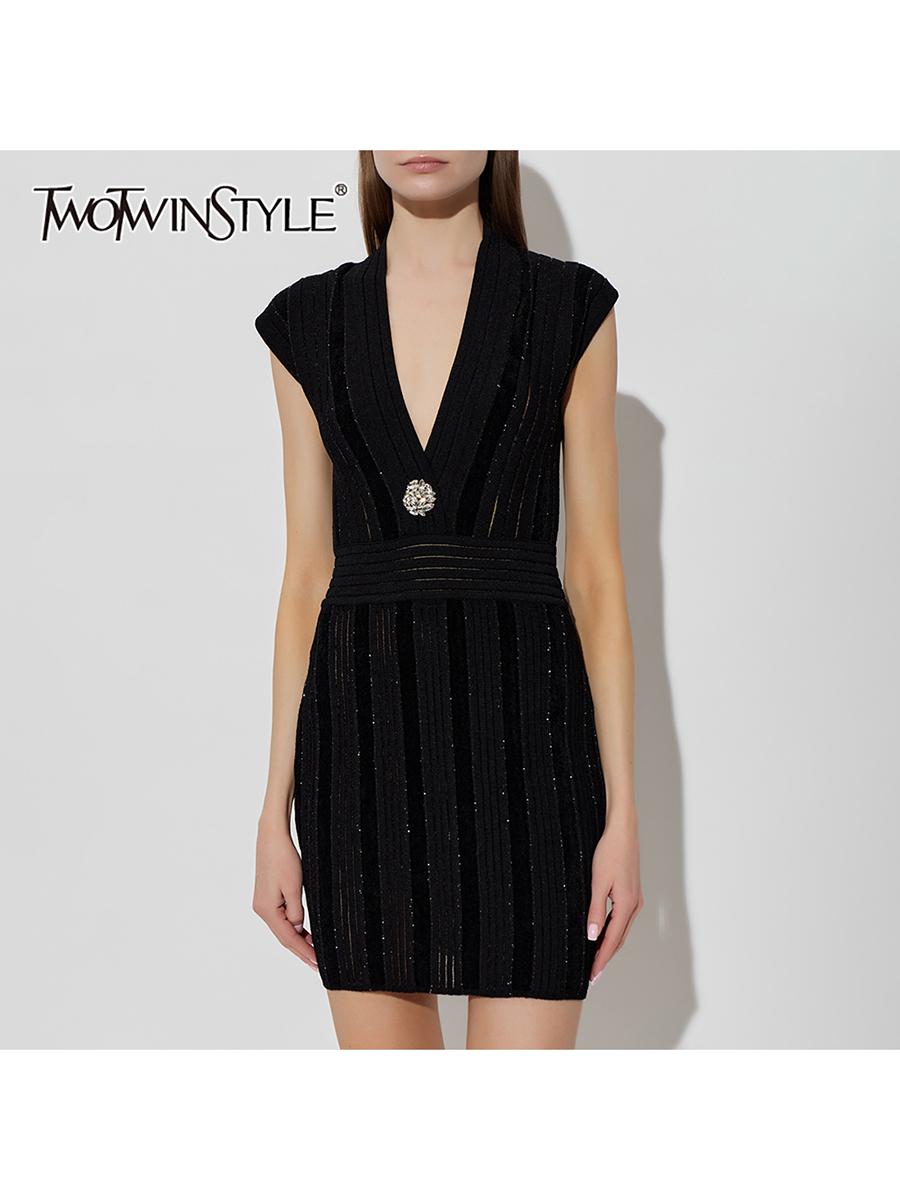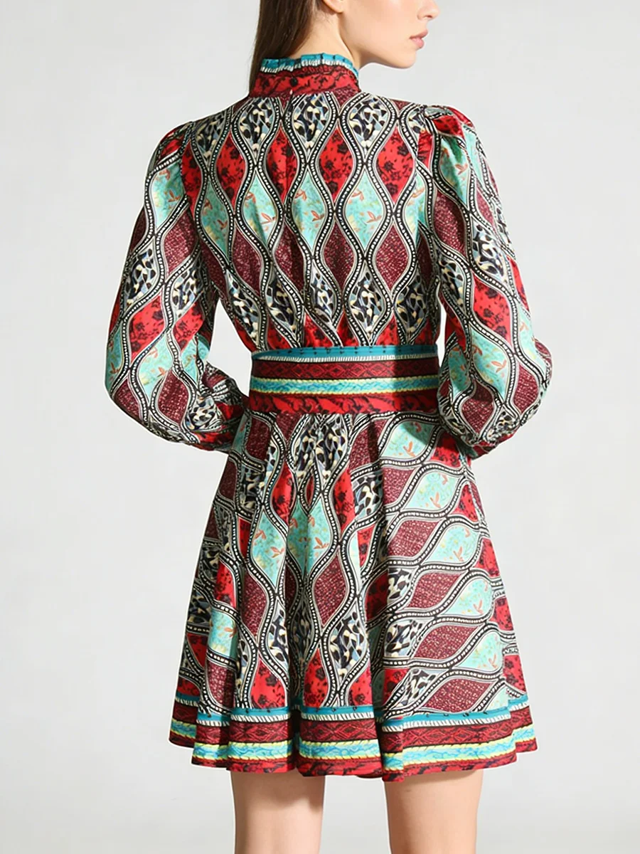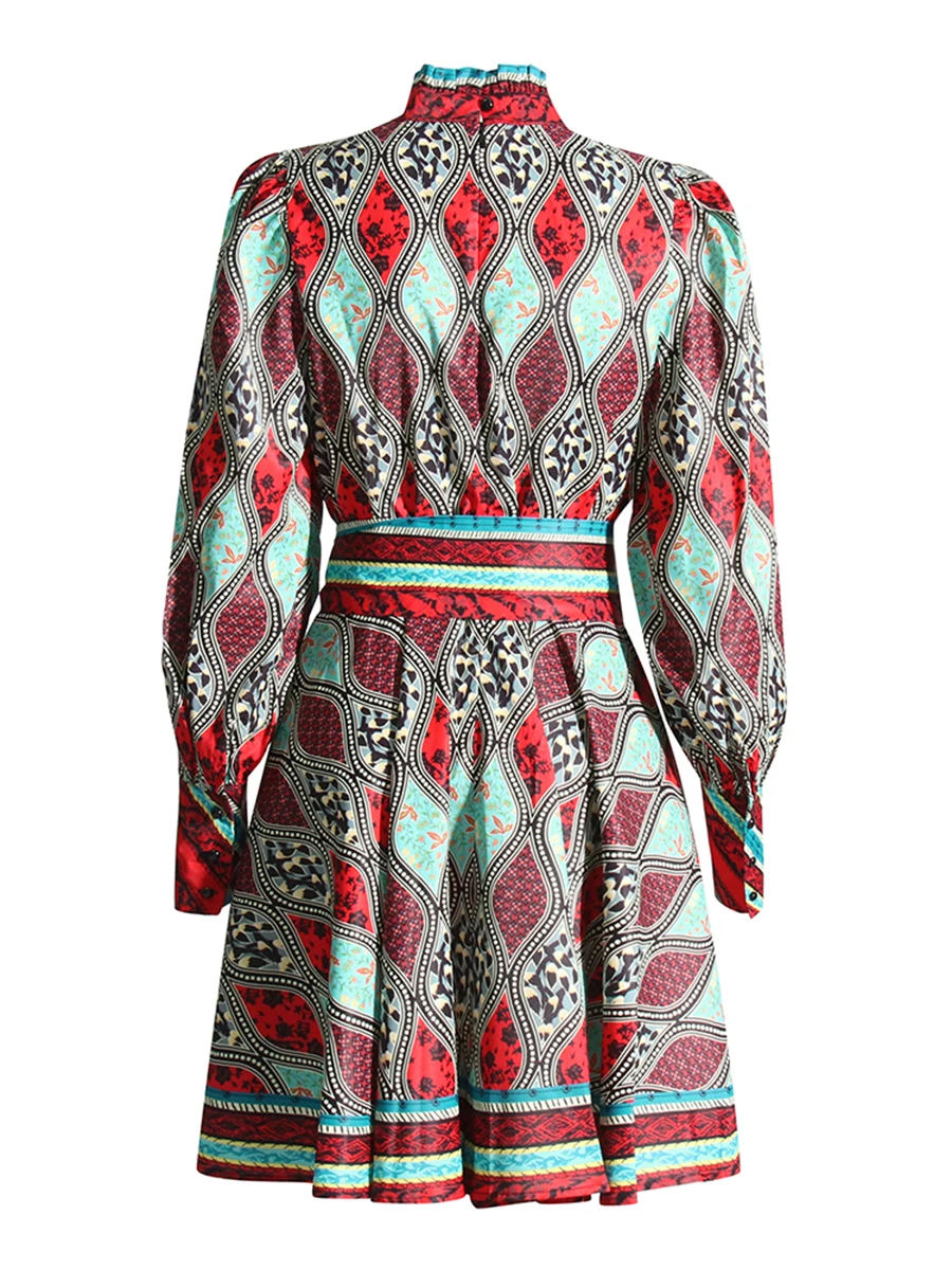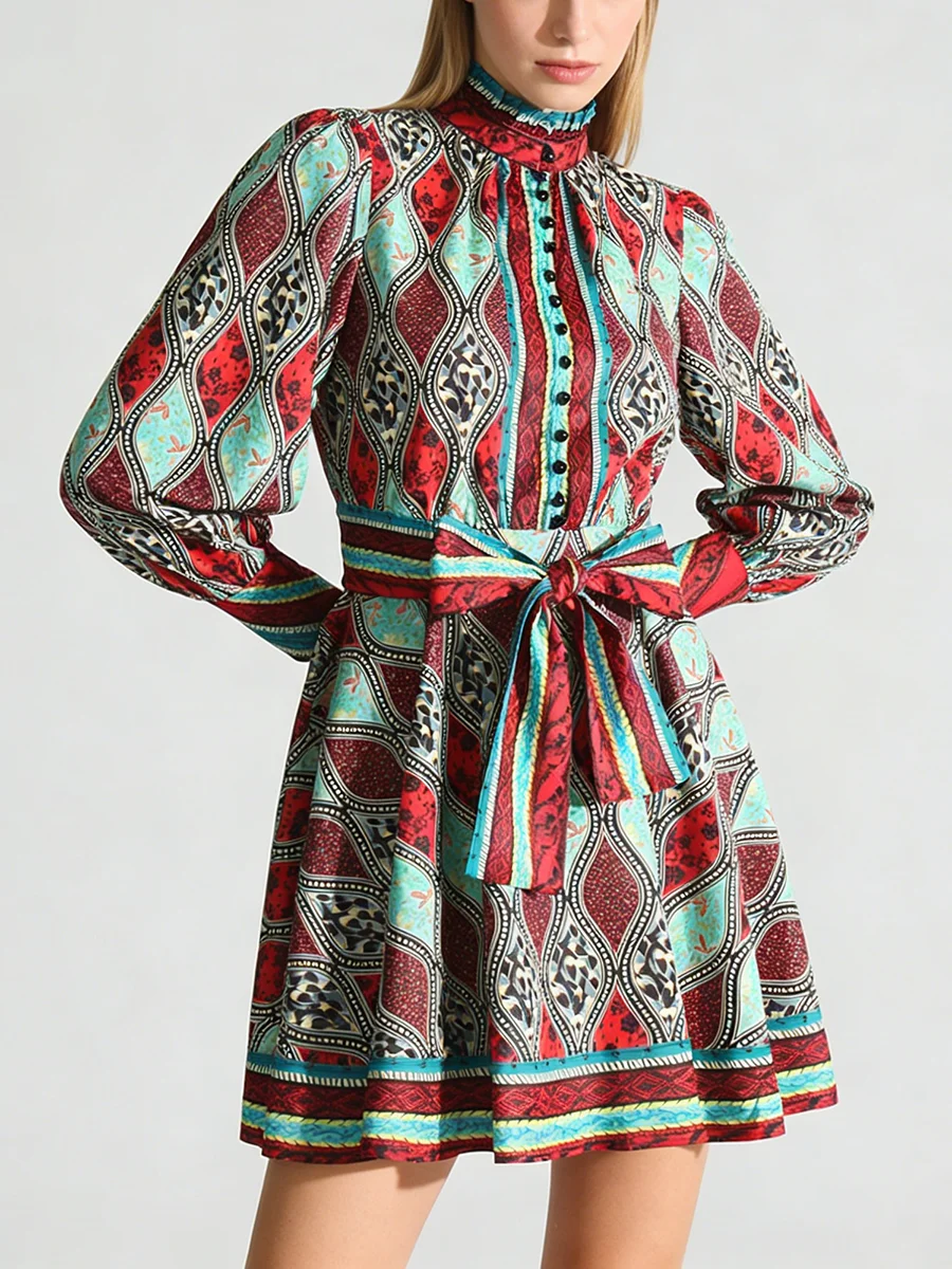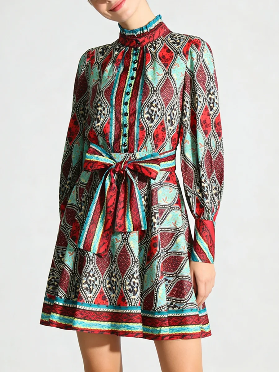 TWOTWINSTYLE Vintage Printing Spliced Bowknot Temperament Dress for Women High Neck Long Sleeve Patchwork Bottons Dresses Female