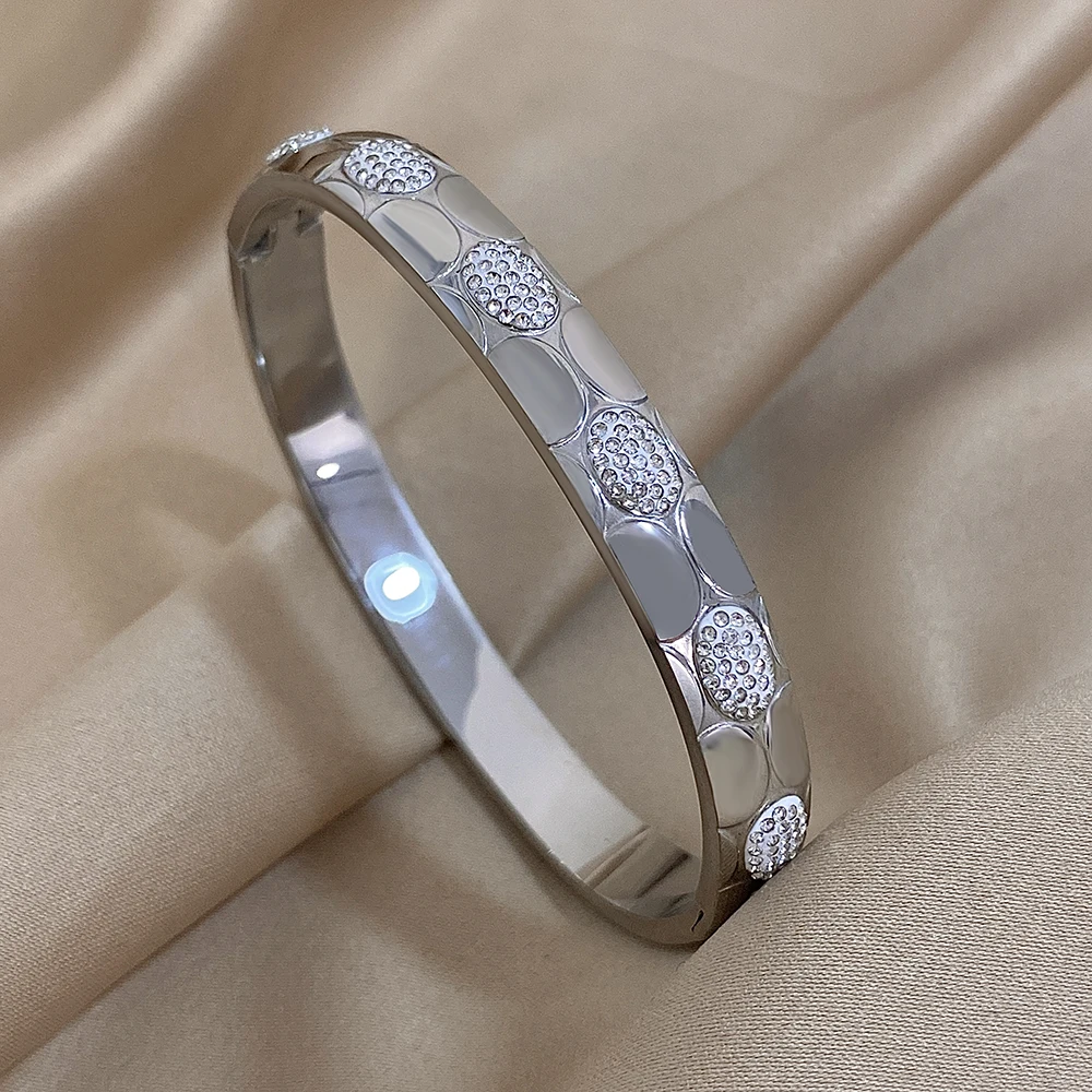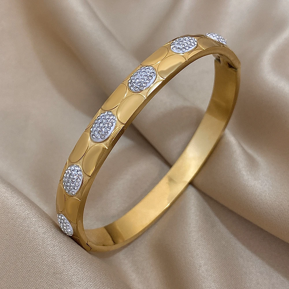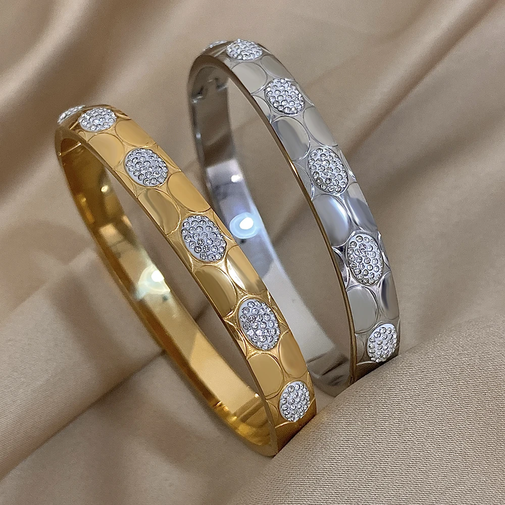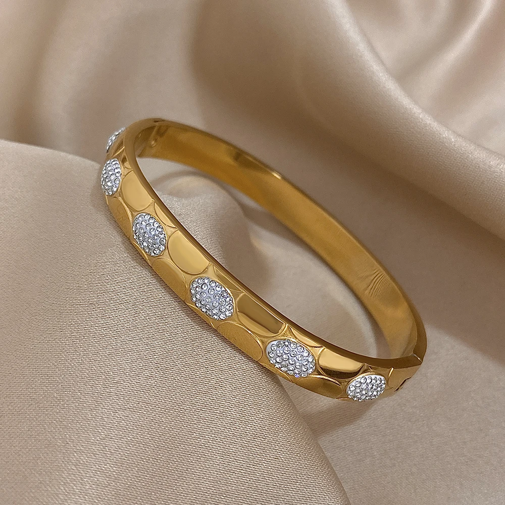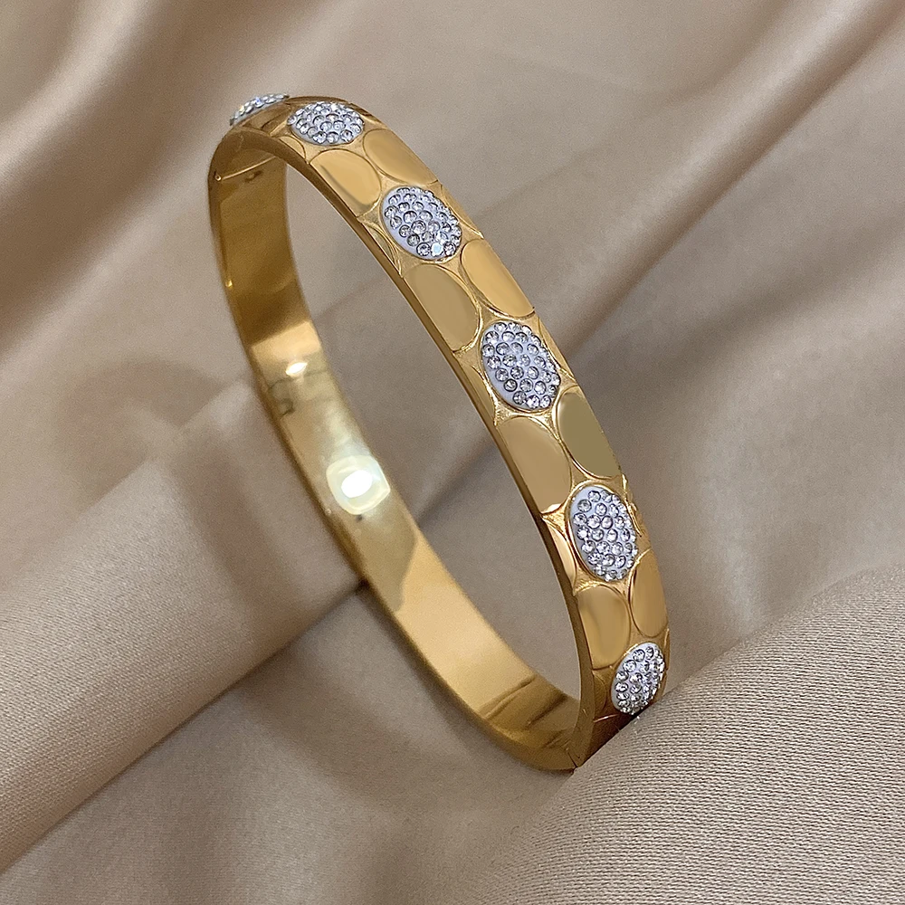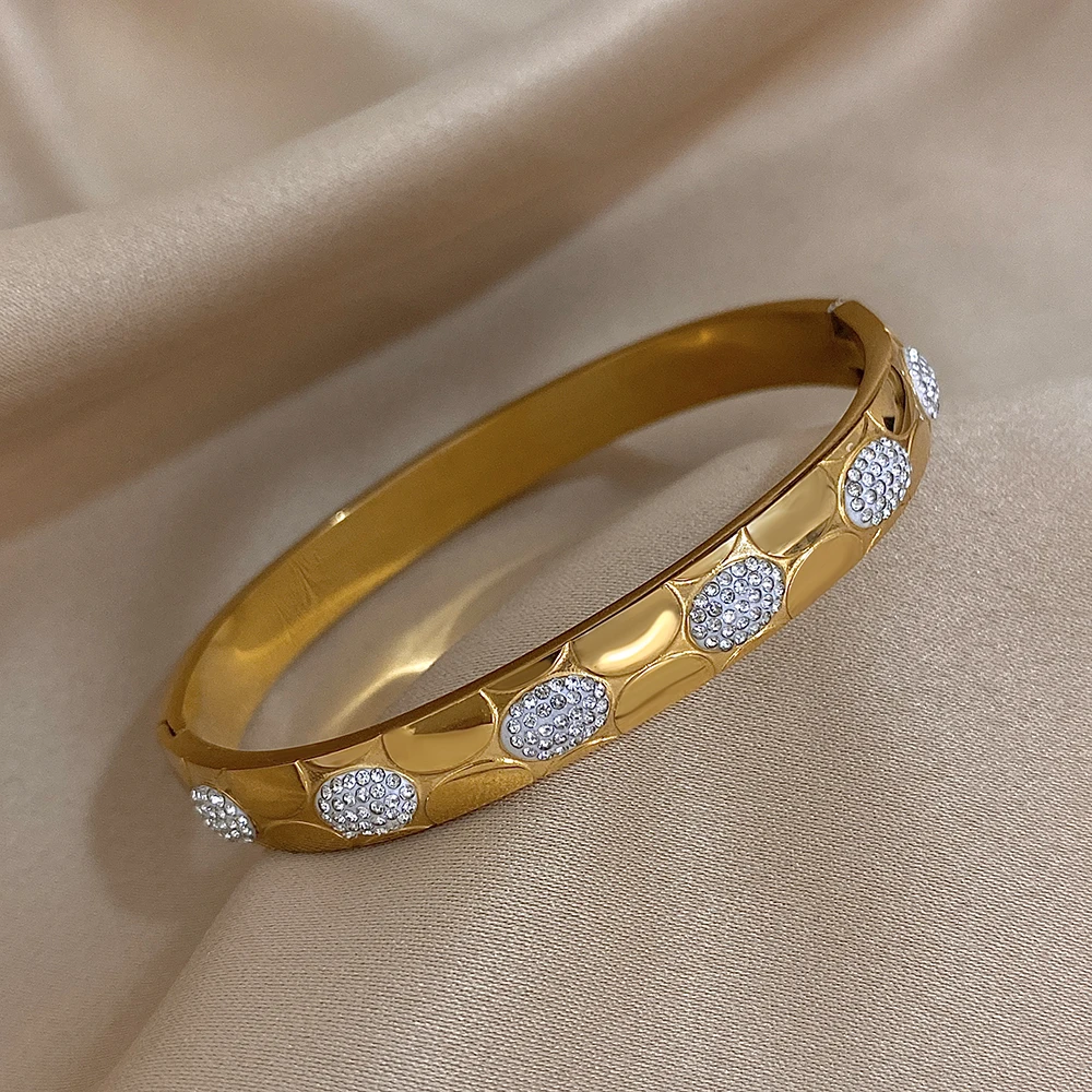 Unique Hollow Inlaid Rhinestone Stainless Steel Bangle Bracelet for Women Fashion Gold Silver Color Bracelets Waterproof Jewelry