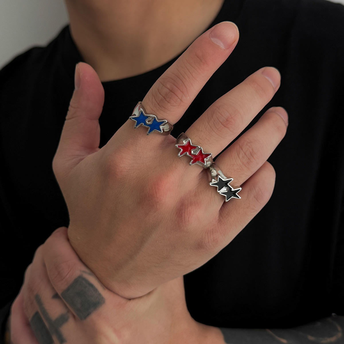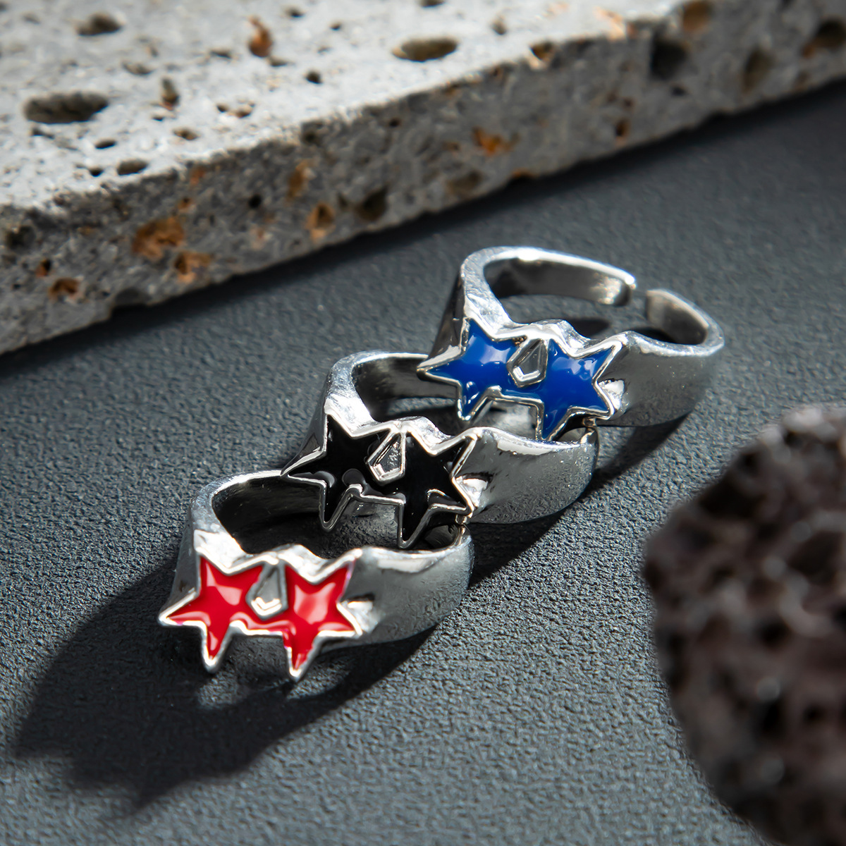 Vintage Black Drip Oil Pentagram Star Open Rings for Women Men Blue Red Hip Hop Rock Metal Star Adjustable Couple Ring Jewelry
