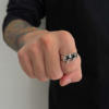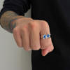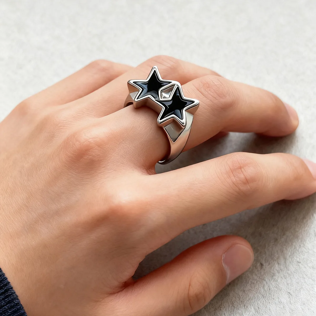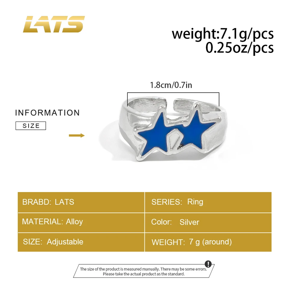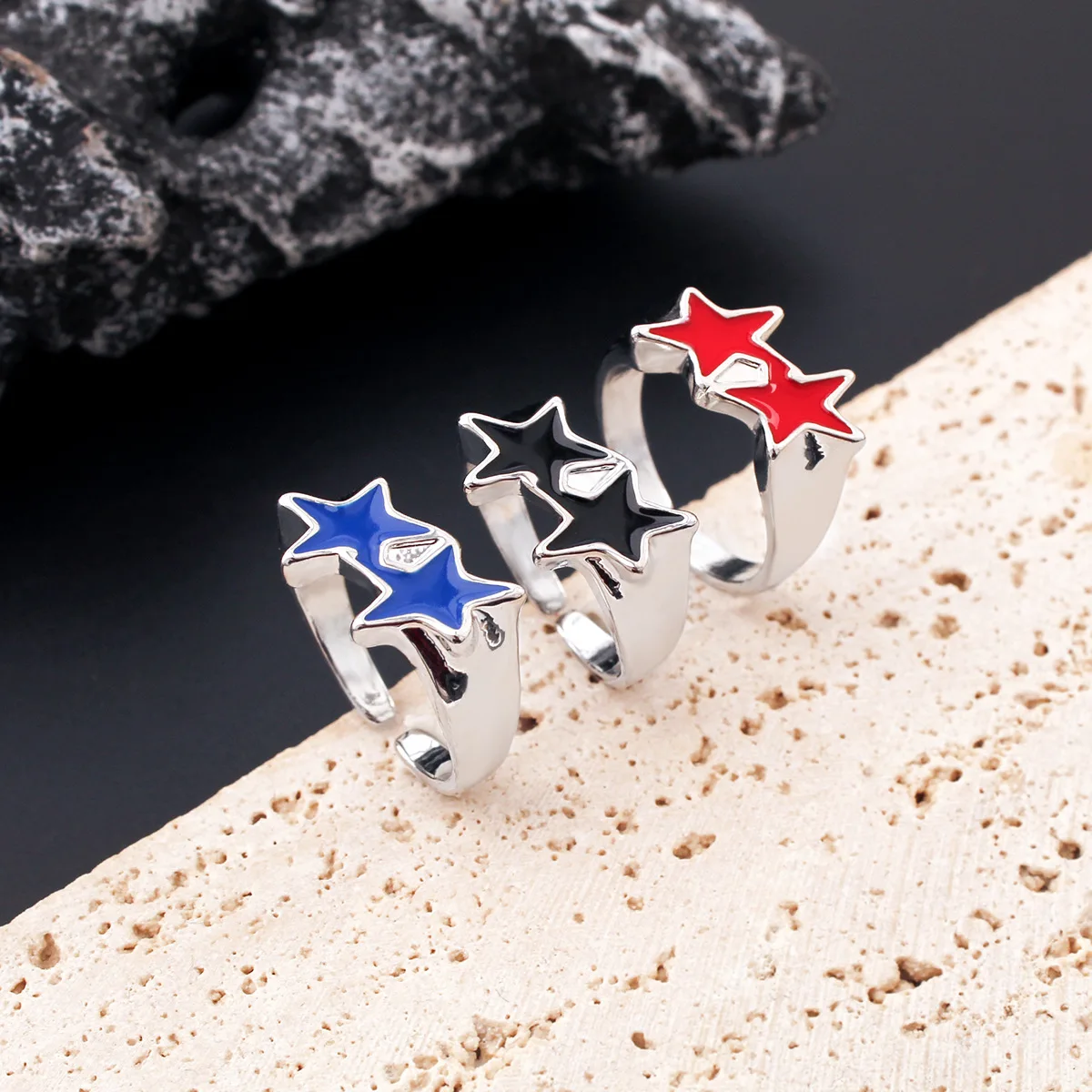 Vintage Black Drip Oil Pentagram Star Open Rings for Women Men Blue Red Hip Hop Rock Metal Star Adjustable Couple Ring Jewelry