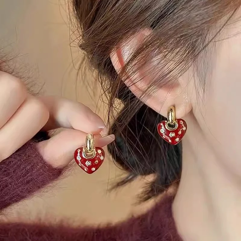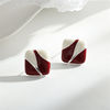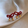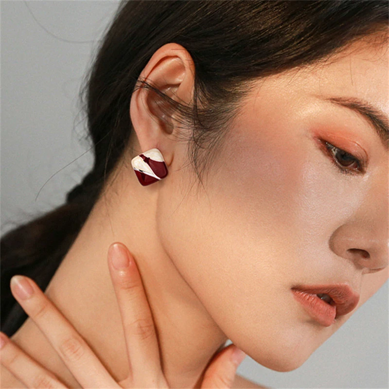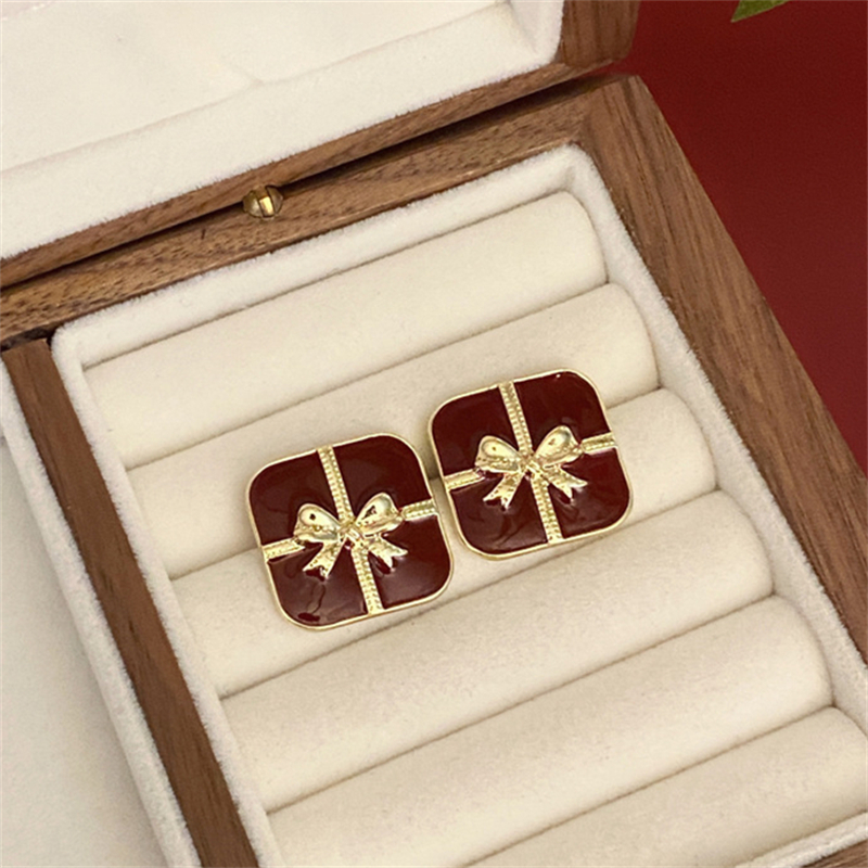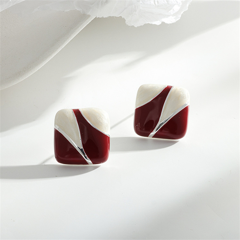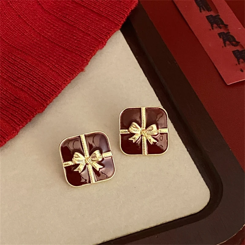 Vintage Dripping Oil Wine Red Retro Stud Earrings For Women Enamel Square Bowknot Geometric Earring Autumn Winter Ear Jewelry