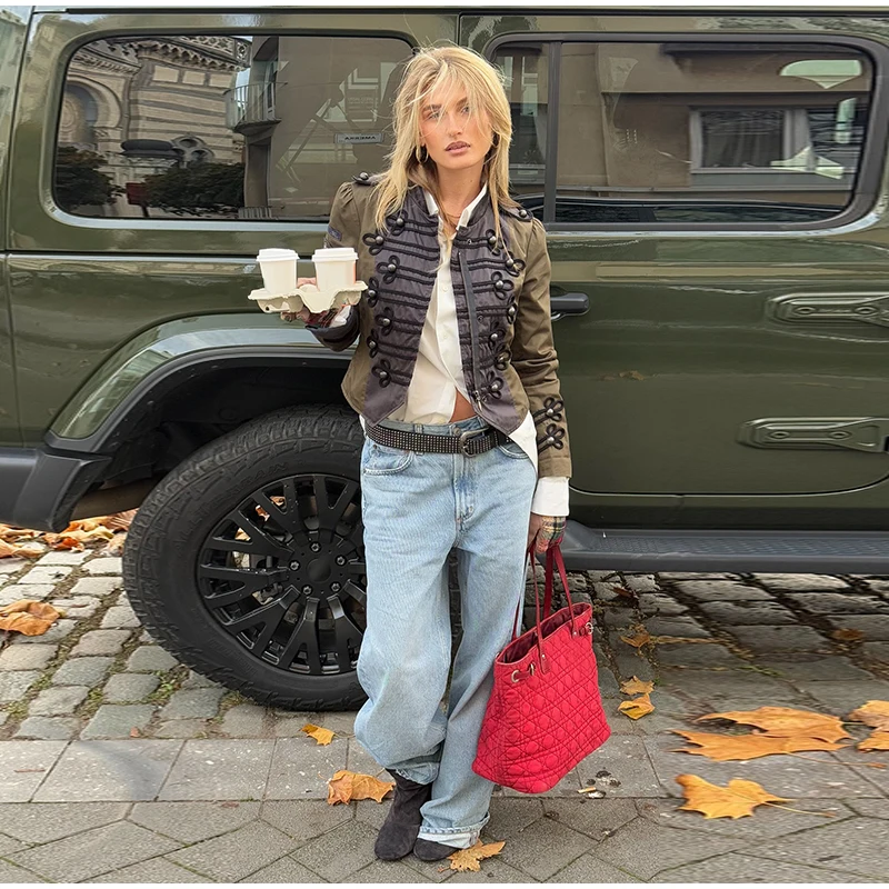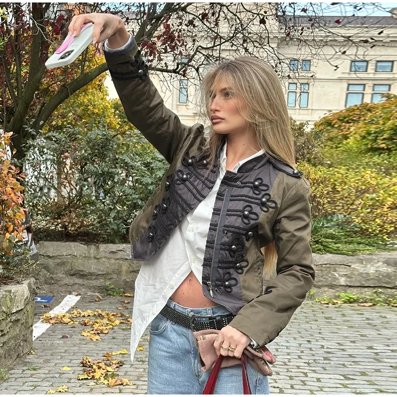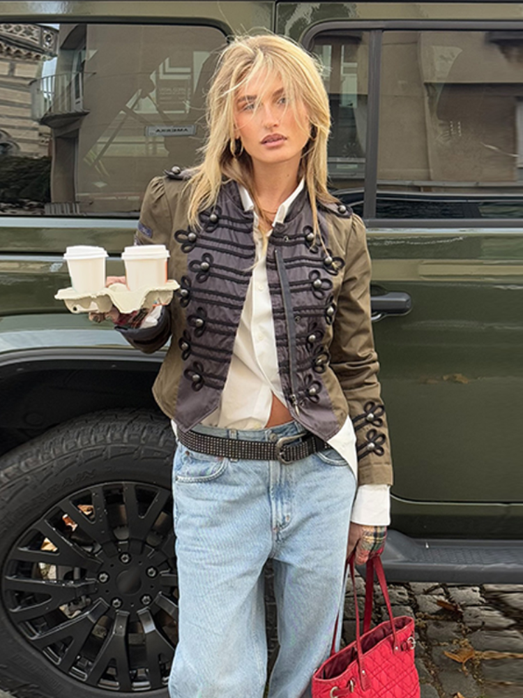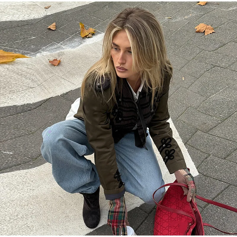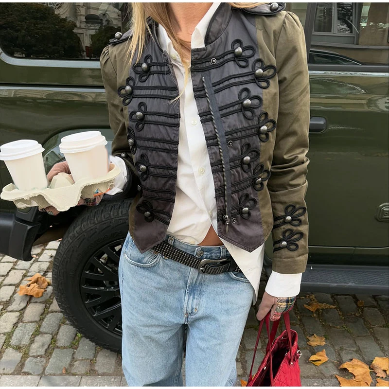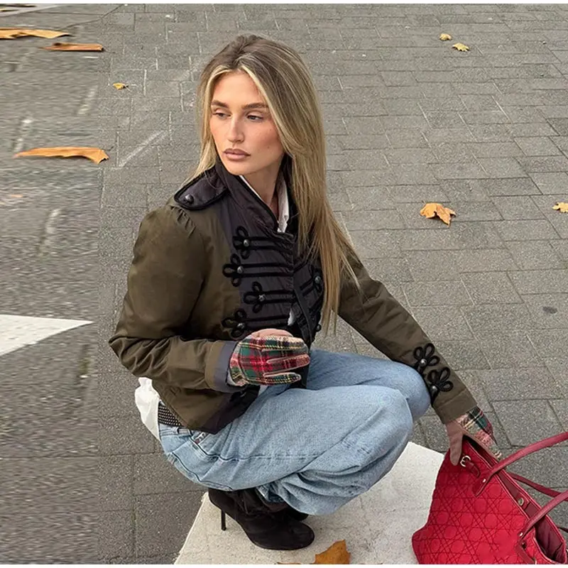 Vintage Frog Button Napoleon Jacket Women Stand Neck Zipper Patchwork Cropped Jackets Lady New Fashion Daily Street Outwear 2026