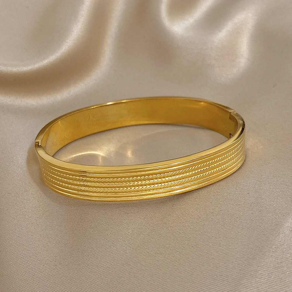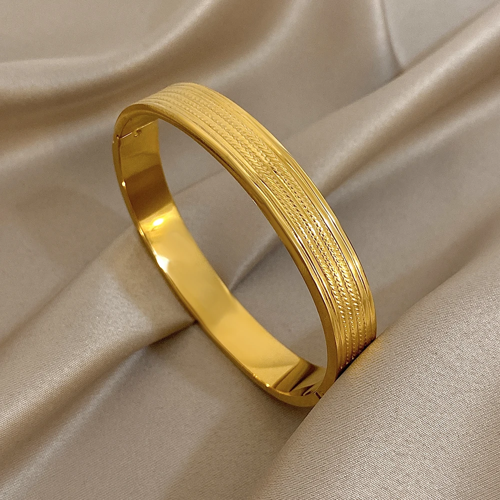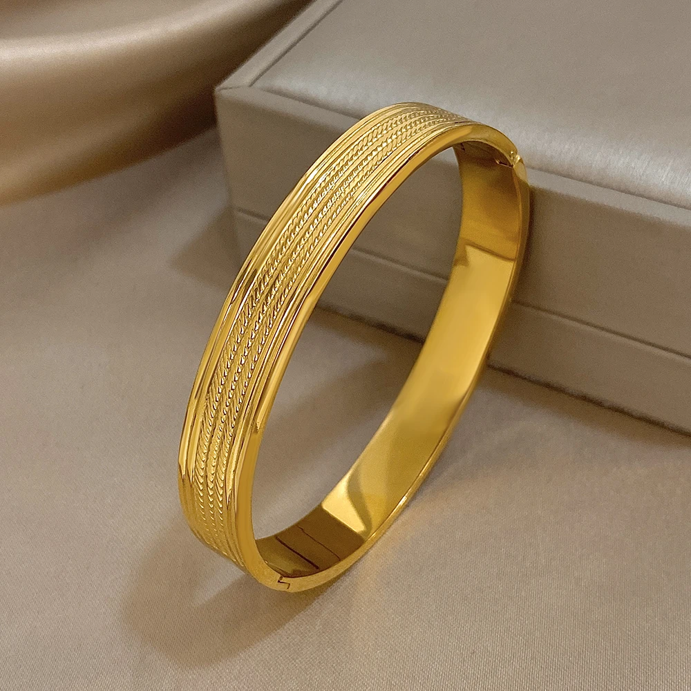 Vintage Geometric Textured Wide Bracelet Minimalist Gold Plated Stainless Steel Cuff Bangle Bracelets Waterproof Jewelry