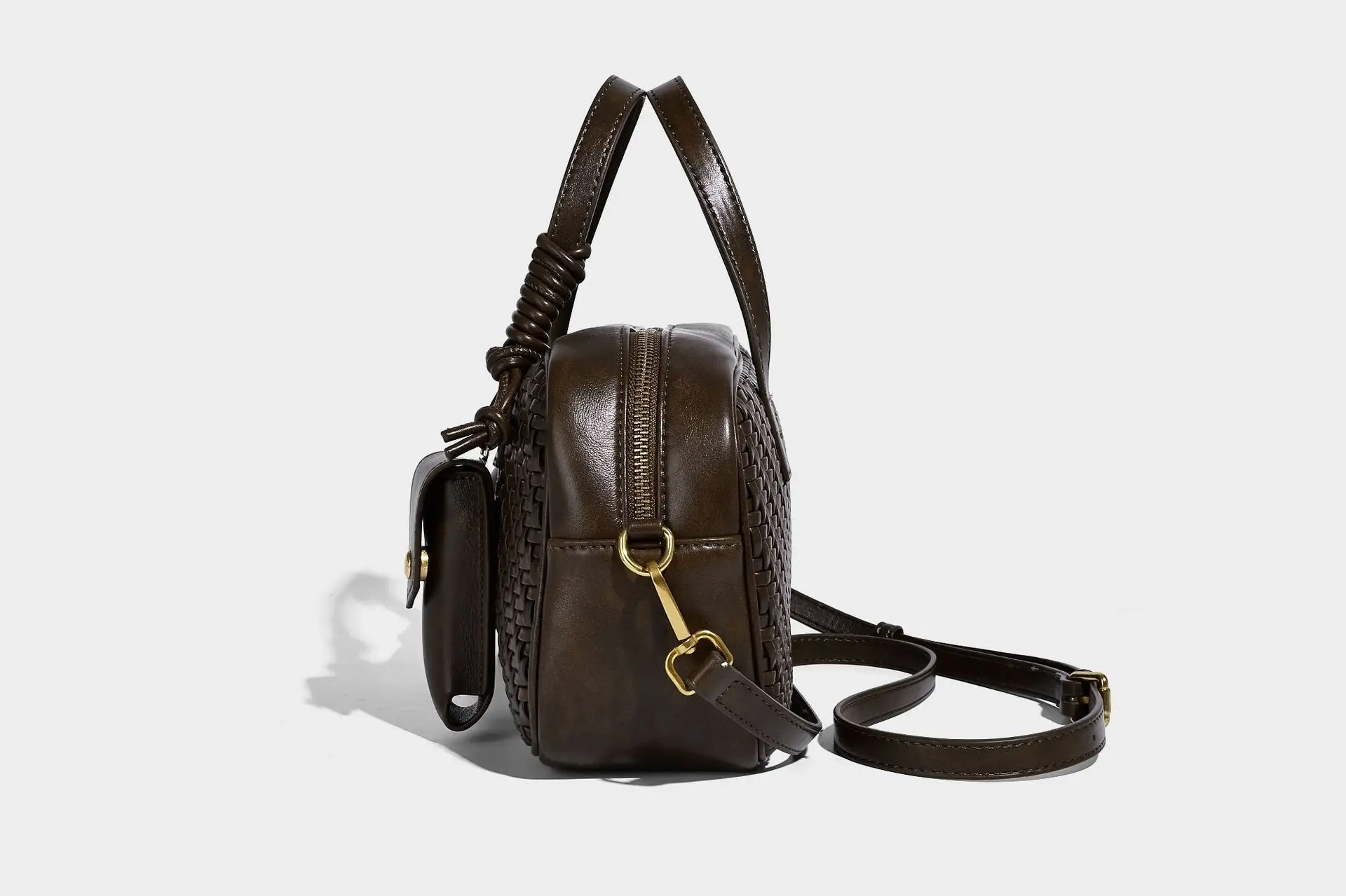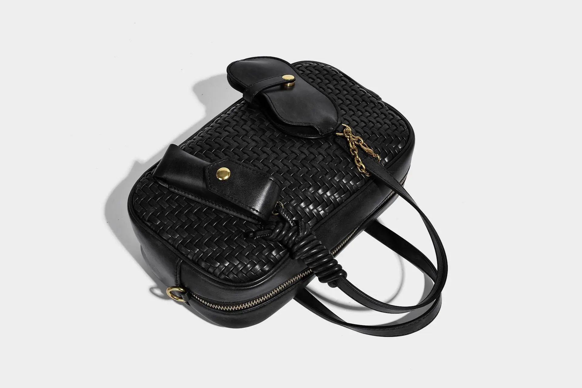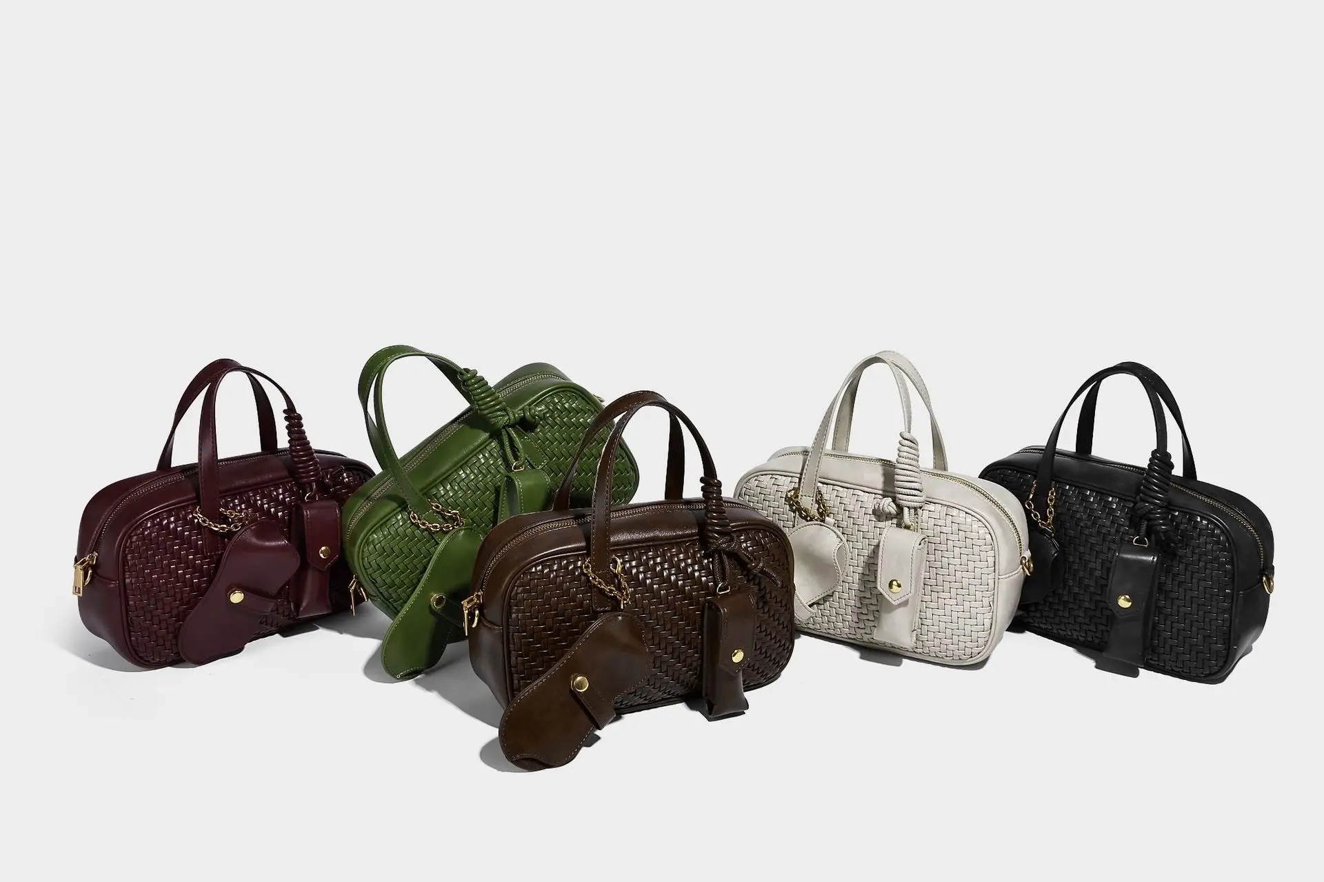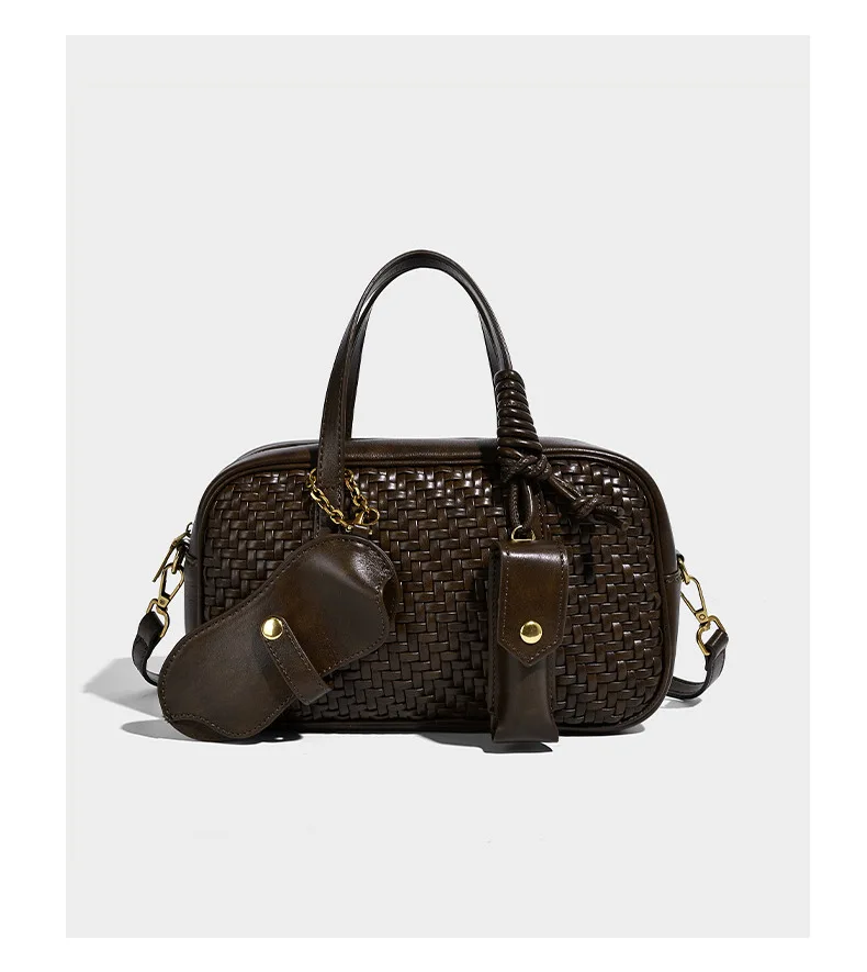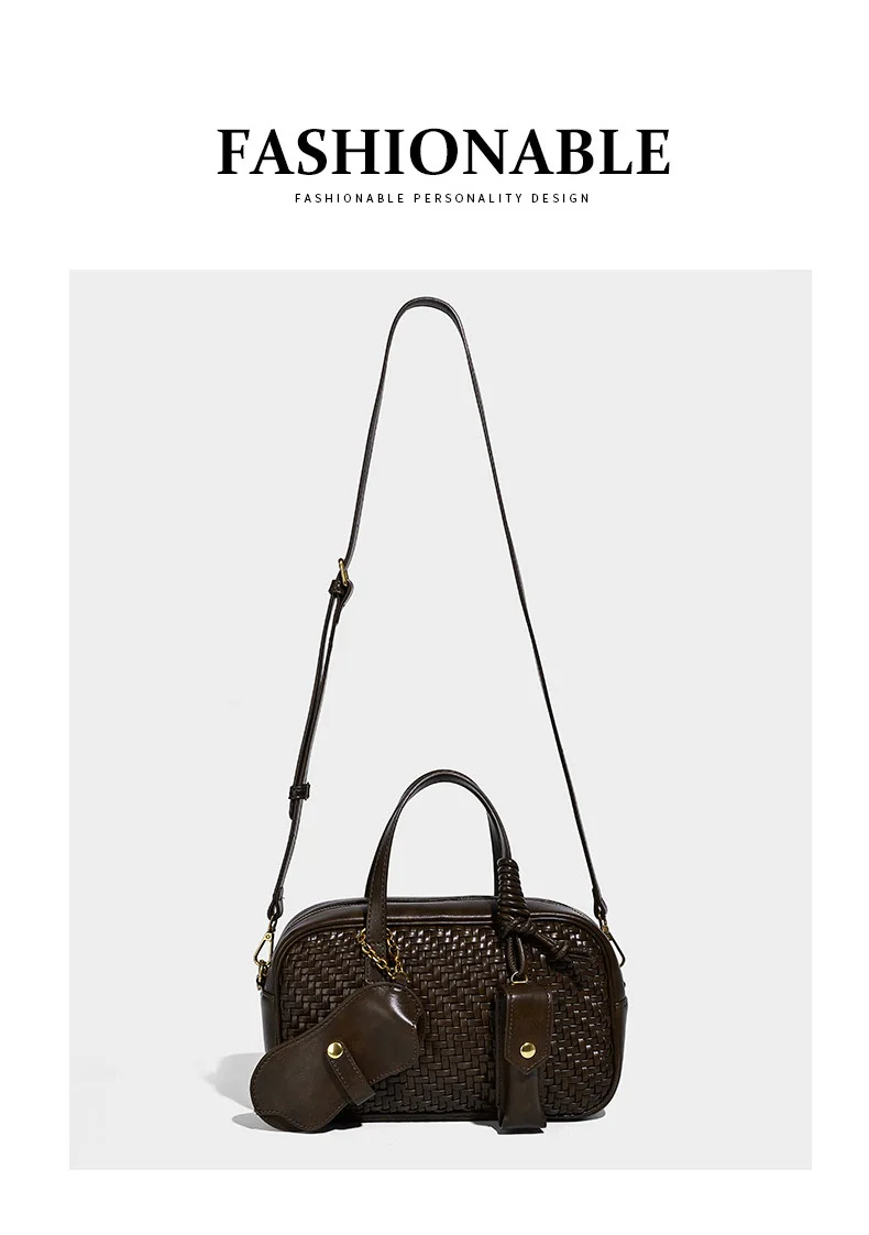 Vintage Hand Woven Box Boston Bags For Women Luxury Designer Handbag And Purses 2025 New In PU Cross Weaving Top handle Shoulder