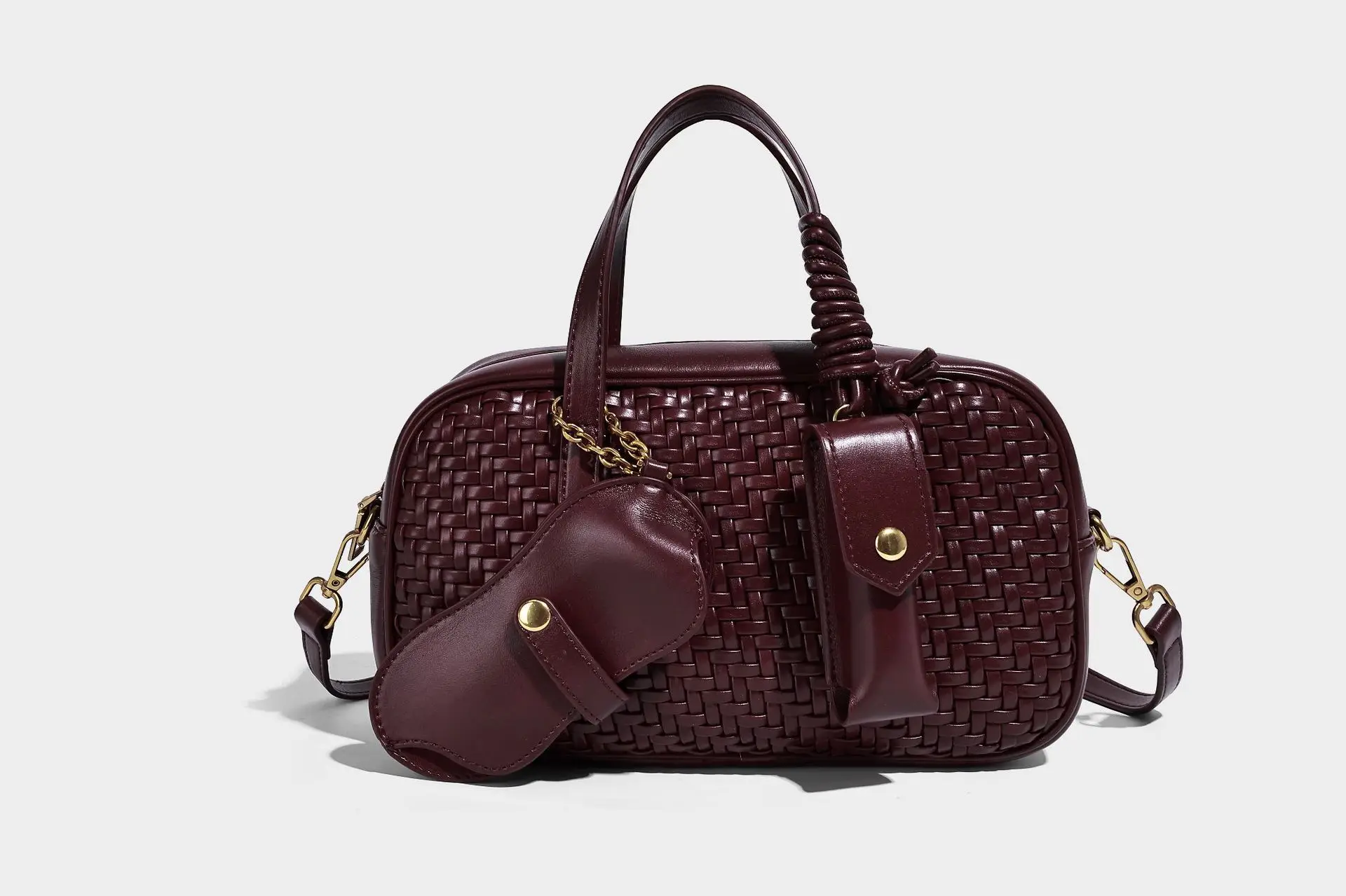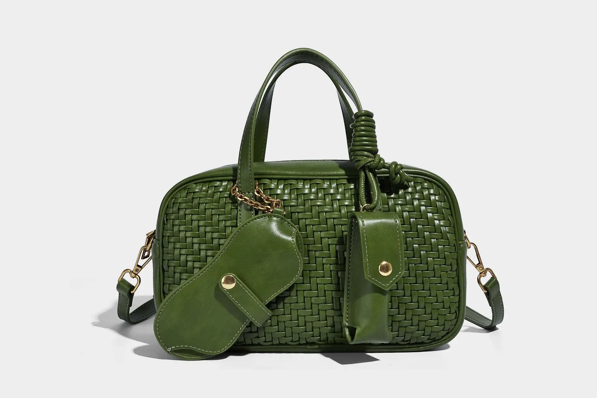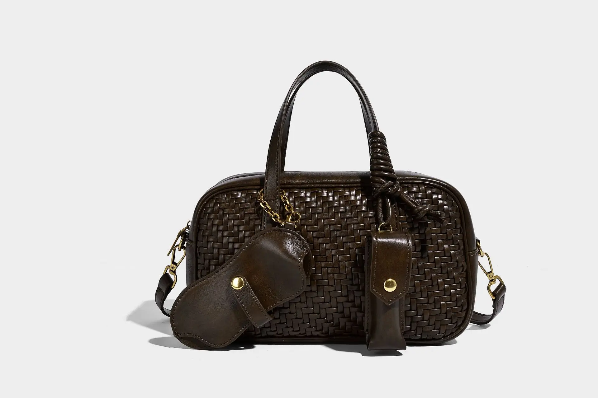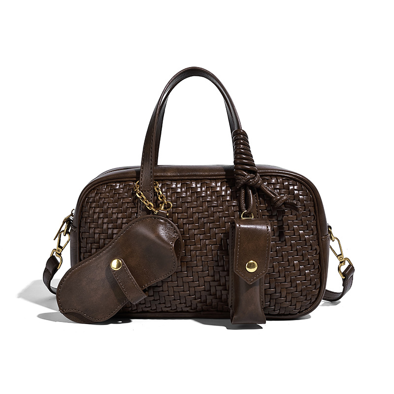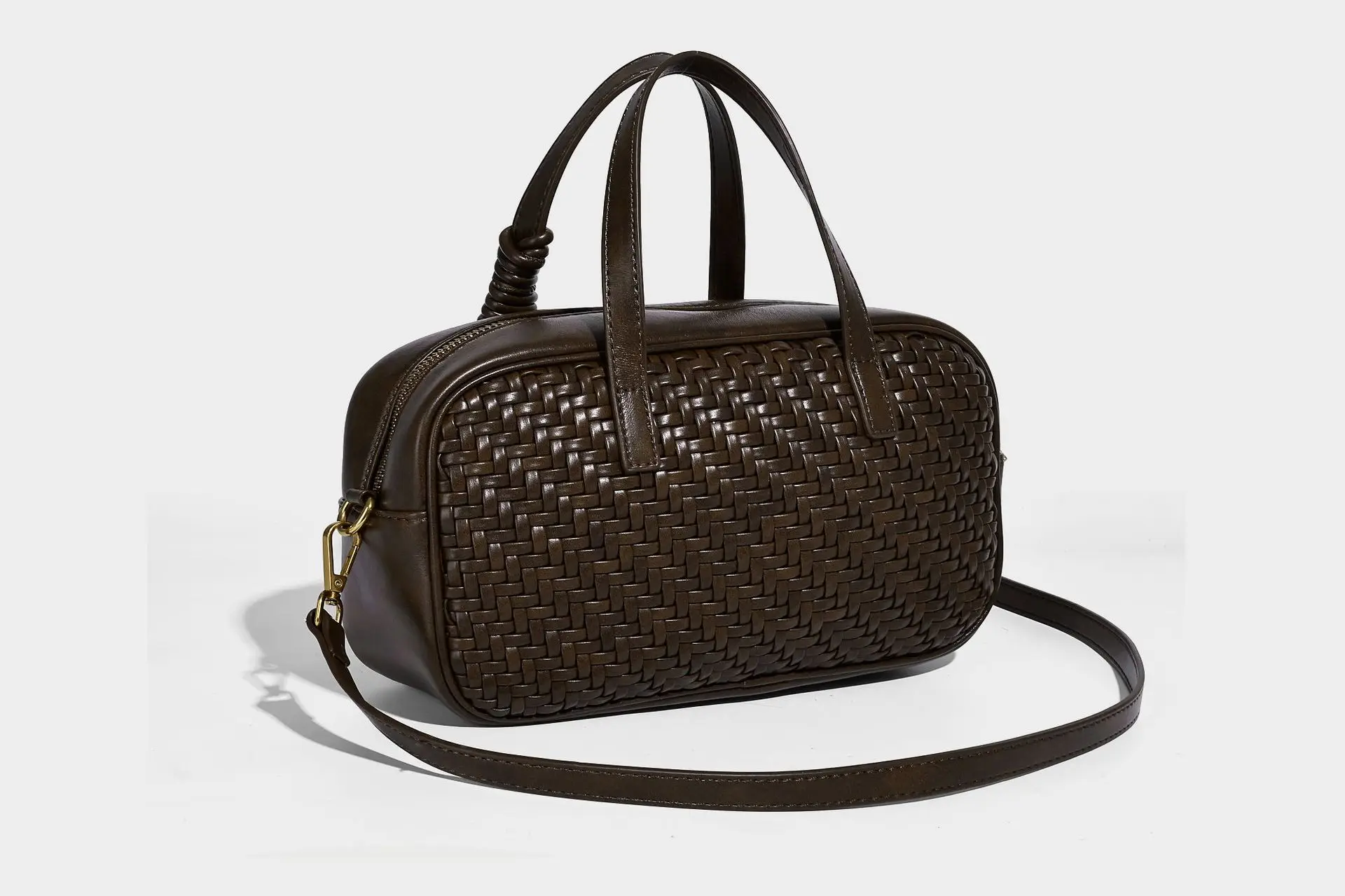 Vintage Hand Woven Box Boston Bags For Women Luxury Designer Handbag And Purses 2025 New In PU Cross Weaving Top handle Shoulder