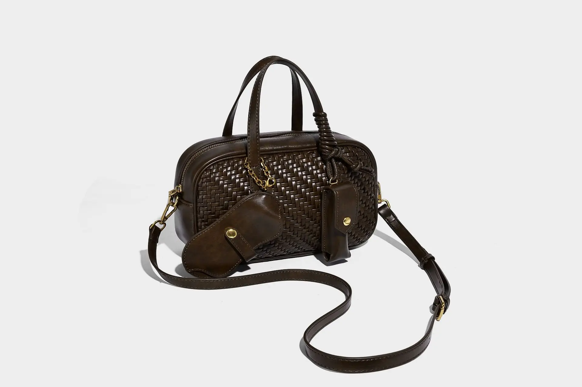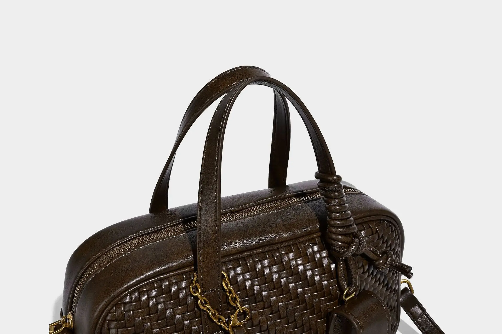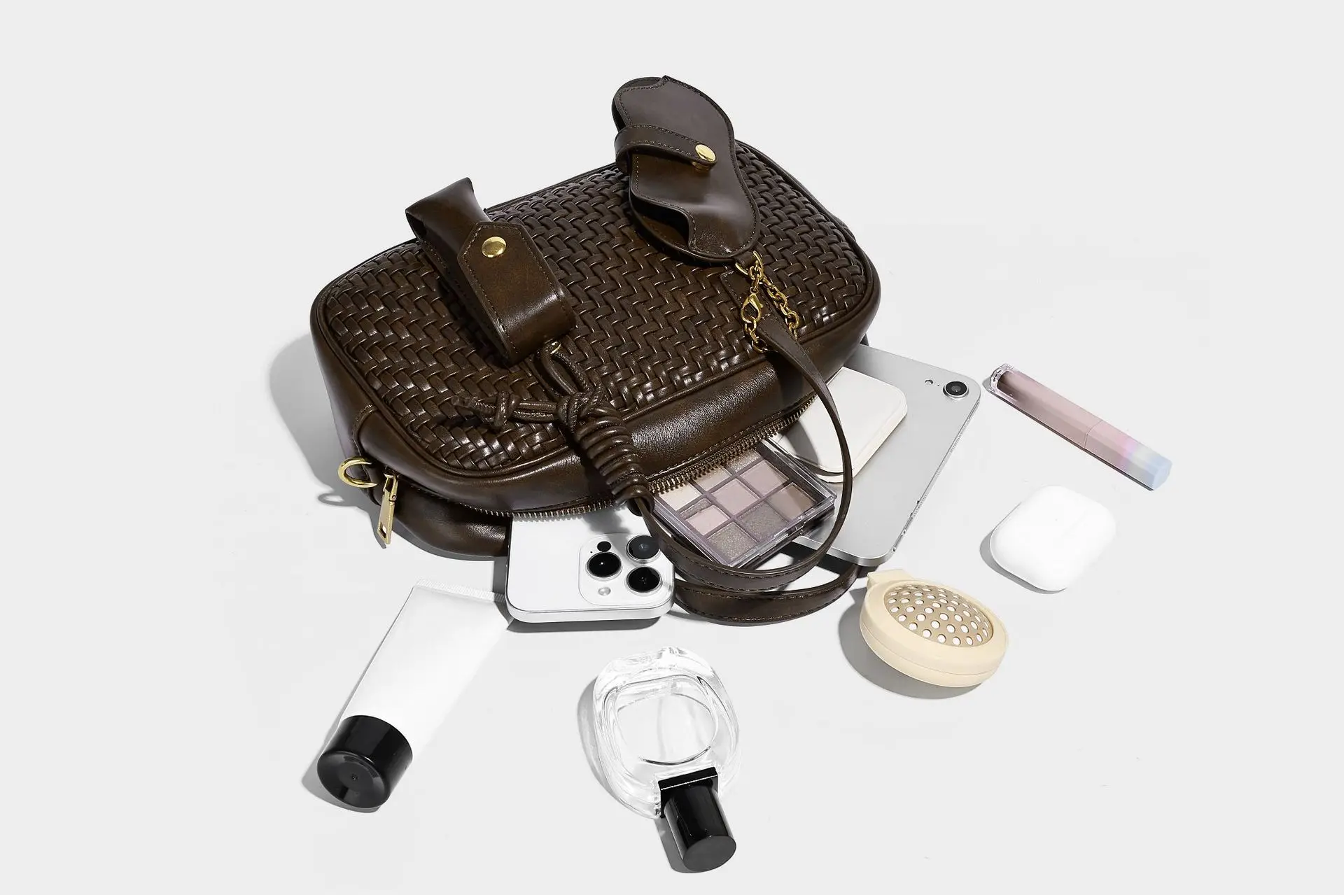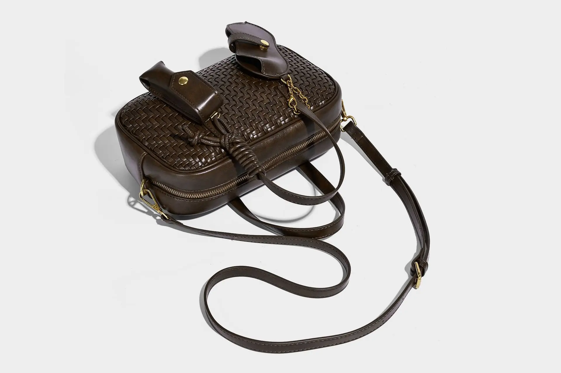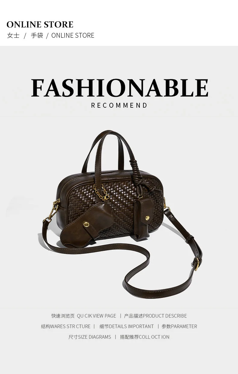 Vintage Hand Woven Box Boston Bags For Women Luxury Designer Handbag And Purses 2025 New In PU Cross Weaving Top handle Shoulder