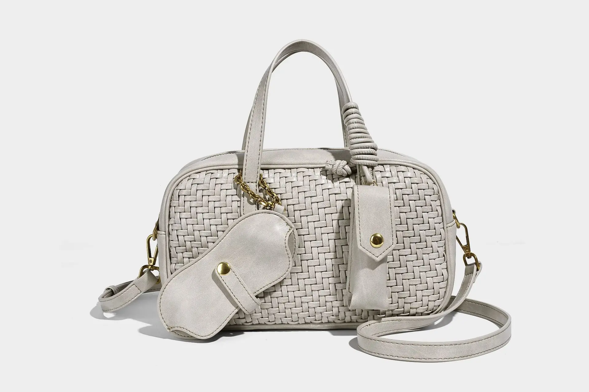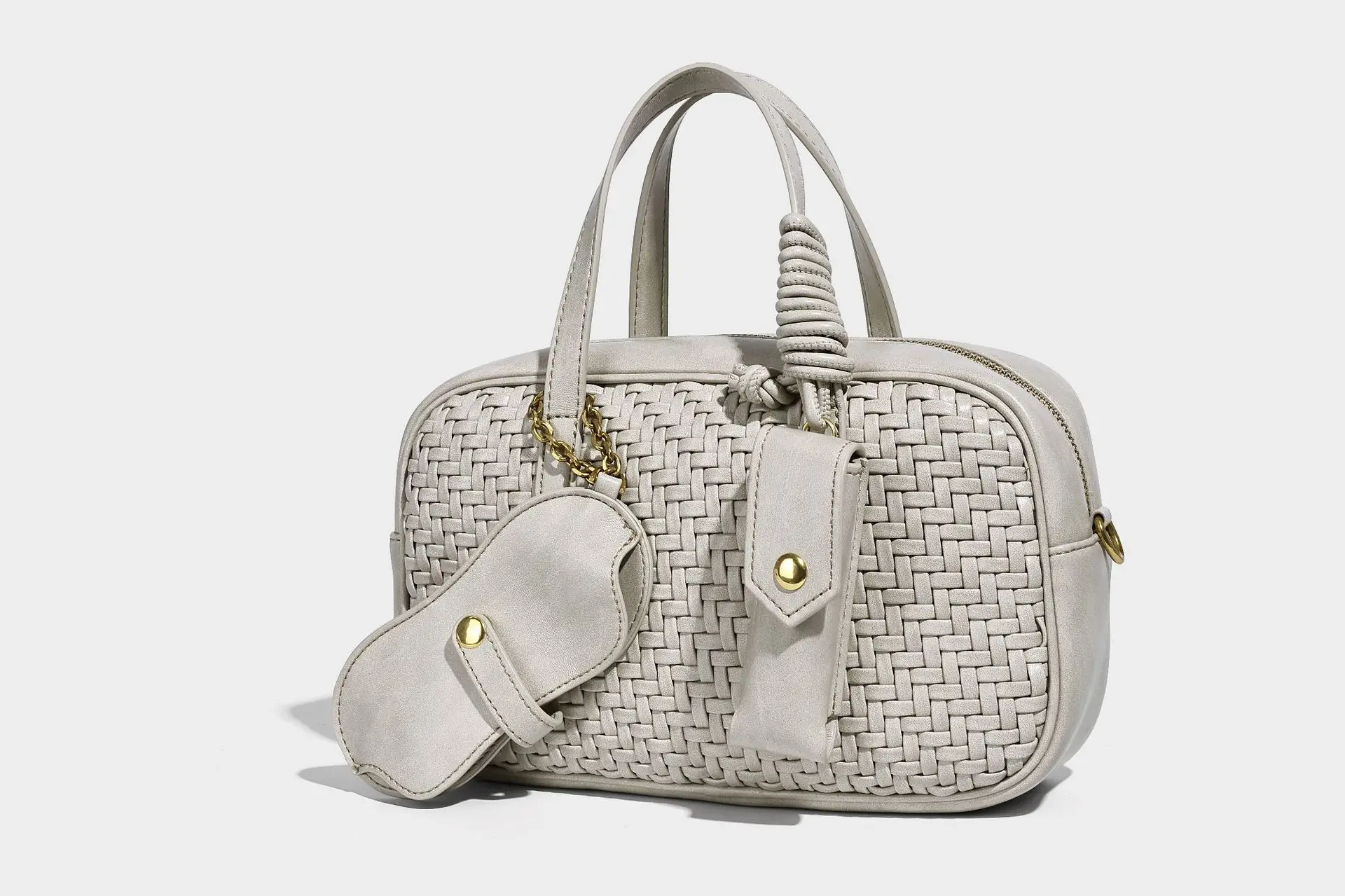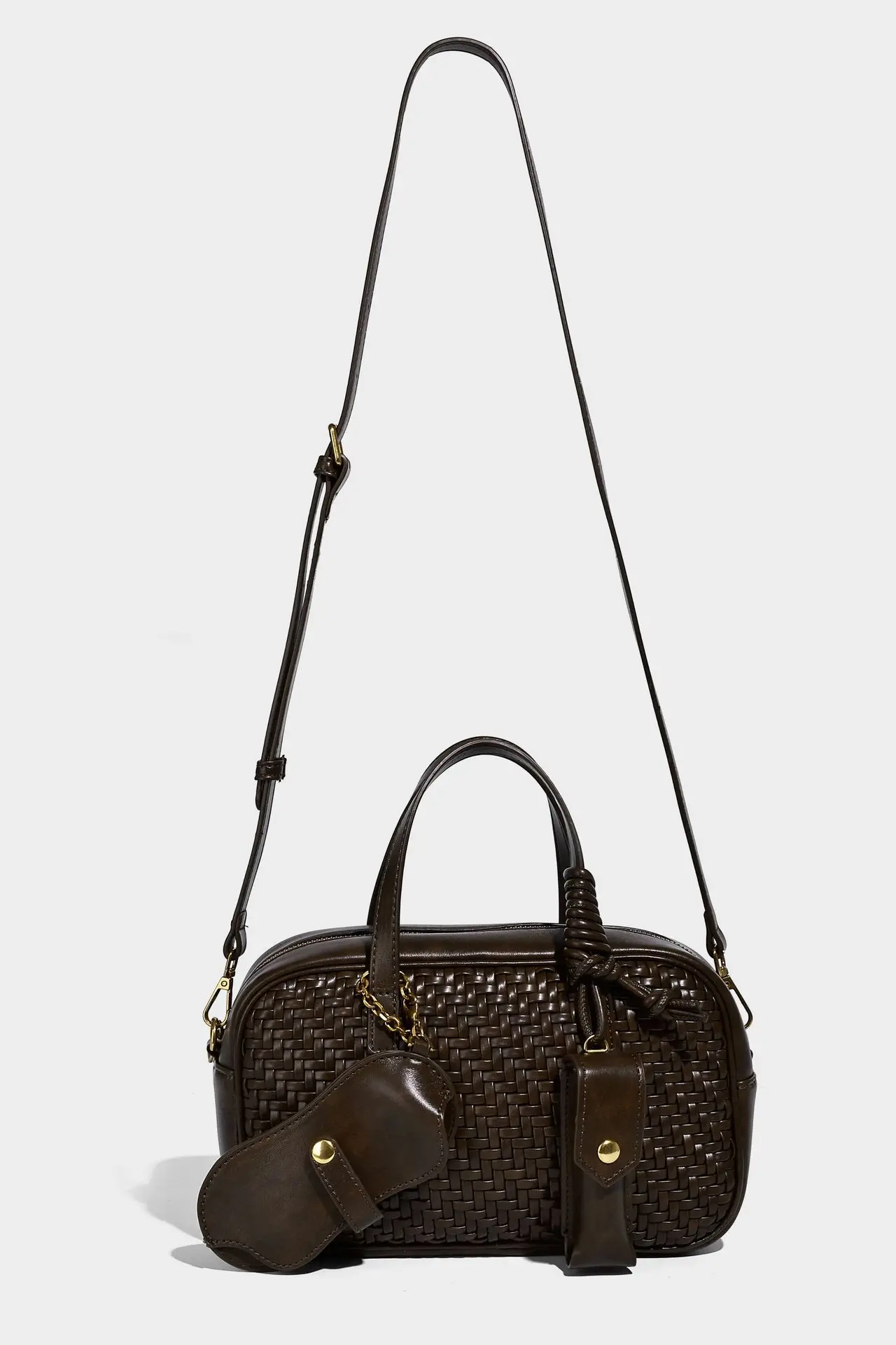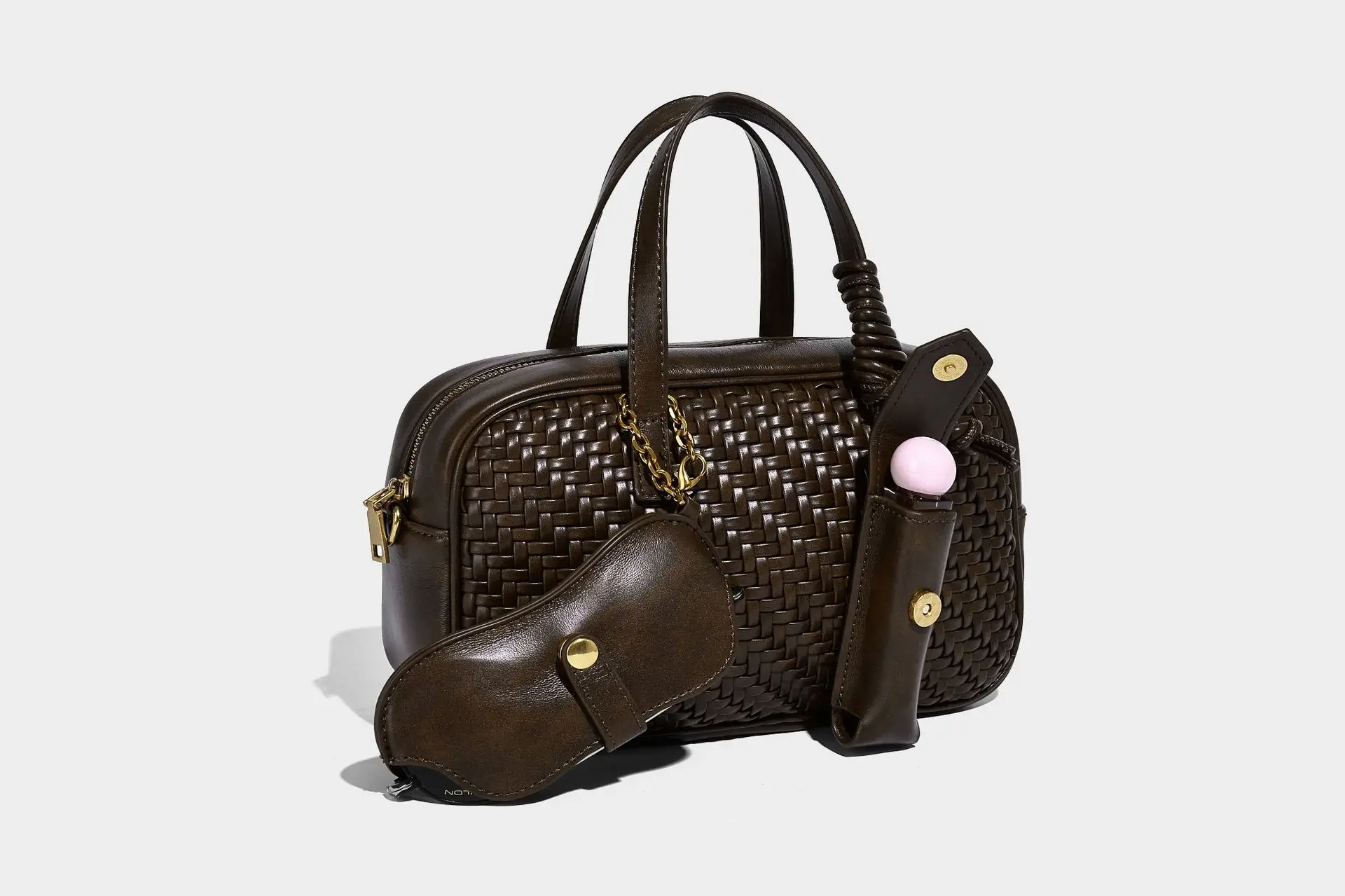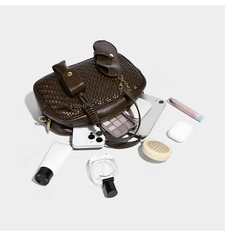 Vintage Hand Woven Box Boston Bags For Women Luxury Designer Handbag And Purses 2025 New In PU Cross Weaving Top handle Shoulder