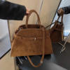 Vintage Large Capacity Faux Suede Tote Bag Designer Belts Deco Women Shoulder Bags Luxury Quality Big Handbags Trend Bucket Bag