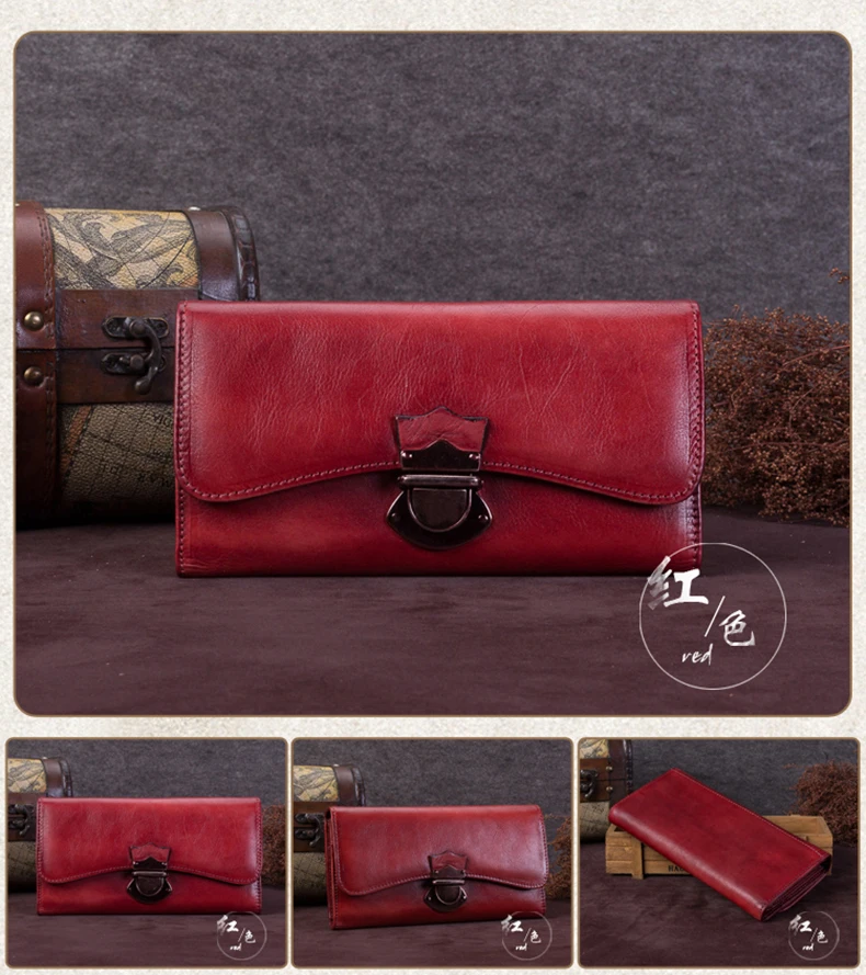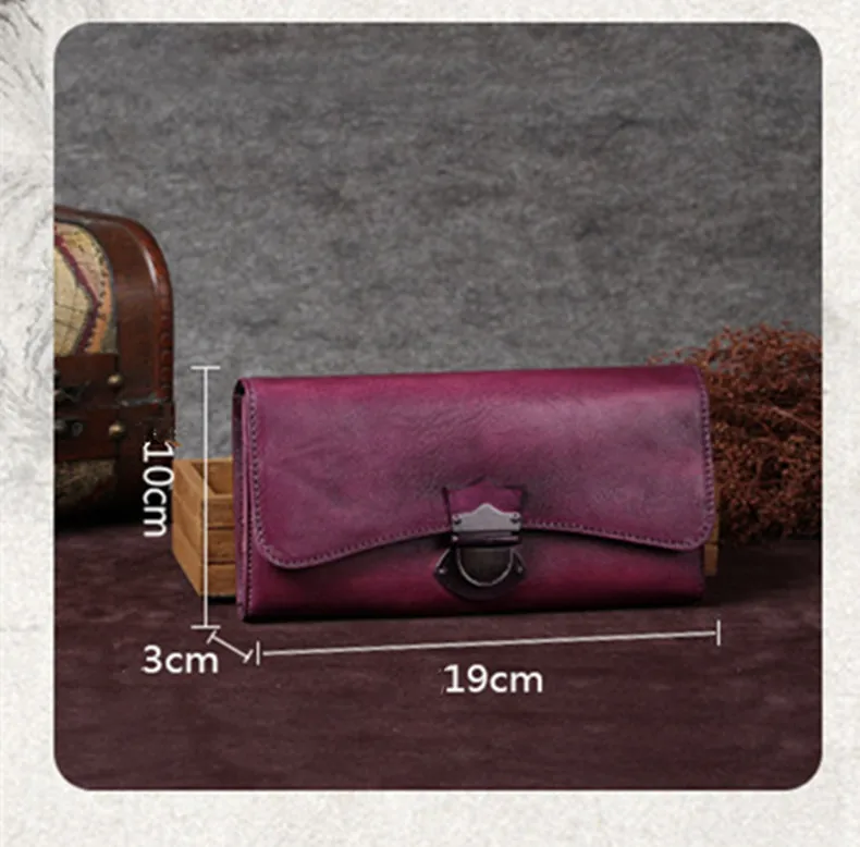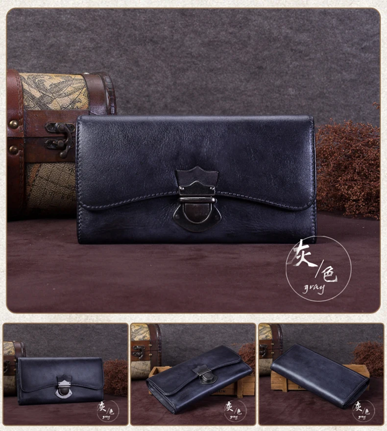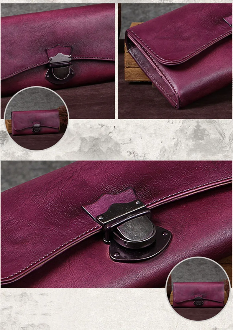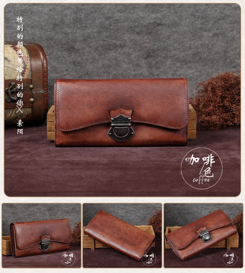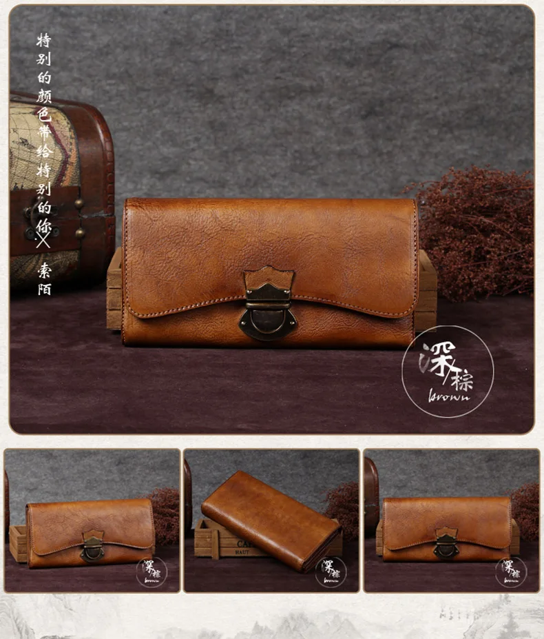 Vintage Leather Women’s Long Wallets Female Card Holder Buckle Wallet Large Capacity Coin Purses Zipper Mobile Phone Clutch Bags
