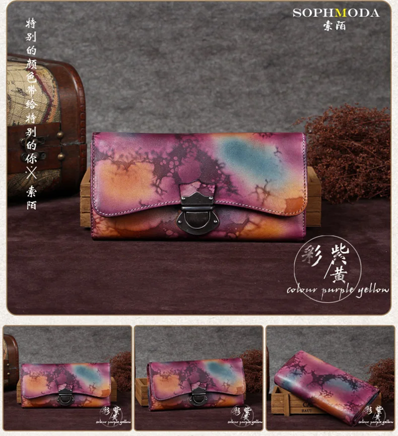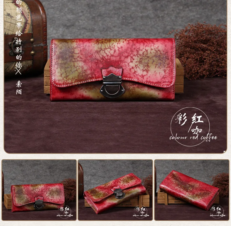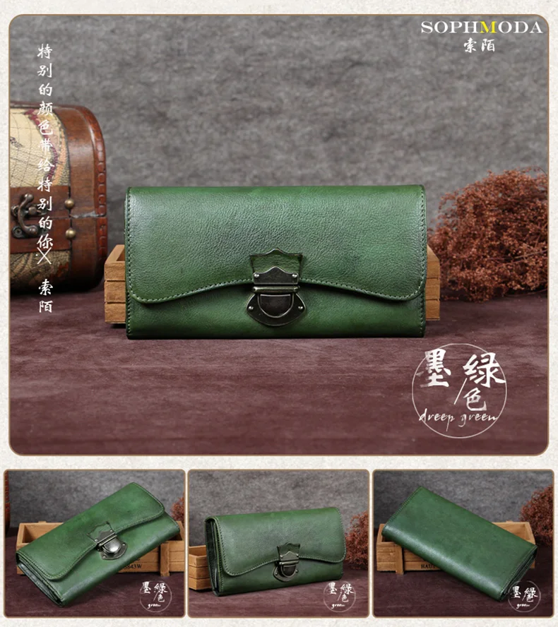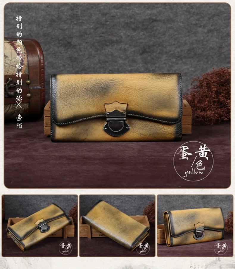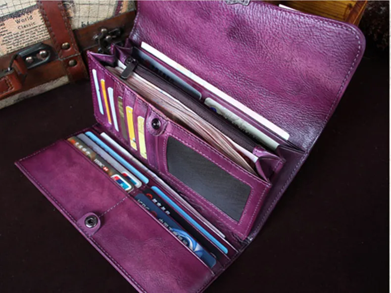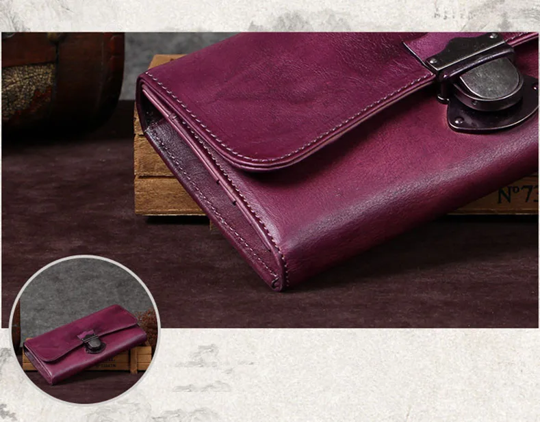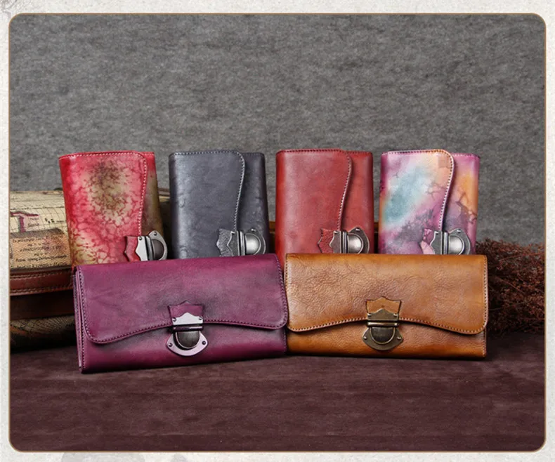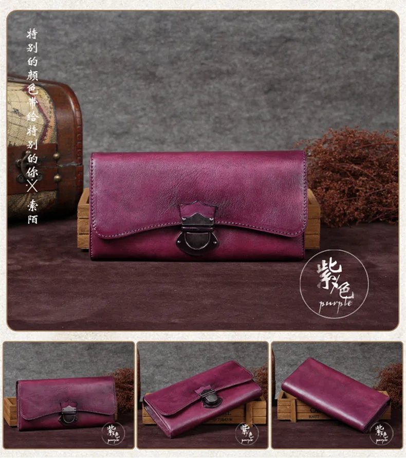 Vintage Leather Women’s Long Wallets Female Card Holder Buckle Wallet Large Capacity Coin Purses Zipper Mobile Phone Clutch Bags