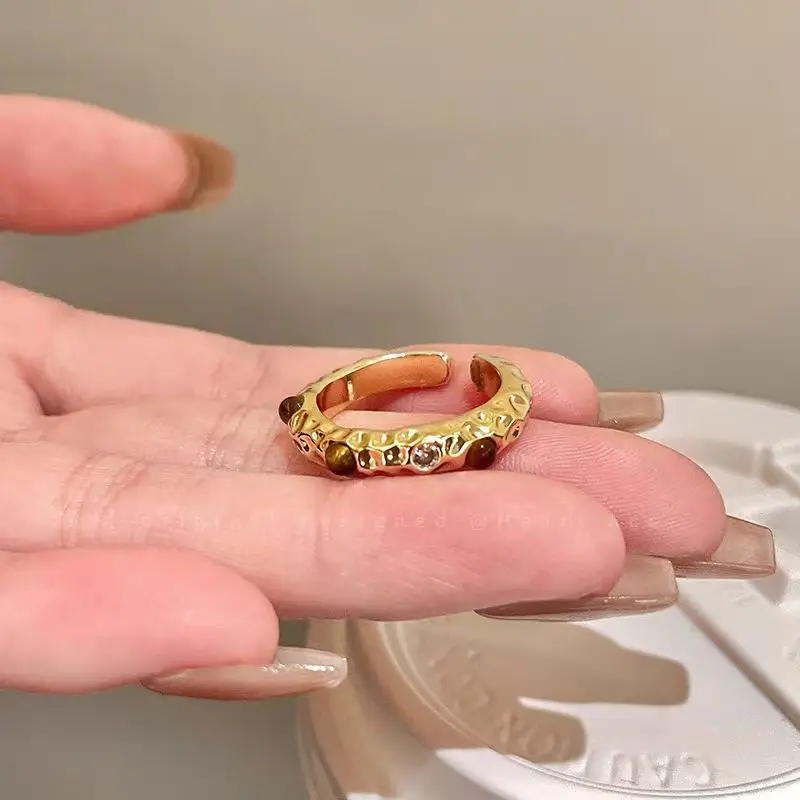 Vintage Opal Open Rings for Women Luxury Gold Color Shiny Crystal Geometric Adjustable Finger Rings Wedding Jewelry Gifts