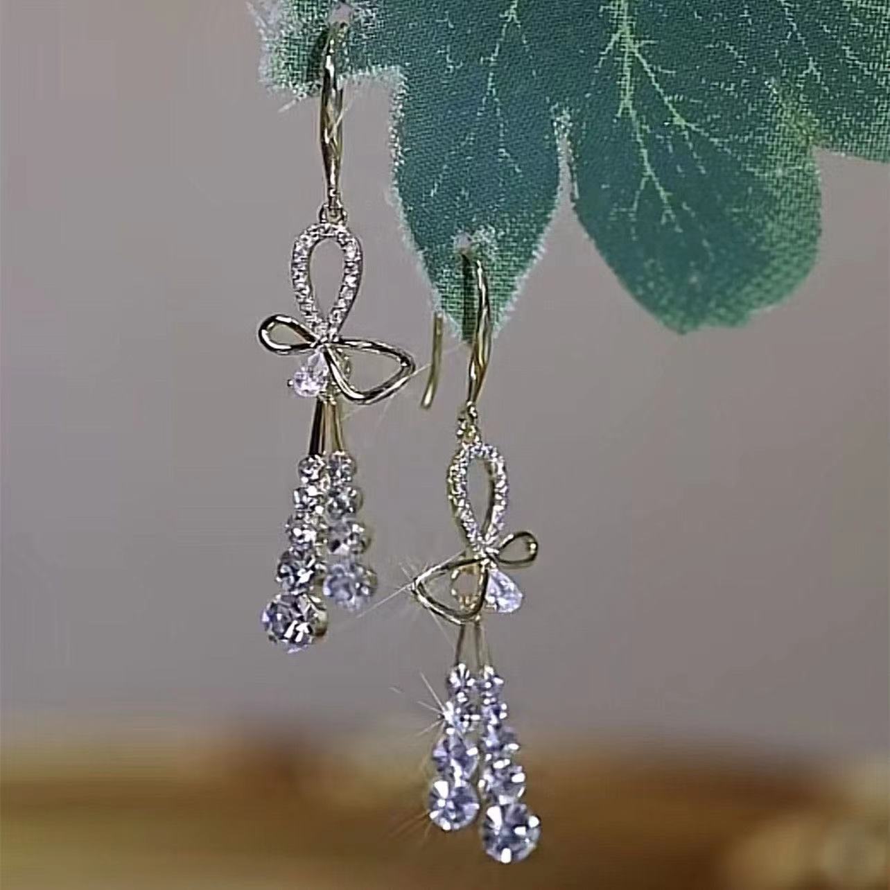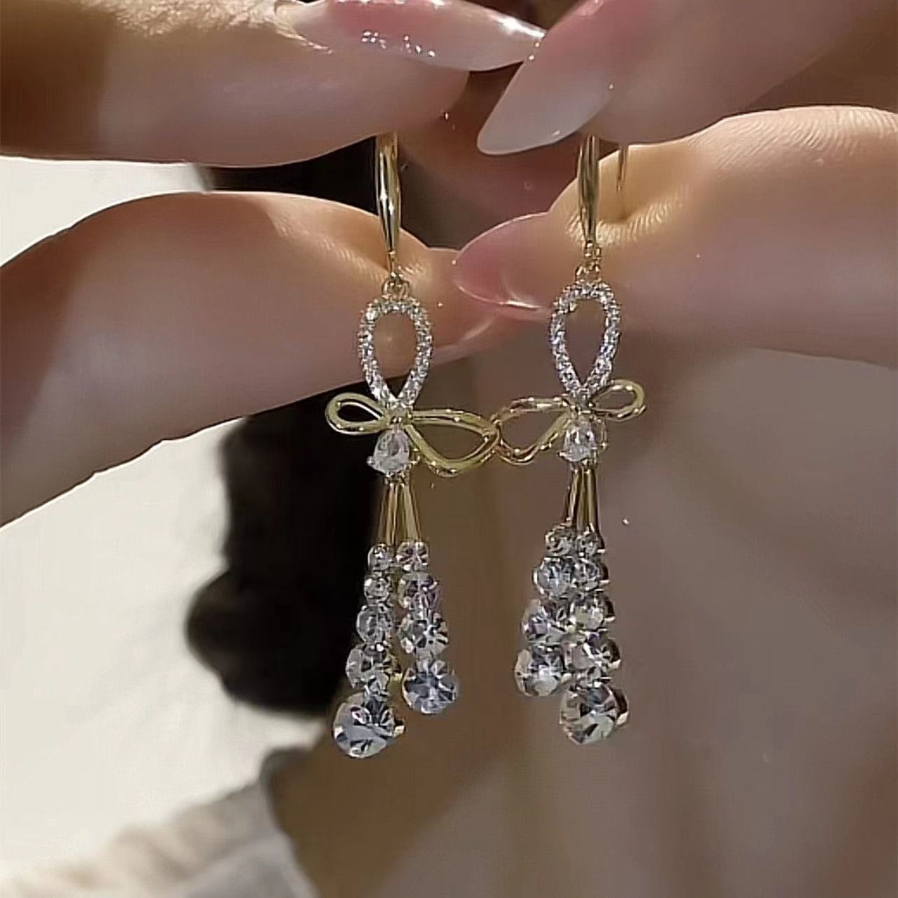 Vintage Shiny Crystal Zircon Hollow Heart Dangle Earrings for Women Full Rhinestone Long Tassel Flower Pearl Earring Y2K Jewelry