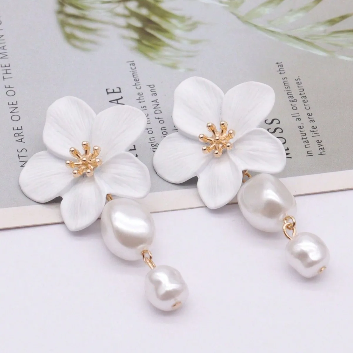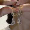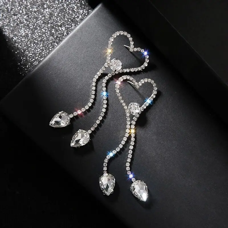 Vintage Shiny Crystal Zircon Hollow Heart Dangle Earrings for Women Full Rhinestone Long Tassel Flower Pearl Earring Y2K Jewelry