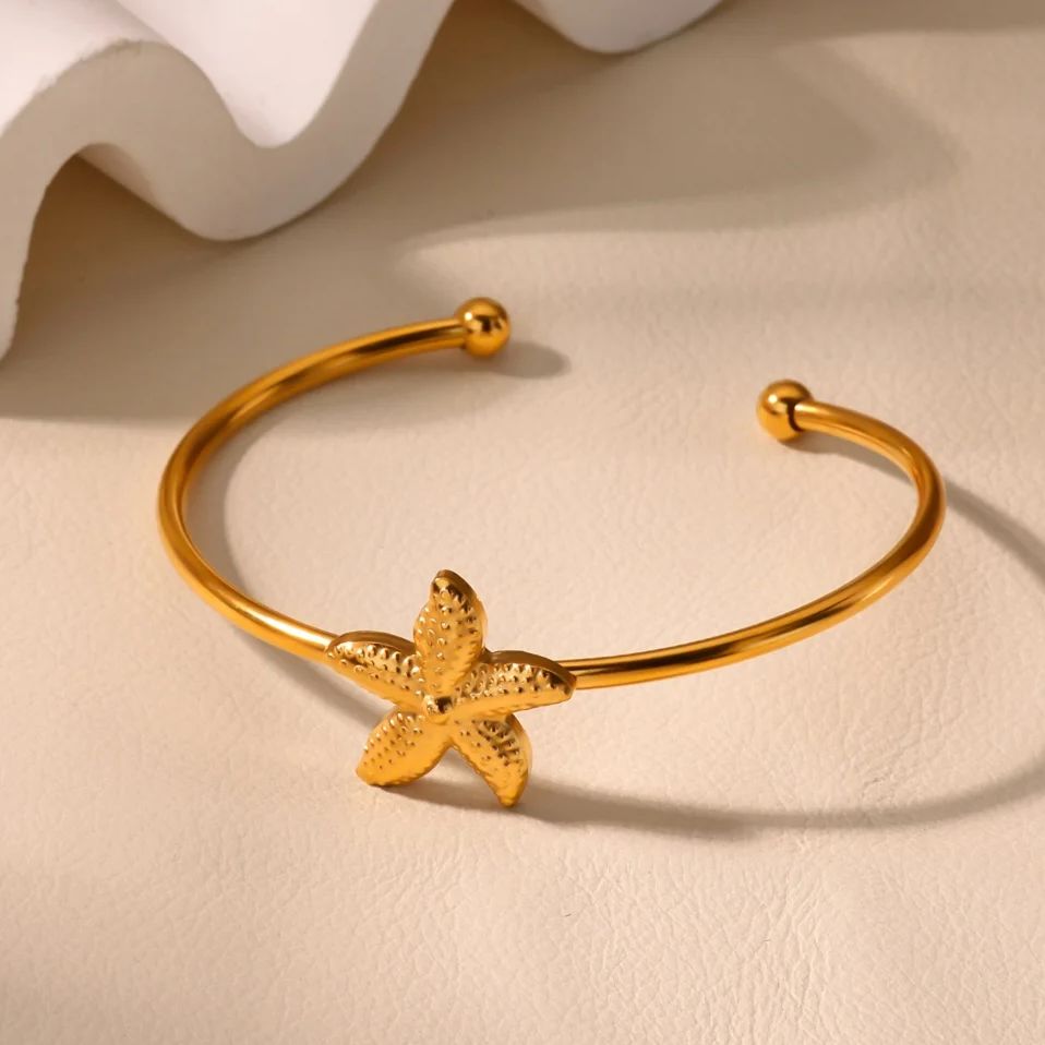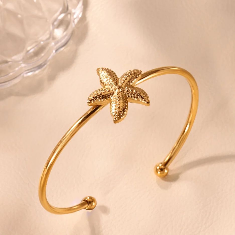 Vintage Starfish Bangle For Women 18K Gold Plated Stainless Steel Simple Starfish Bracelet Bangle Ocean Party Christmas Jewelry Gift