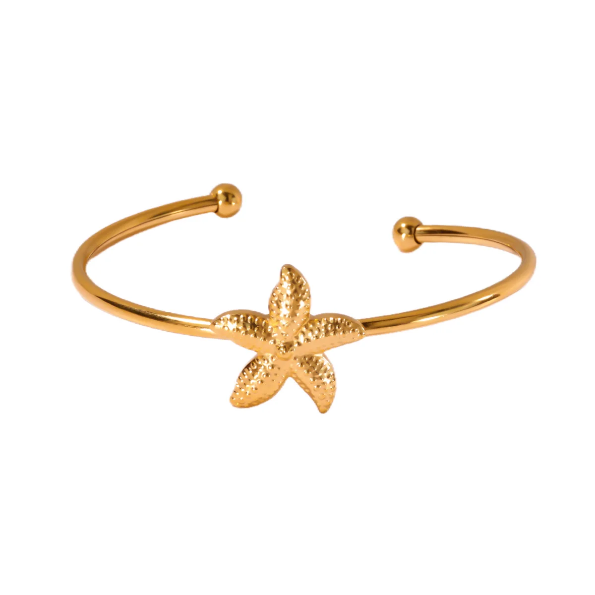 Vintage Starfish Bangle For Women 18K Gold Plated Stainless Steel Simple Starfish Bracelet Bangle Ocean Party Christmas Jewelry Gift